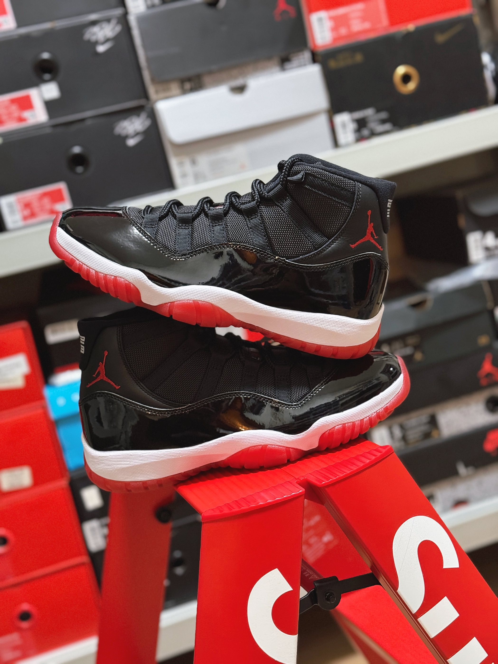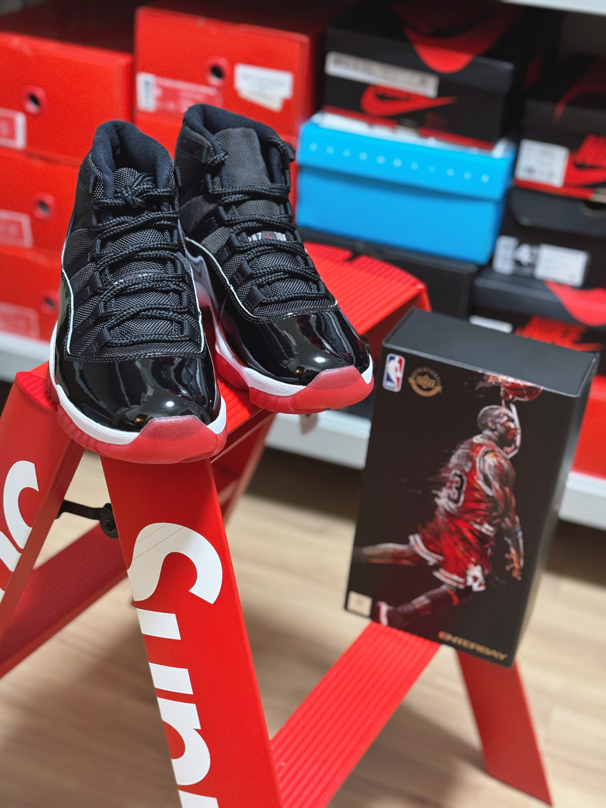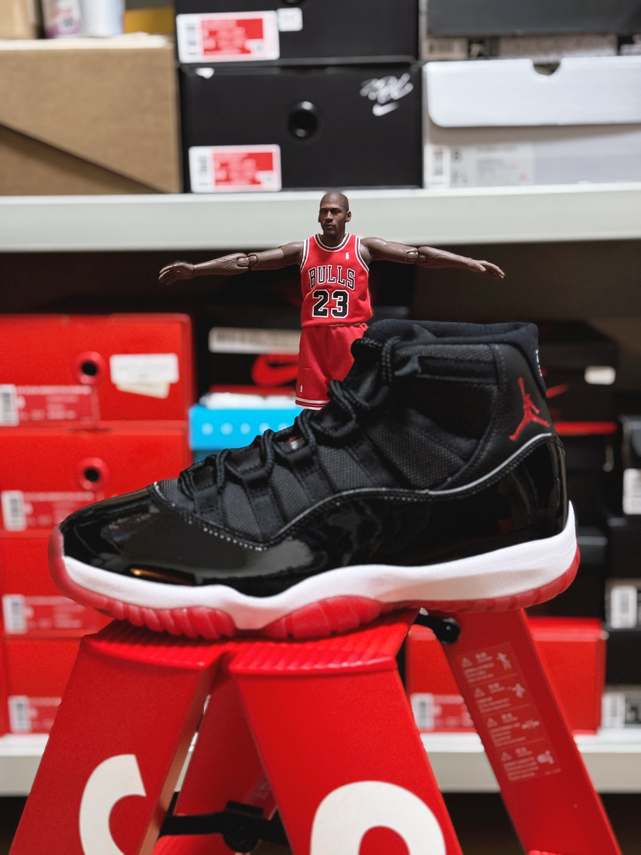 每个热爱篮球的人心中一定会有一个乔丹! 作为乔丹开启第二次三连冠的冠军🏆战靴 AJ11无论是在乔丹本人还是球迷心中都有着特殊的意义!黑红季后赛配色更是经典中的经典 关于这双鞋的故事 真的也很多! 漆皮鞋面搭配网布材质 老鞋的质感没得说!红色外底加持 与公牛队球衣配色相呼应 现在拿出来依然很帅!相比琳琅满目的新品球鞋 或许老鞋更有味道?!