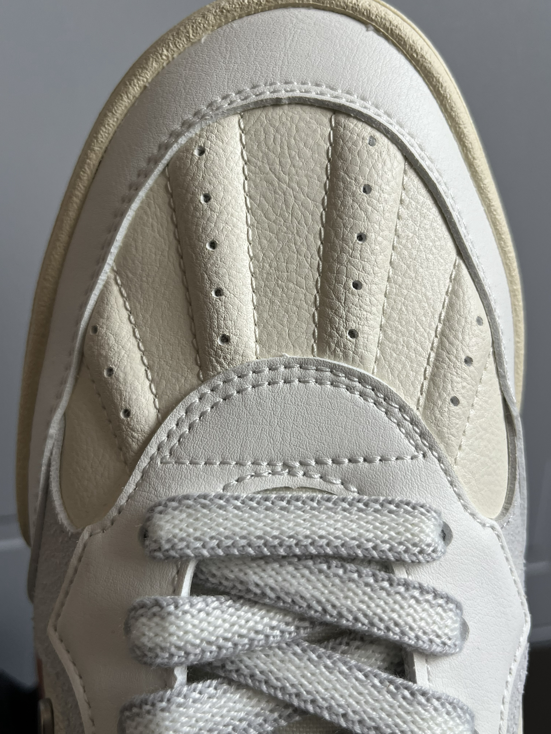 1.鞋子上脚第一感觉很软弹,很舒适 2.鞋面真皮材质,清理很方便,看上去很有质感 3.整体米白色,非常的百搭,日常穿着很合适 4.鞋底非常的耐磨,打打球也不是问题本人上脚42.5码,现在这个价格非常的合适,兄弟们放心冲