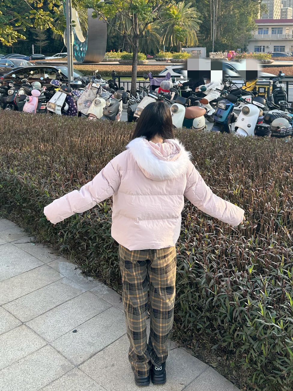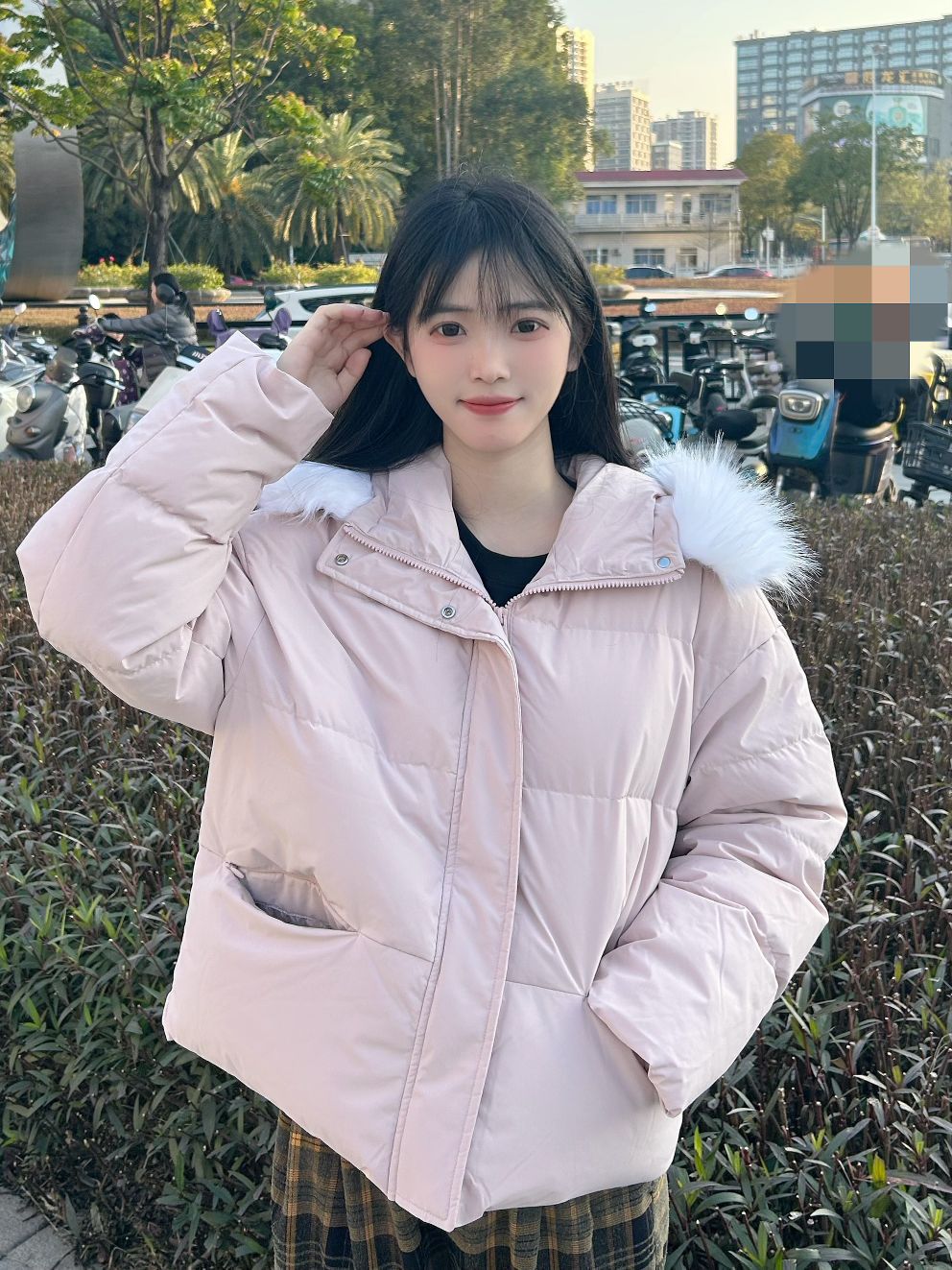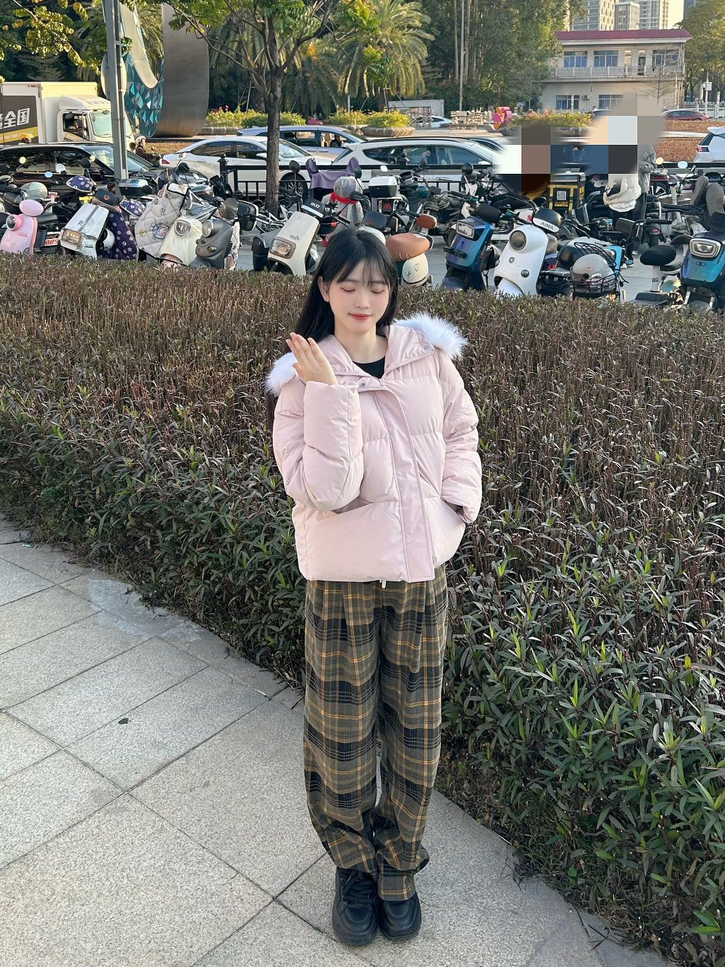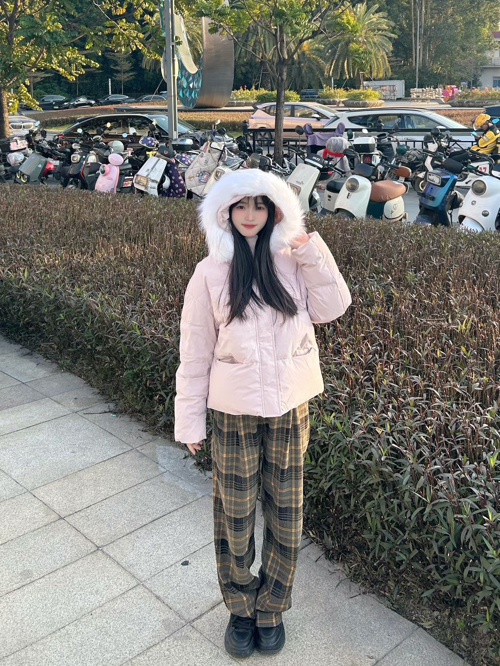 哈喽,家人们,今天的穿搭分享来啦,是一套我的秋冬少女感羽绒服穿搭分享~ 粉色连帽毛领羽绒服+格子直筒阔腿裤+黑色高帮板鞋 一整套我的秋冬少女感羽绒服穿搭get~ 尺码参考: 身高、体重:160、95 衣服:m裤子:s鞋子:36