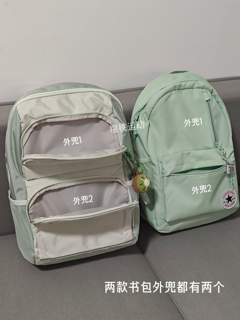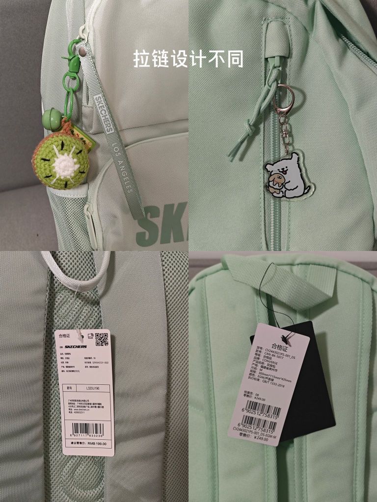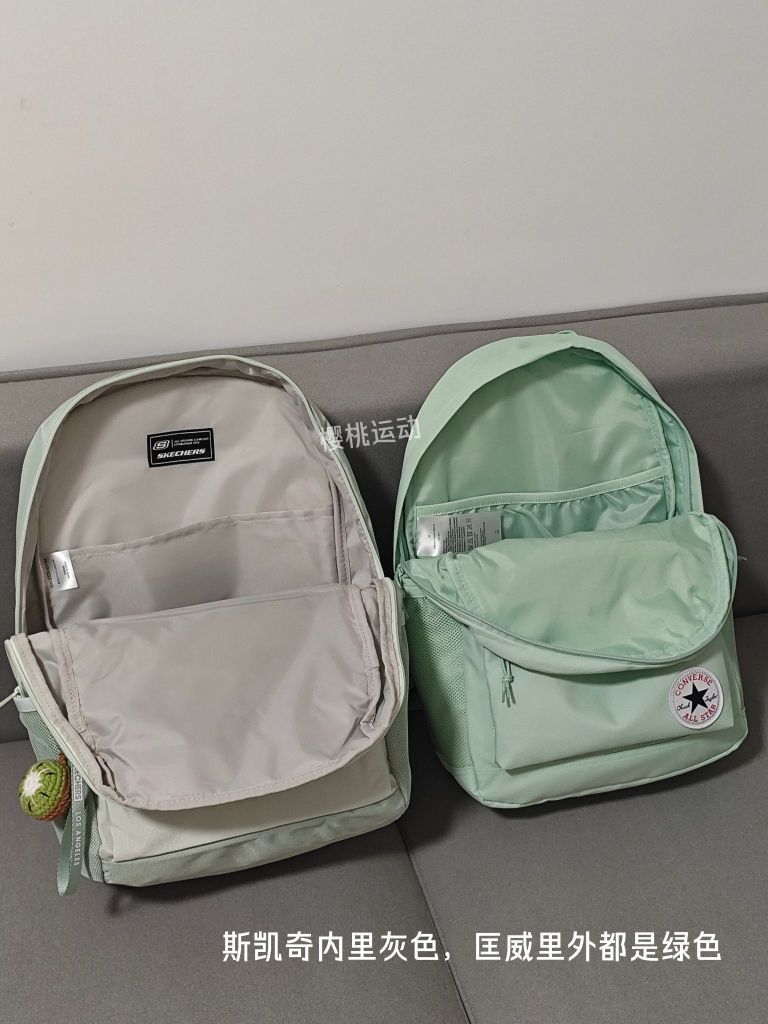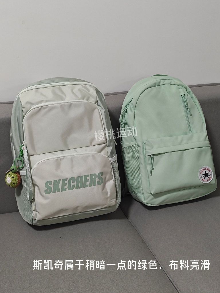 ★两款颜色和材质都有区别,斯凯奇绿色稍暗一点,属于拼色设计,实物也是很好看,果果专属选择,书包布料亮滑,耐用,匡威实物绿色比较亮,书包整体轻便小巧,设计方面保留匡威传统设计很好看 ★容量斯凯奇稍微比匡威大一点,适合160以上175以下的人选择,匡威适合165及以下的小个子选择,需求大容量可以选择斯凯奇