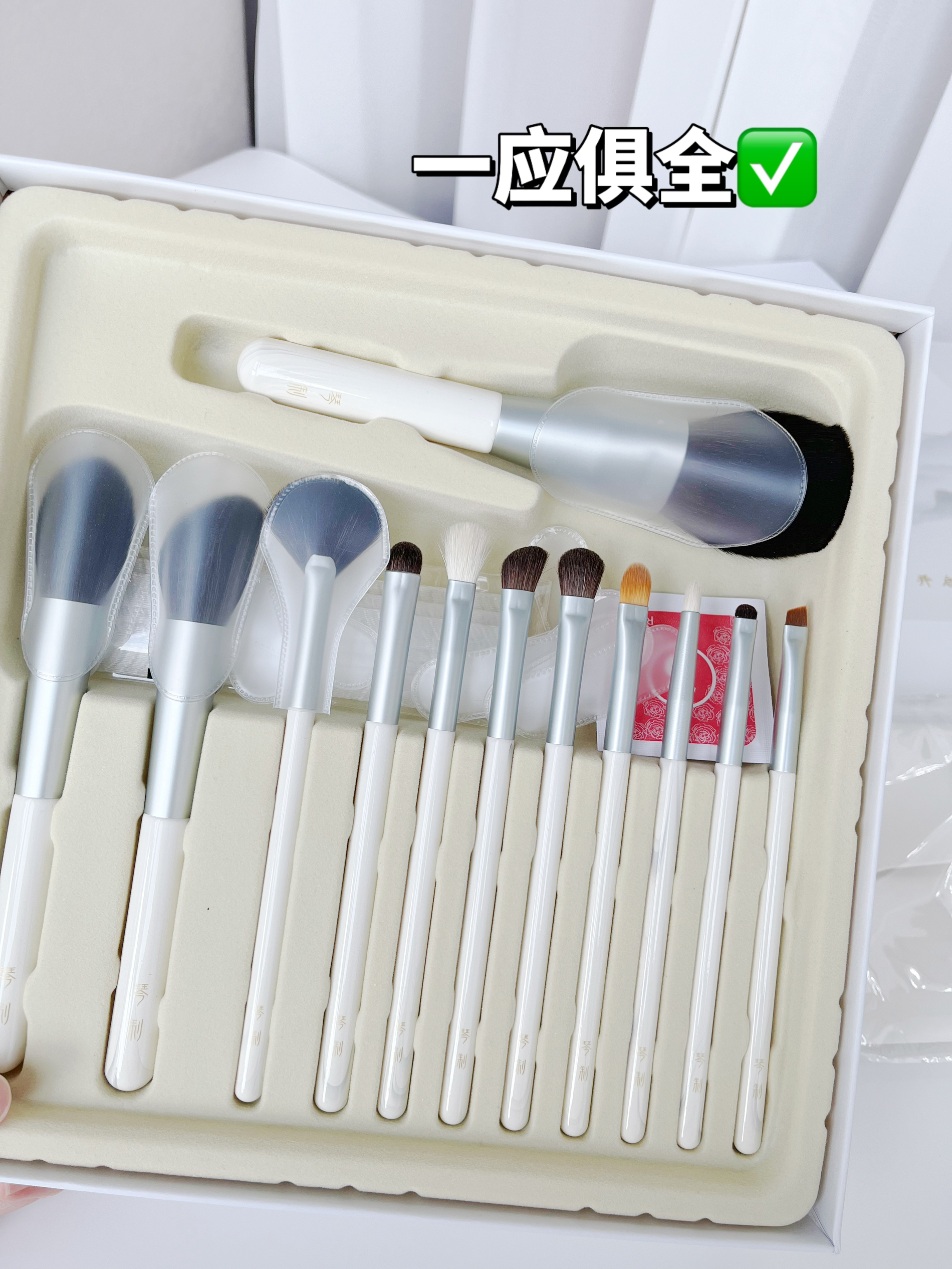 之前跟对象提过一嘴,想换化妆刷了 因为现有的都是一些老员工😂 没想到,这小子真听进去了,买了一套送给我✌️ 包装好好看💓中式水墨画的风格很心水 各种刷子,一应俱全❗️想学化妆的妹妹不要错过(特别是跟我一样的手残党)🤪 买一整套是最省事的,看化妆视频,直接找出对应的功能刷就行 而且这款很软和,上脸很舒服😌
