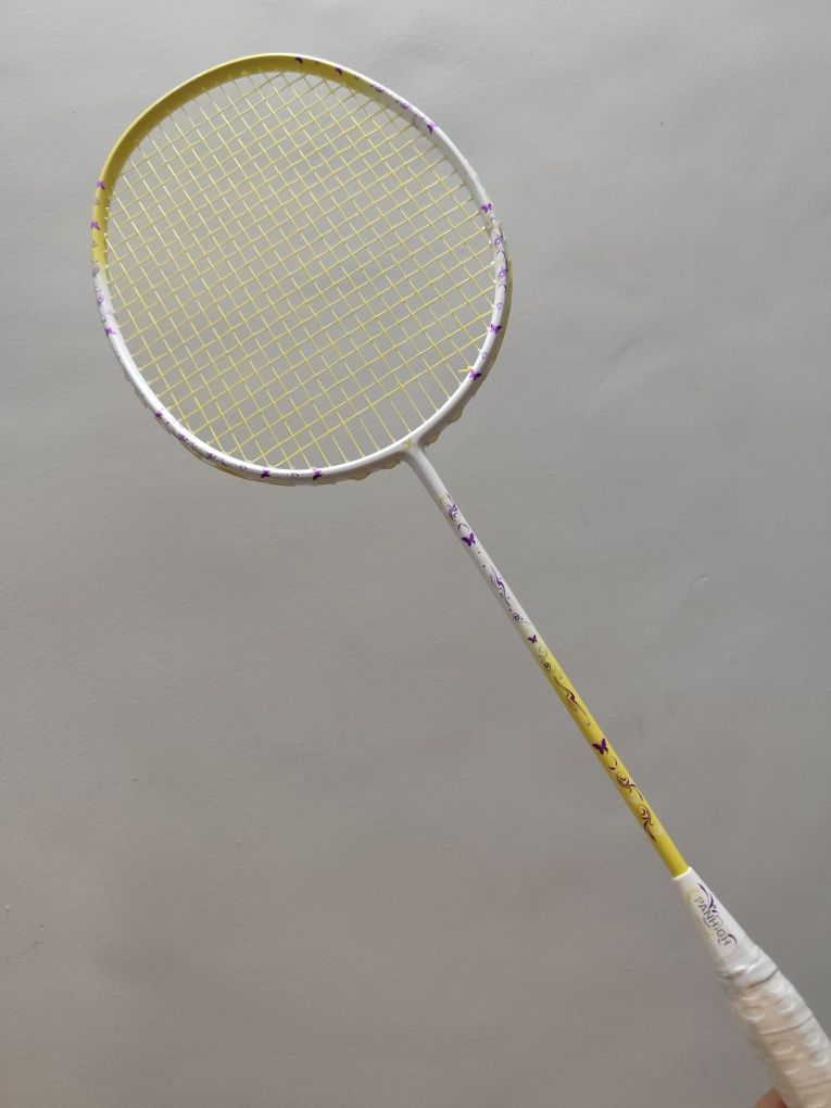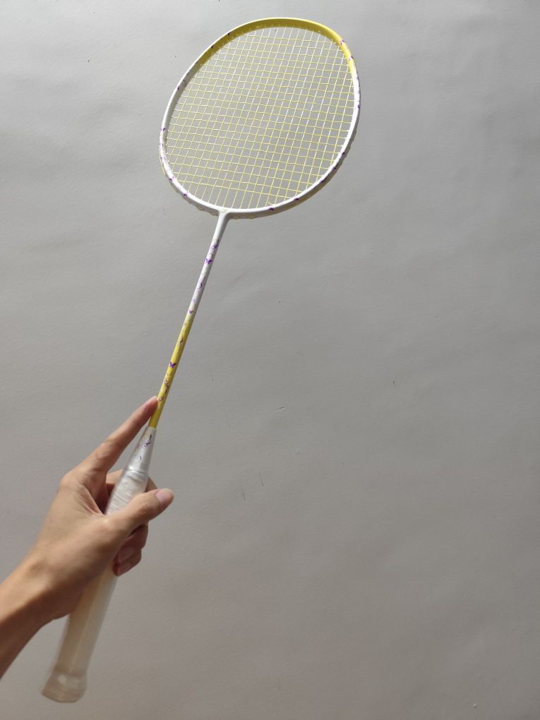 新入手的羽毛球拍到了, 非常好看, 今天下午打了一下, 一不小心就打到这个点了, 只有我打球打到这个点的吗?[捂脸_blue]