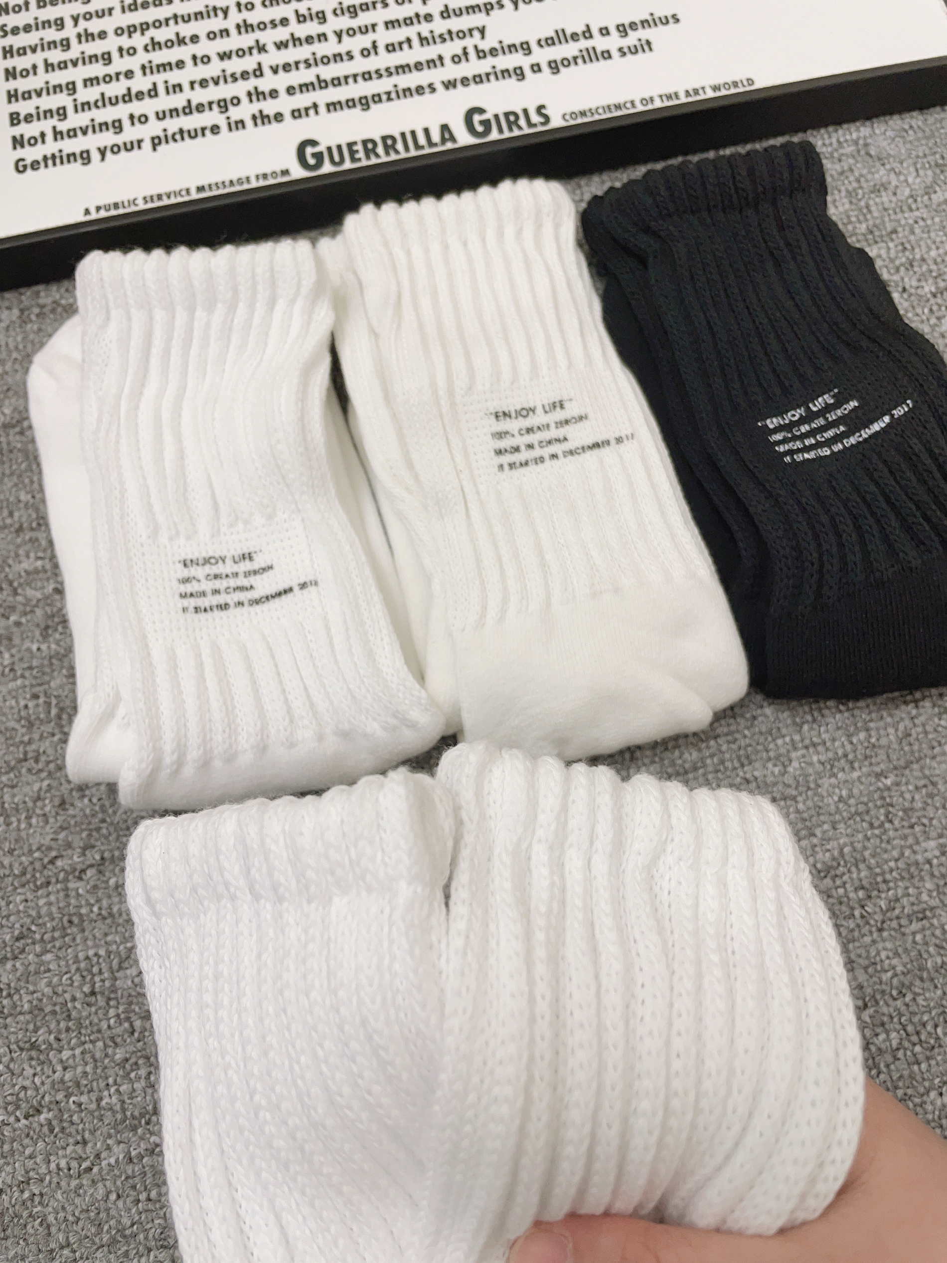 现在天气比较冷啦 这款袜子颜色简约干净 面料摸着柔软厚实 上脚穿舒适又暖和 蛮好穿的日常百搭 噂嘟奈斯 秋冬天不怕冻