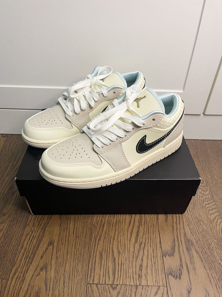 hi欢迎来到新一说鞋!今天要介绍的是AJ1的大地色配色球鞋,它的最大亮点就是百搭。这双鞋不仅配色醒目,鞋帮设计也很有特色,仿佛BB包装般的皮面与织物拼接。鞋头采用荔枝皮,奶昔色部分是光滑皮革,而钩子则是油润的亚纹。内侧的湖水蓝丝绸增添了一丝舒适感。 大地色系让这双鞋成为多种穿搭的理想选择,简约而不失高级感。不过,穿上后可能会感觉稍硬,尺码偏瘦,建议选购时放大半码。有任何疑问,欢迎留言讨论。