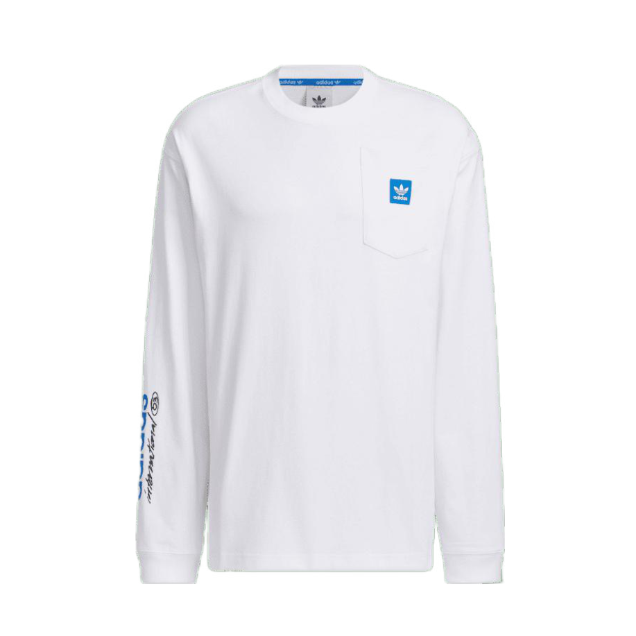 adidas originals CITY SKATE LONG SLEEVE T-SHIRT 街头板仔文化纯棉印花运动圆领长袖T恤 男 白