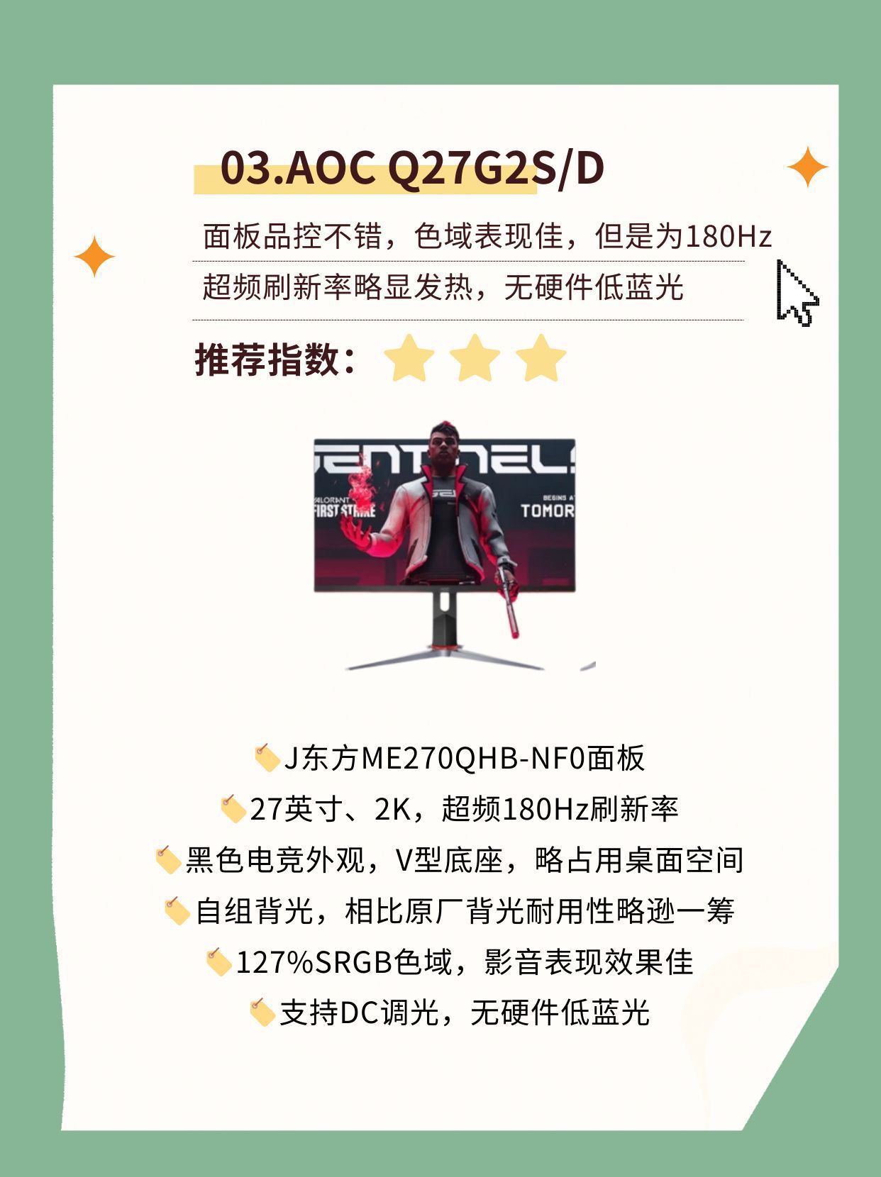 本篇笔记关联了AOC Q27G2SD 27英寸 170Hz 2K 显示器 高刷 液晶 快速 满血小金刚 窄边框 黑色、HKC/惠科 G24H1 23.8英寸 200Hz 1080P显示器 旋转升降 1ms响应 高刷 低蓝光 外接 液晶 广色域 护眼 刷新 快速 黑色、HKC/惠科 猎鹰二代G27H4 27英寸 300Hz 2K 显示器 高刷 直面 液晶 快速 低蓝光 广色域 满血 氧化物技术 响应 黑色等商品,为用户提供真实的使用体验和购买参考。