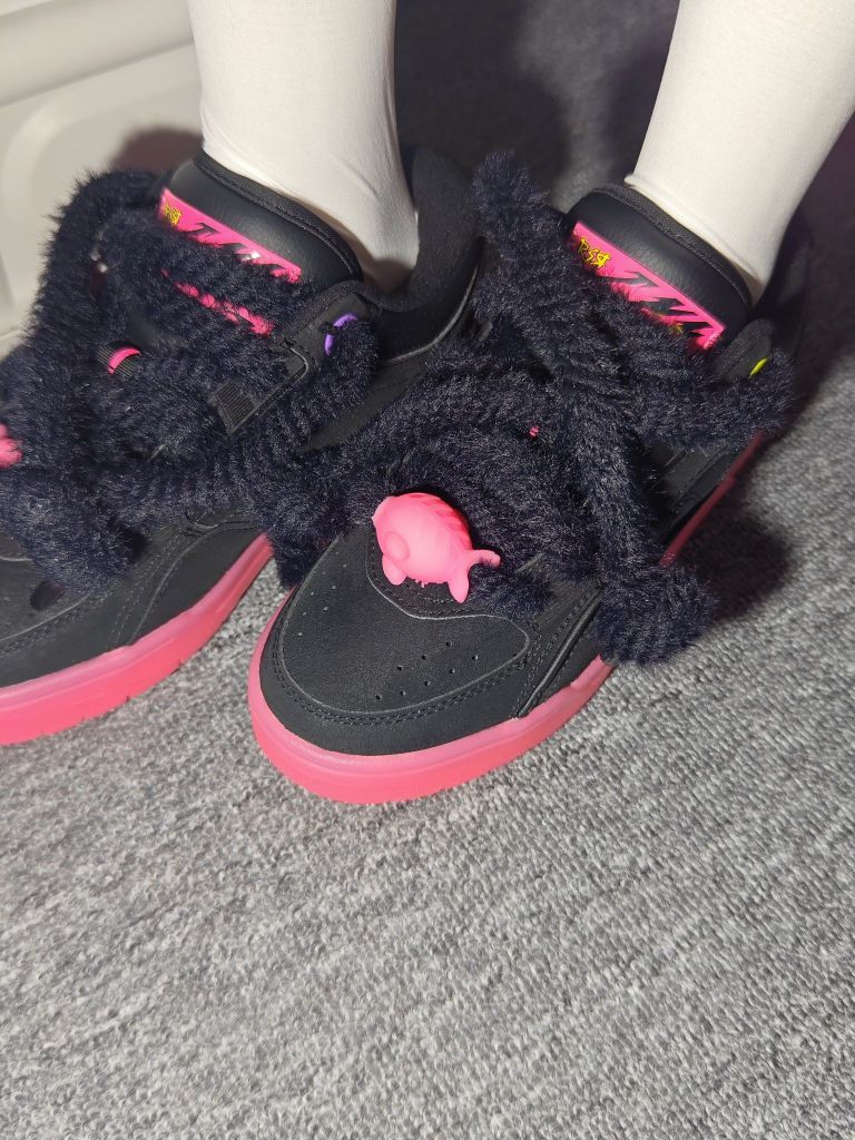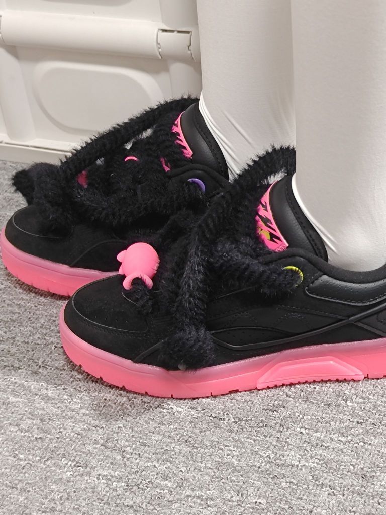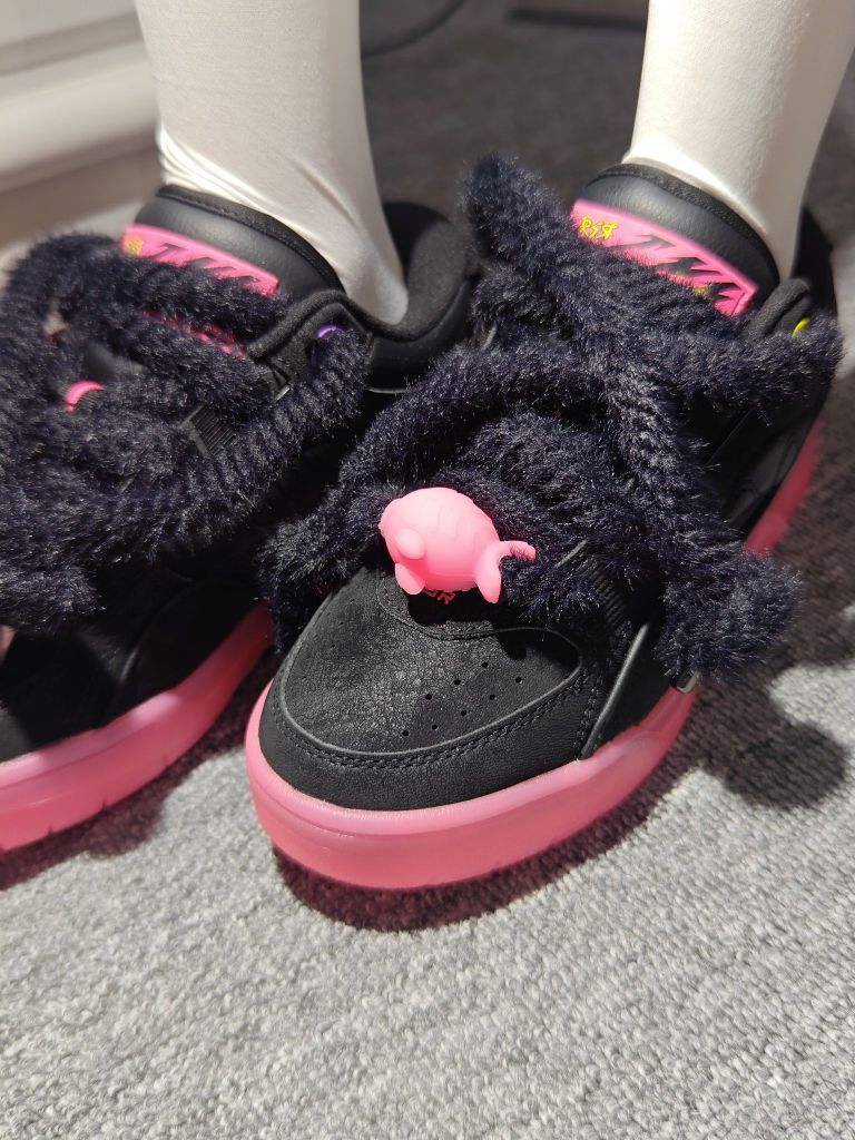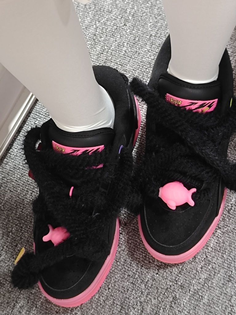 李宁fat cat特别版101,巨有设计感的一双鞋。专门设计过的鞋带毛茸茸的,上面是粉色的小鱼,鞋底一整个粉色橡胶大底不要太粉嫩黑色鞋面也非常有质感。一整个国潮风设计,不容易撞鞋。
