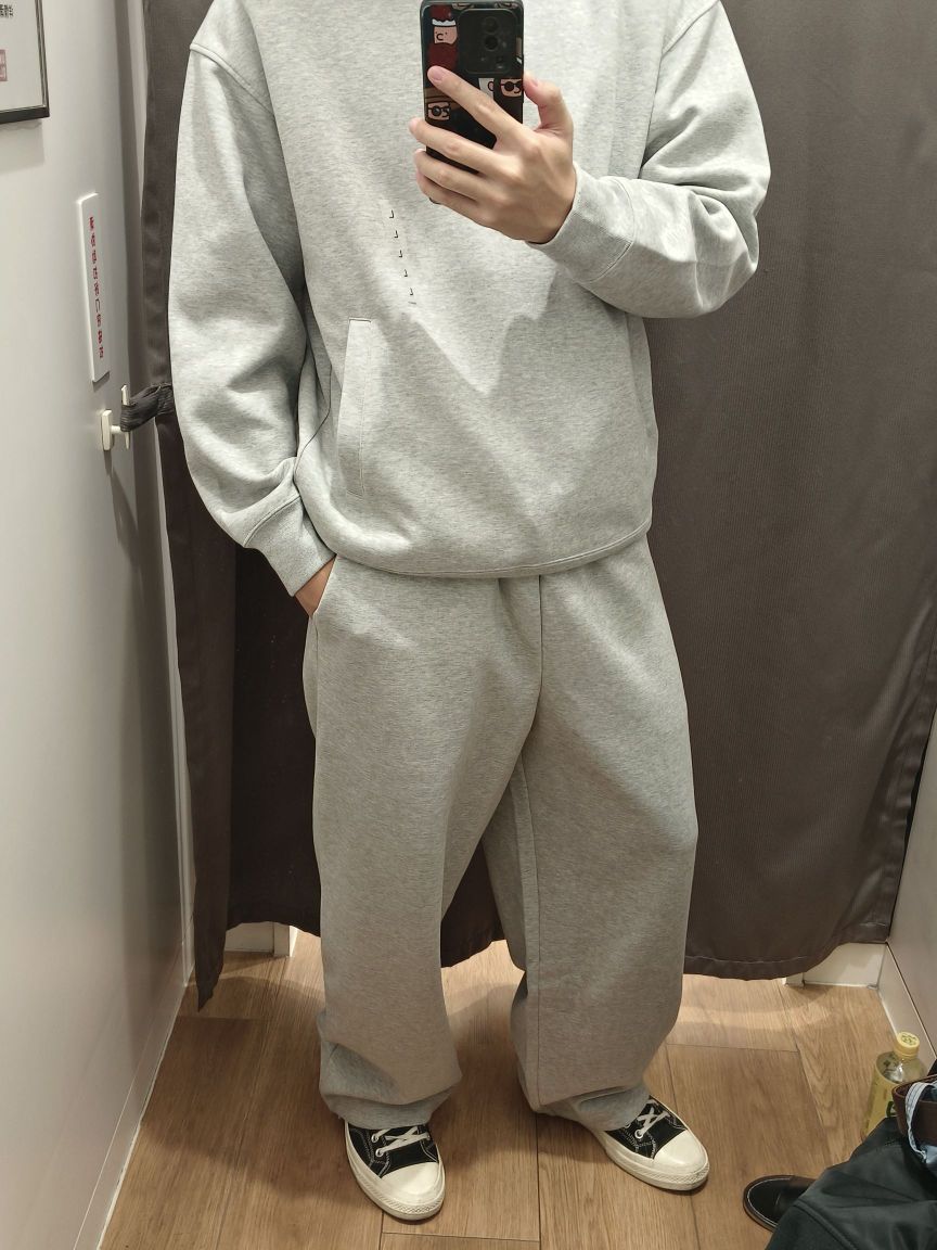 👔:宽松连帽卫衣(长袖)Gray 👖:宽松运动长裤 Gray 👟:CDG x Converse 1970s chuck taylor all star hi 川久保玲爱心联名款 原相机直出给你最真实的穿搭体验 U家货号在这里:341-471808 341-471809