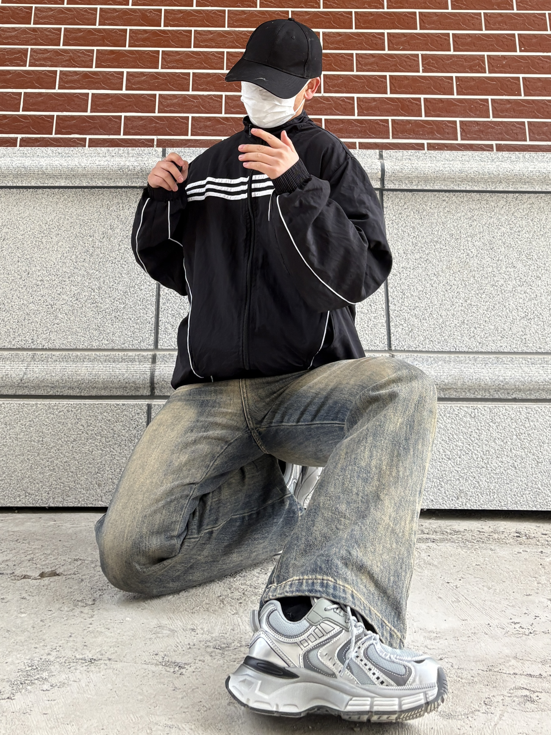 男大秋冬穿搭穿出时尚氛围感💗 时尚外套➕修身牛仔长裤👖➕银白色老爹鞋👟 直接穿出一身的秋冬氛围感👍 上身设计感满满 两边条纹设计感满满 搭配一条修身牛仔长裤👖 鞋子是银白色老爹鞋👟 直接穿出男大秋冬时尚氛围感👍 推荐给大家哦