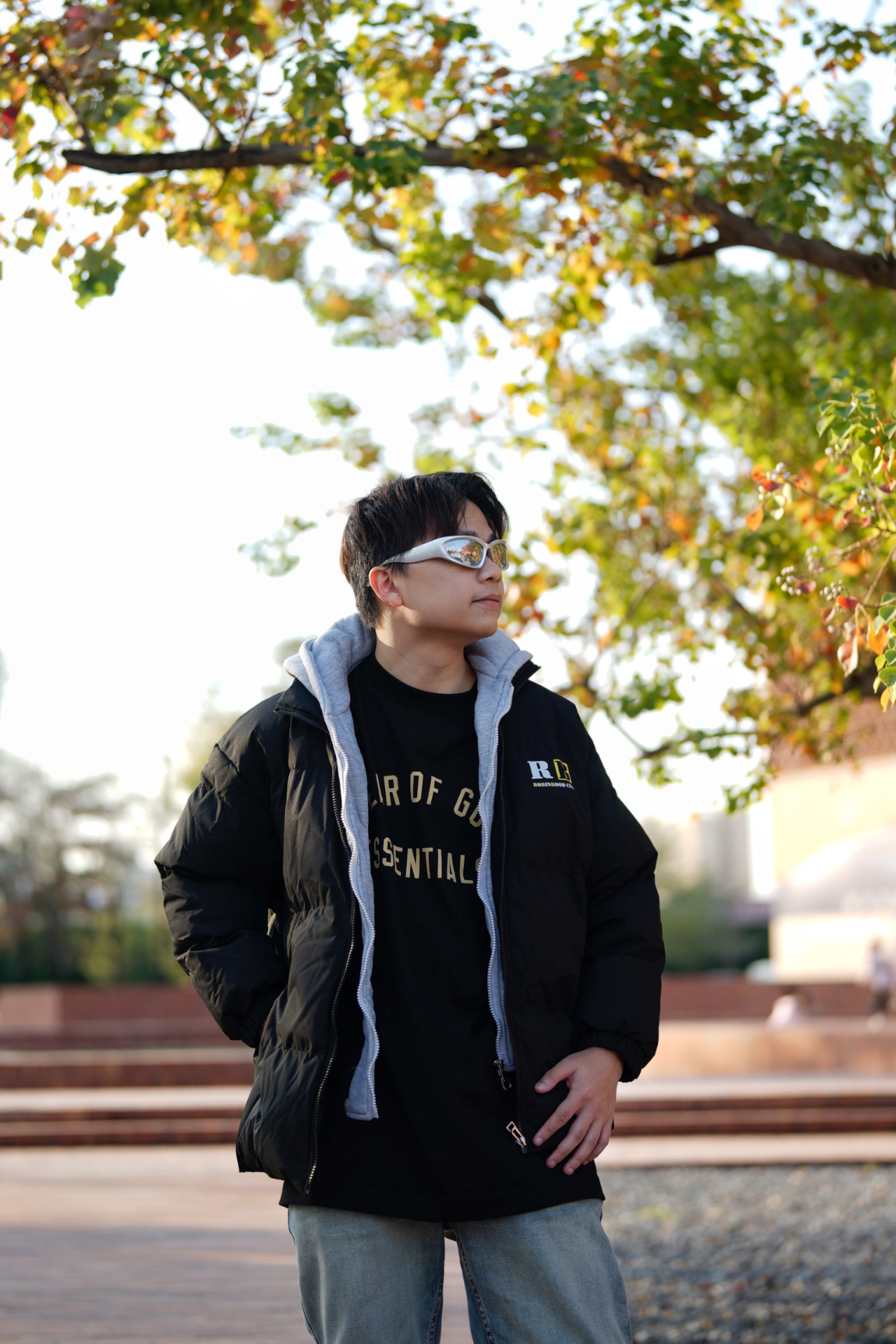广东终于冷起来了❄️ 一件羽绒外套真的救我一命 个人还是偏爱深色系 但是又不想太过单调 最近在穿的罗宾汉就很有可玩性✨ 背后两个小眼睛是精髓 假两件设计可以轻装上阵 嫌累赘的话也可以拆卸 这个厚度在广东妥妥一件过冬没问题 配件essentials的打底Tee 虽然偏大严重 但是还是很搭 🧥:Robinhood Club 👔:Essentials 👖:Haonanhuang 👟:Adidas X...