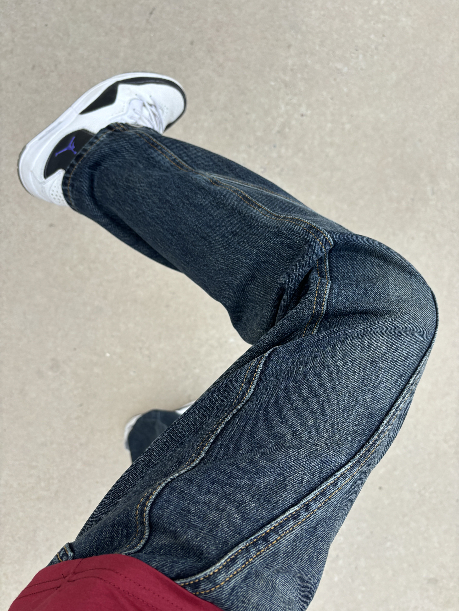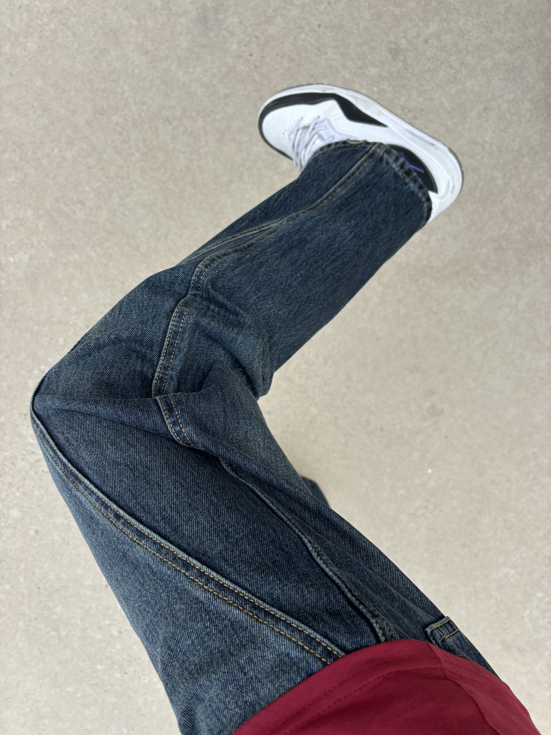 最近好喜欢穿牛仔裤 直筒宽松版型显高显瘦好舒服 裤腿的分割设计高级感满满 简直我的梦中情裤!