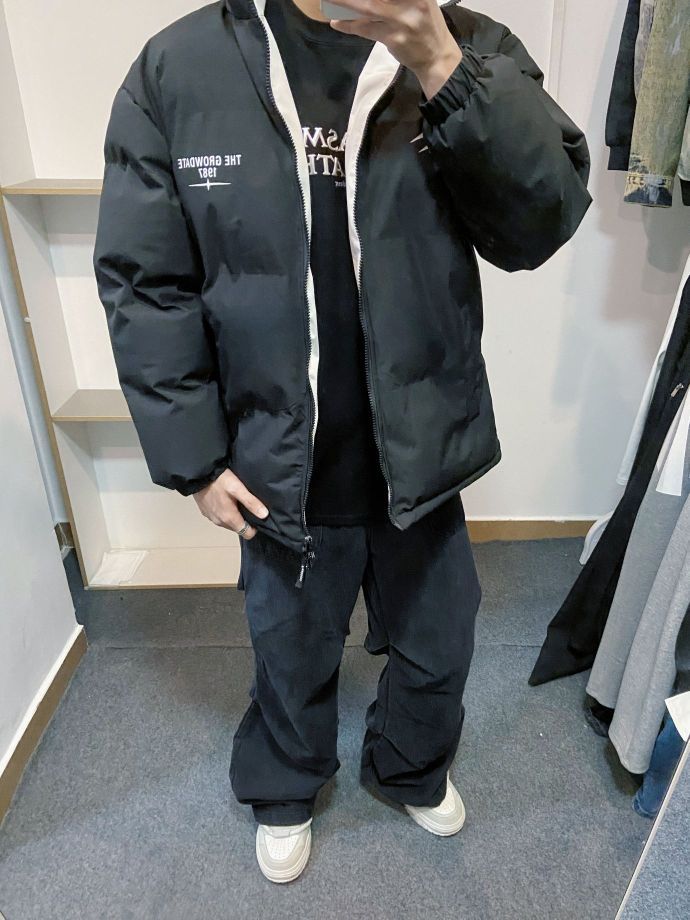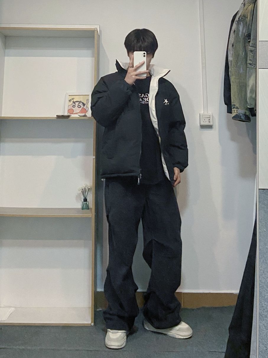 现在越来越觉得羽绒服非常好搭配 如果实在不会搭的话那就一身黑永远不会出错 当然一身黑也有穿搭技巧 衣服的品质质感也很重要 这件羽绒服就很不错 它的内胆颜色是白色的 不会像纯黑那么单调 增加了穿搭的层次感 再搭配一个小白鞋刚好撞色上身的白色