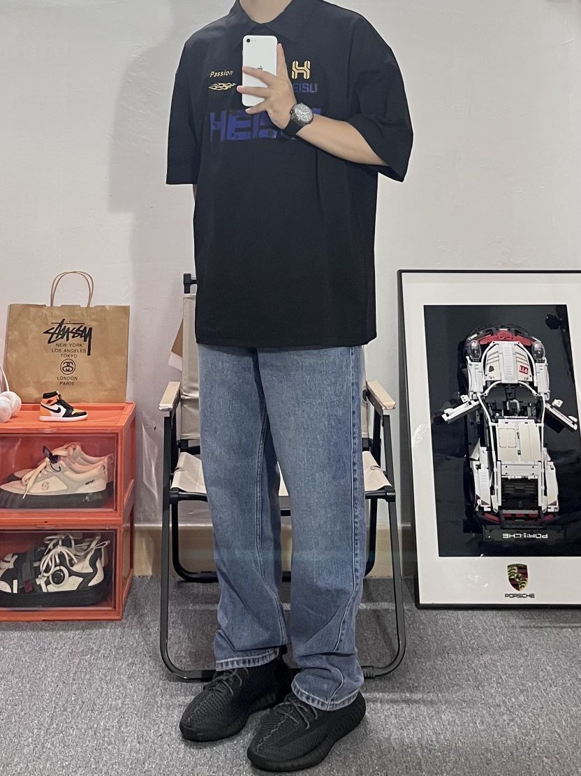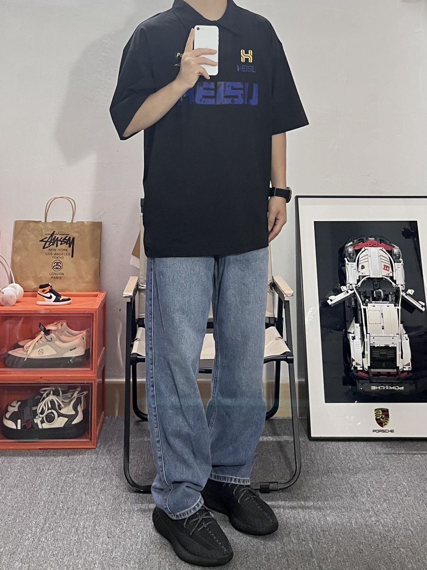 哈喽这里是pupu同鞋🏄🏻♂️ ——————————— . 👔:赛车polo · 👖:复古牛仔裤 男生衣柜必备的单品 自然的水洗效果很帅 宽松直筒的版型 显裤型不显腿型显瘦✔️ 颜色是很正的蓝牛 上身就是干净清爽男友风 · 👟:yeezy ——————————— 💁🏻♂️:170/115 以上都是个人观点🍟欢迎讨论