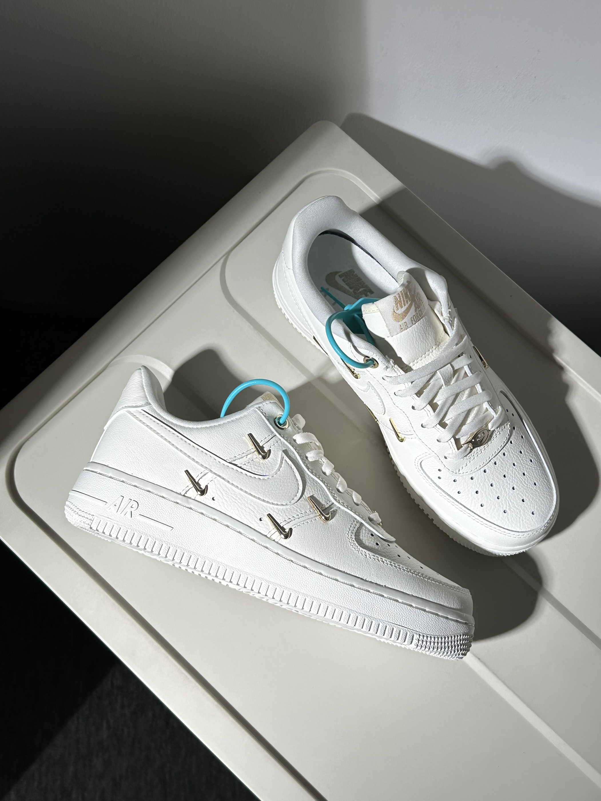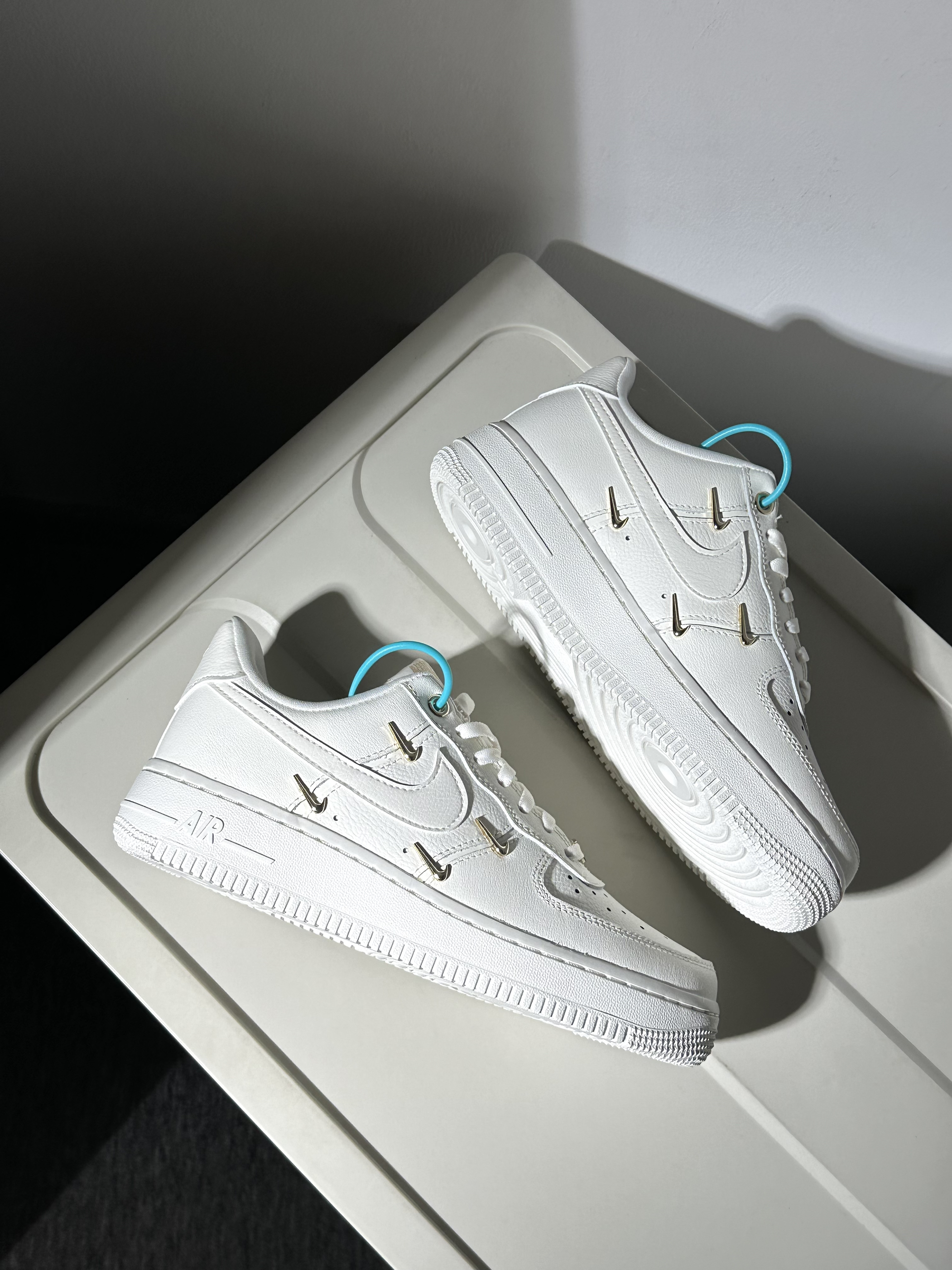 今天跟大家分享一下最近发现的宝藏af1,一起看看鞋子的细节如何吧‼️🤗 − 🥥配色:最近入手了这双很精致的白金四勾af1,鞋子整体带来的感觉就是很高级很精致~四个亮面小钩子很吸睛,辨识度很高✨,上脚搭配起来很简单,可以穿出很高街的感觉,很显贵‼️👛 🥝材质:鞋面全部用到牛剖层革材质,做成了荔枝纹光面皮革,质感很棒打理起来也很简单~但是依然要注意鞋头部分穿久了会起褶变形的问题🙈 🐳尺码选择:鞋子...