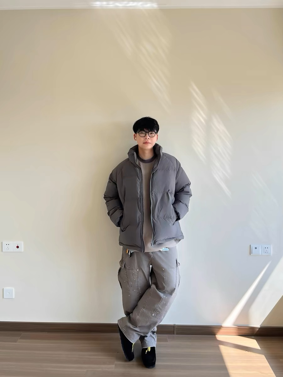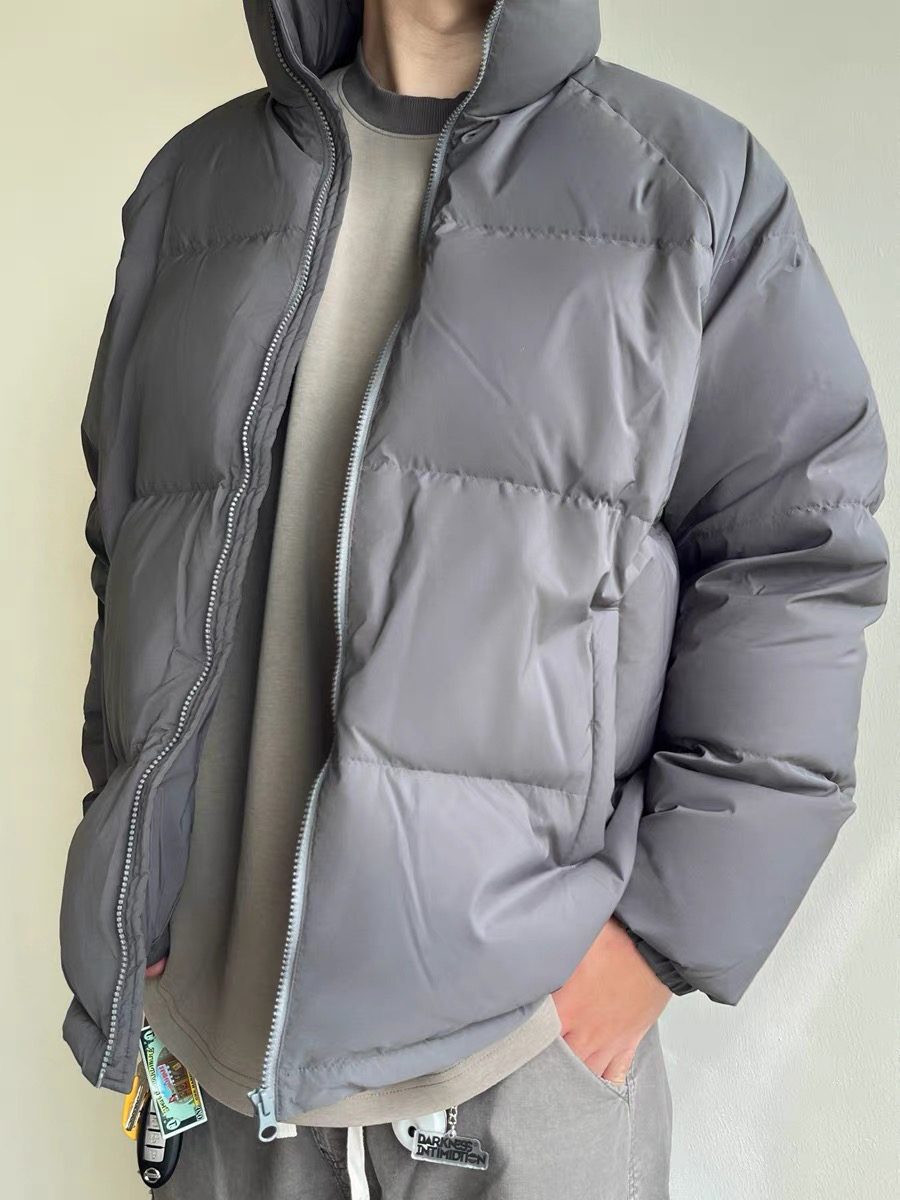 很帅气的灰色羽绒服,黄黑皮的小伙伴也不用担心显黑。这件衣服是我最近出门的首选,内里厚实好保暖,上身很轻薄,一点也不会显得臃肿。搭配休闲裤、牛仔裤都很可。随便一搭就有时尚感,男女同款。 (图片来自网络,侵删)