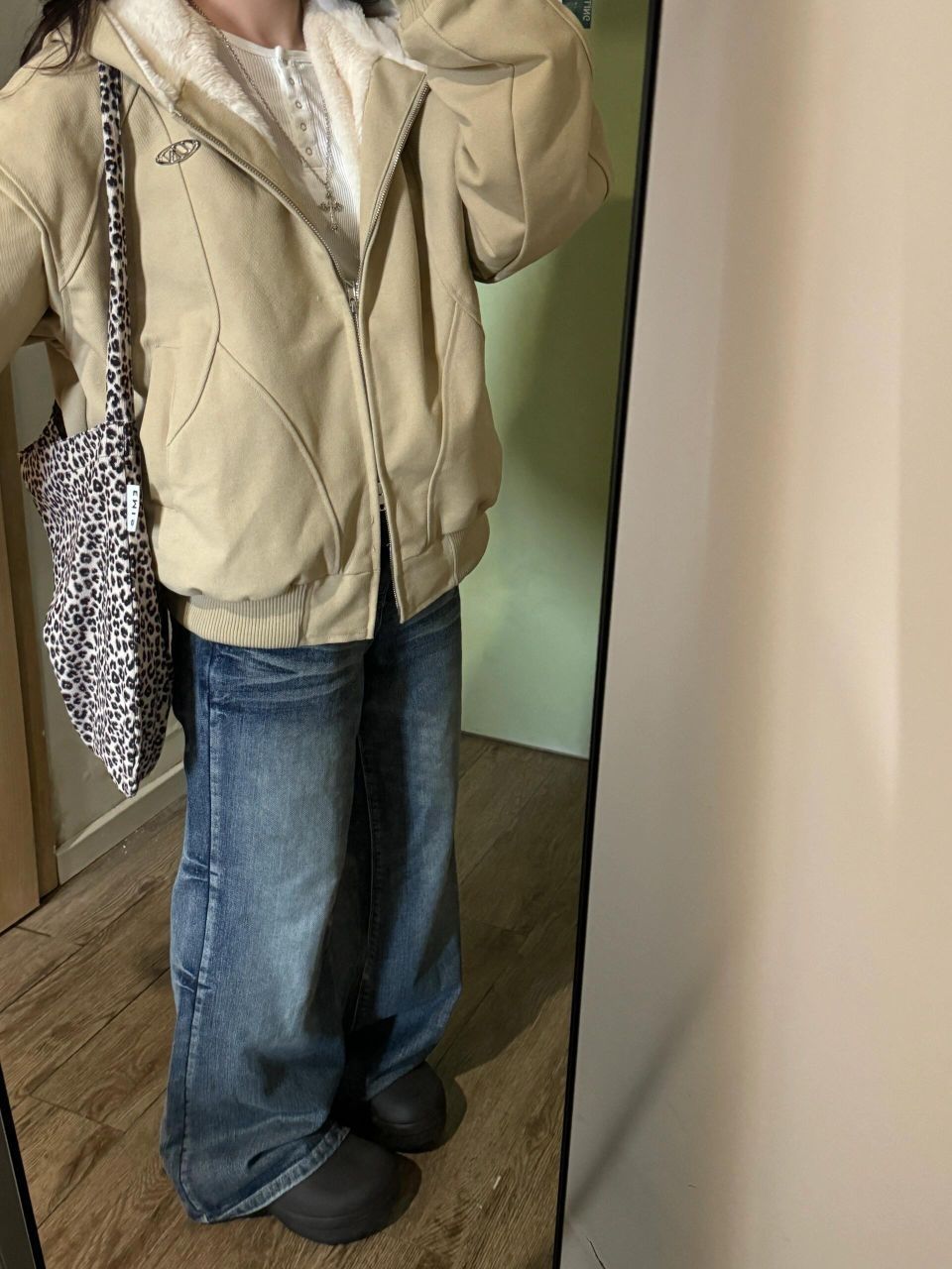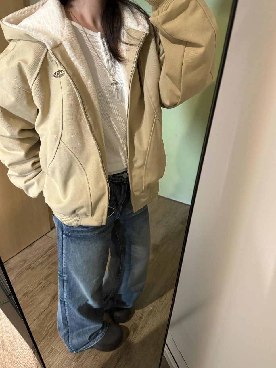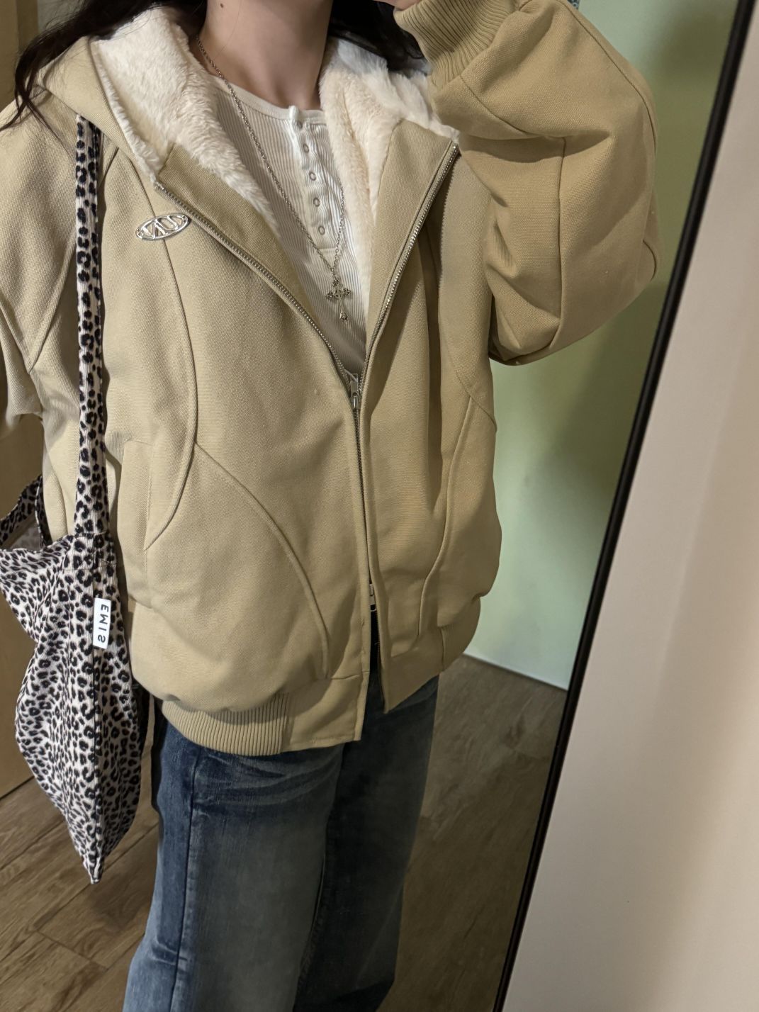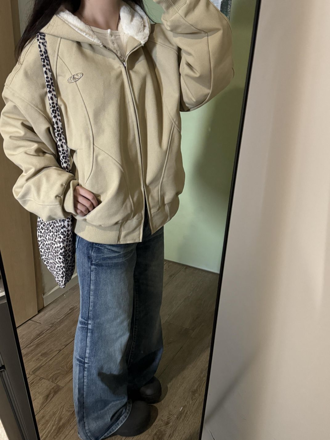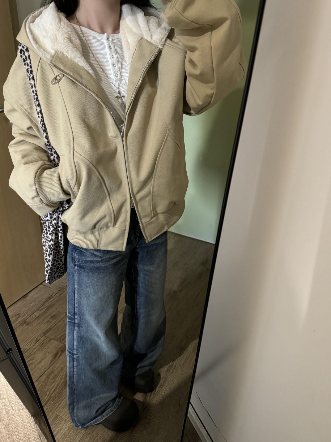 看惯了冬天的深色系 给衣柜一点颜色看看 淡淡的卡其色+今年很流行的座山雕外套 感觉很适合秋冬 而且内里的毛软软的很舒服