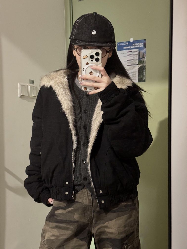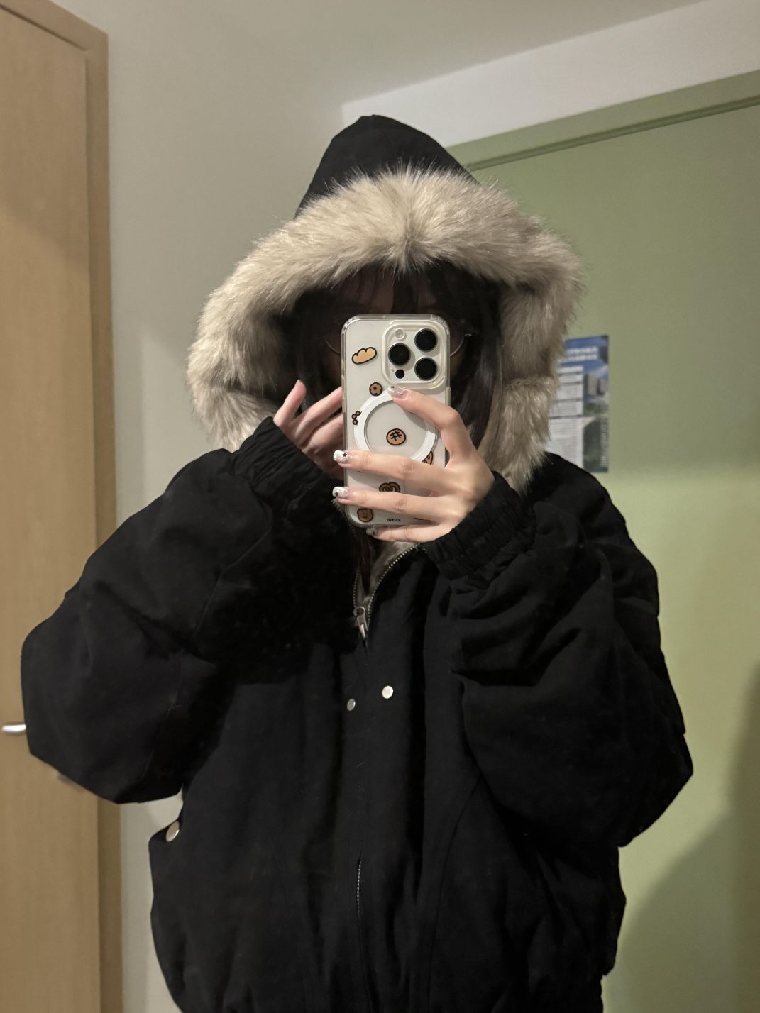 秋冬真的很需要一件这样的外套 今年毛毛领外套火确实是有点道理的 领口的毛软软的一点也不扎脸 最近里面穿一件也不冷 适合过冬的完美棉服