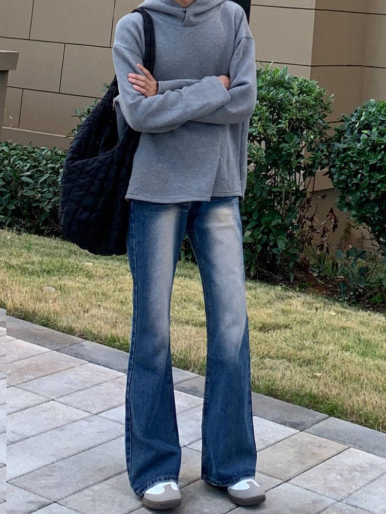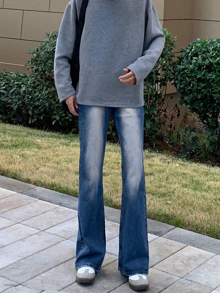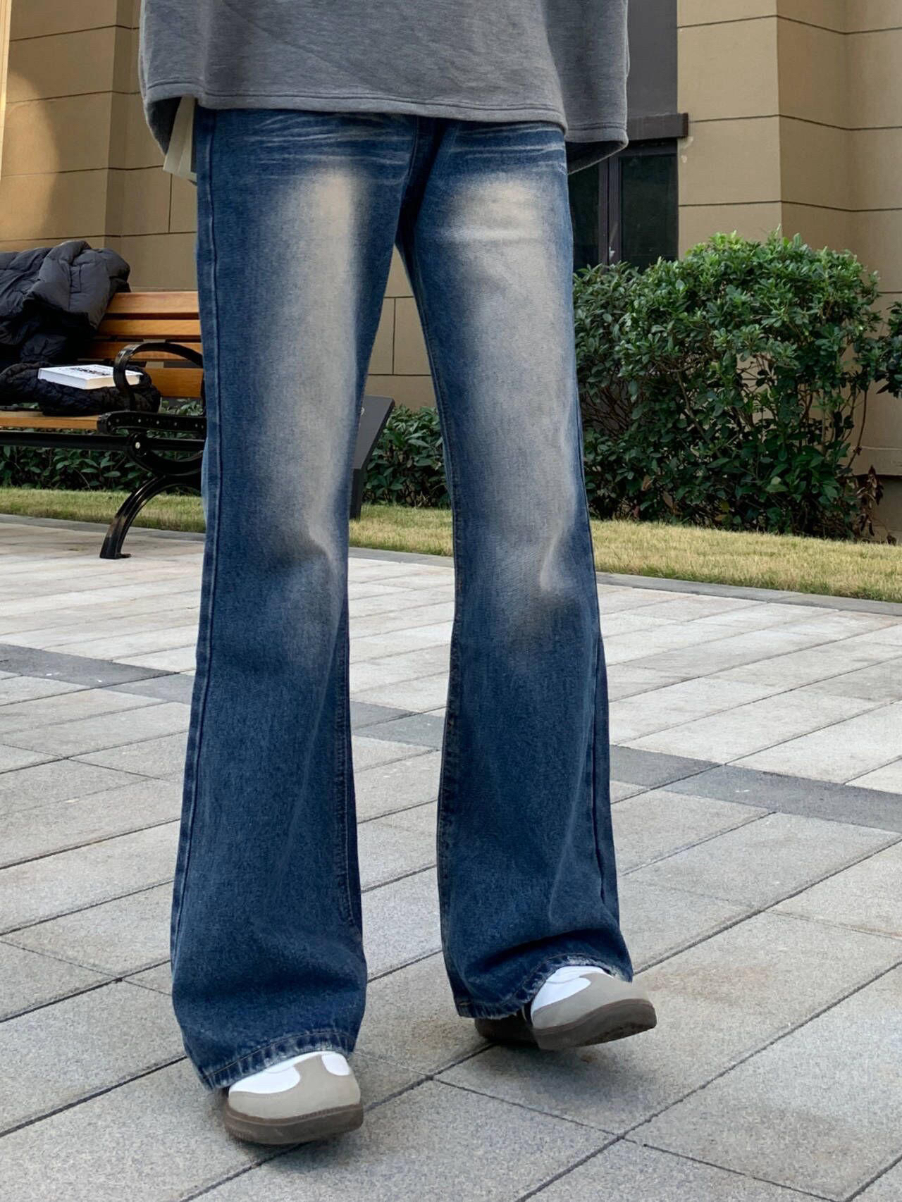 微喇叭版型 很显腿长. 宽松的同时还修饰腿型~ 真的很喜欢这条宝藏蓝牛!