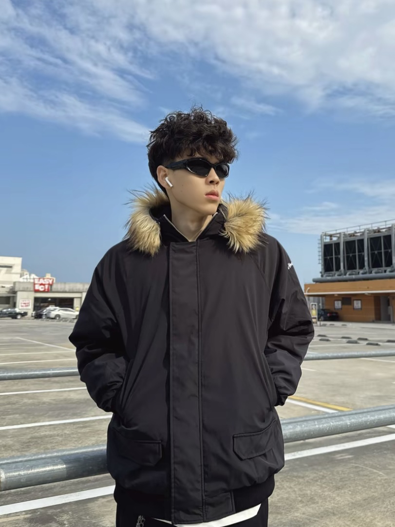 🎪这件工装风棉服可太百搭了,面料厚实重磅,上身安全感满满 🪘版型偏短款的设计,上身显腿长,拉长整体比例 🎧帽子做了可拆卸式绒毛,戴上帽子妥妥的防风刺绣的logo,质感满满,潮流百搭@惠州第二深情_