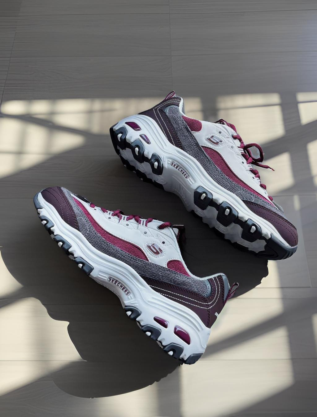 斯凯奇的运动鞋超绝,这次跟大家分享的是黑糖烤奶! 鞋子是树莓和焦糖的配色,哇塞!超绝,秋冬必备的好吧,棕色和酒红色拼接设计也很不错 作为经典的一款老爹鞋,脚感很舒服的,还有增高效果,日常出勤或者出去玩都是🆗的,百搭好看