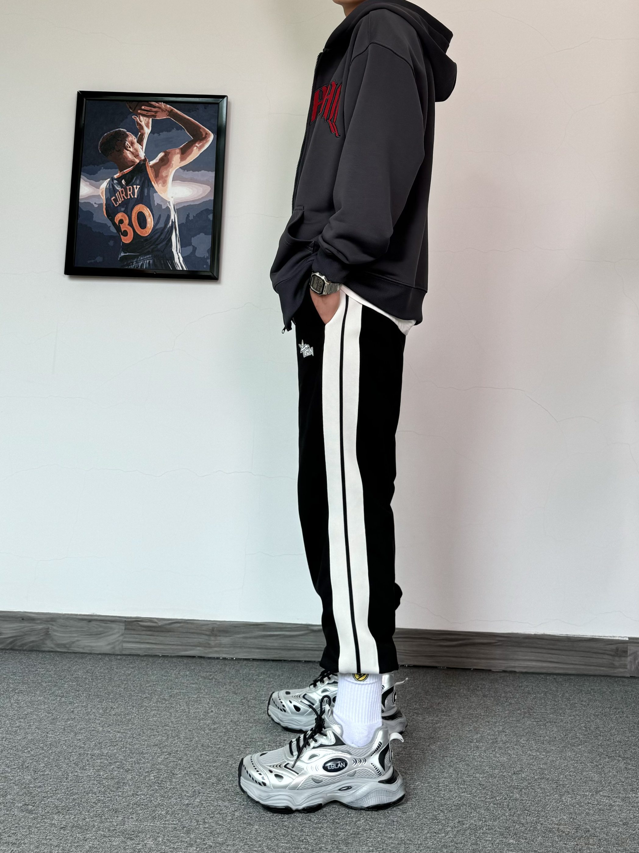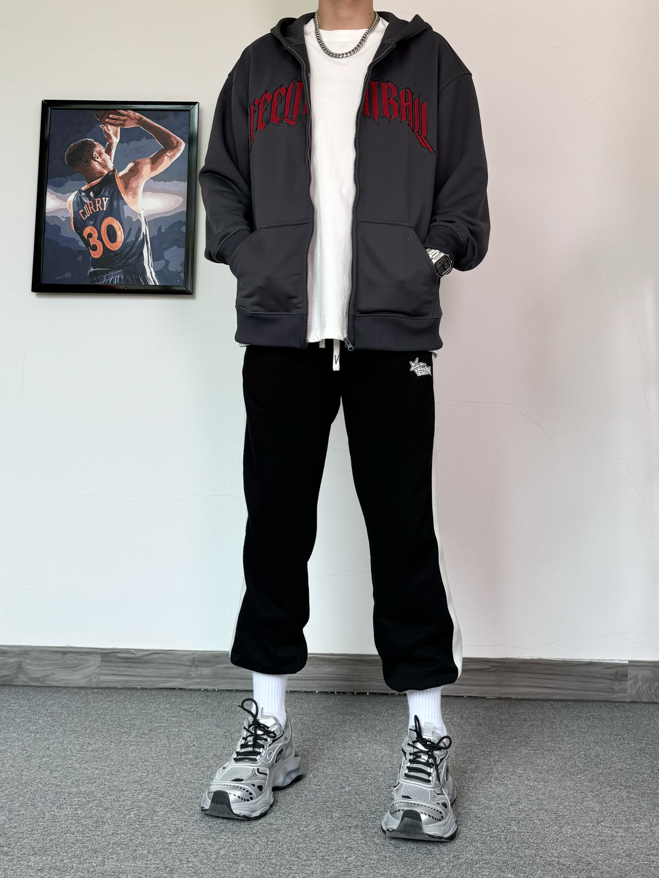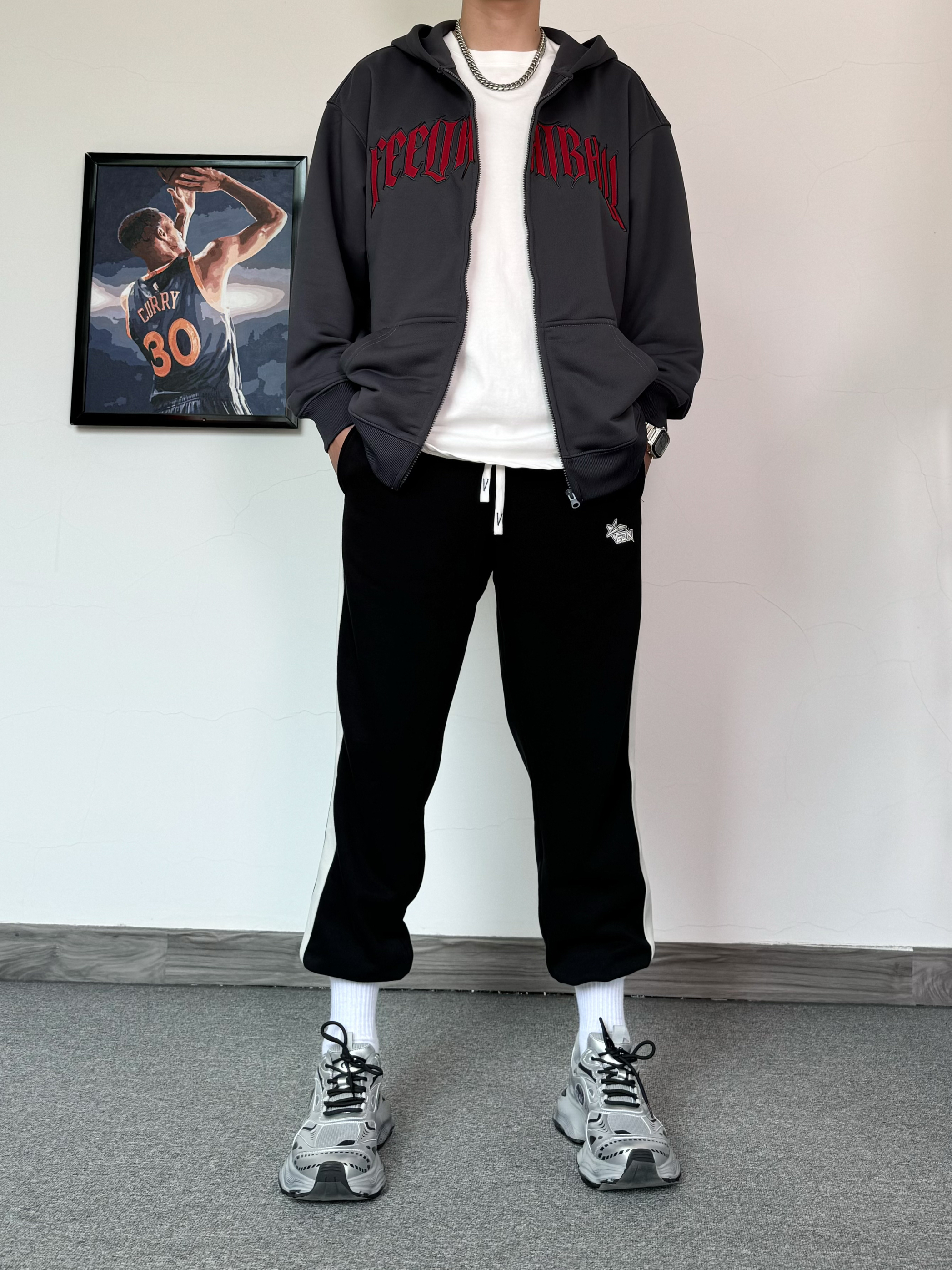 秋冬主打休闲舒适 今日份美式刺绣印花连帽衫 搭配黑色束脚卫裤✔️ 侧边条纹设计嘎嘎显腿长 脚踩灰色户外鞋✨ 回头率这不就上来了吗!