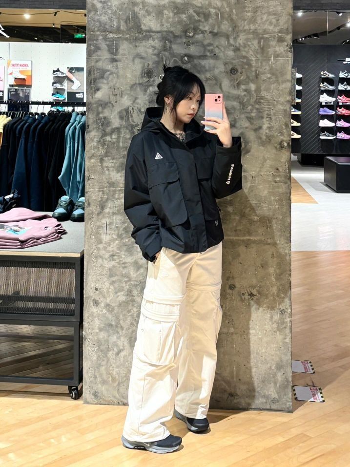🌸撞入Citywalk的舒适区、今天是城市户外风🌬️~ 🌸短款ACG外套搭配高腰的工装裤、也太拉长身高比例吧,棉服打造工装风,黑灰帅出秋冬时刻,属于女生又酷又飒的专属look 🌸短款软壳不多见,防风防水在冬天比较有安全感,P棉填充就是轻暖好打理,随意搭配加绒卫衣卫裤,就个性鲜明,让见着很难不爱 图源网络侵删