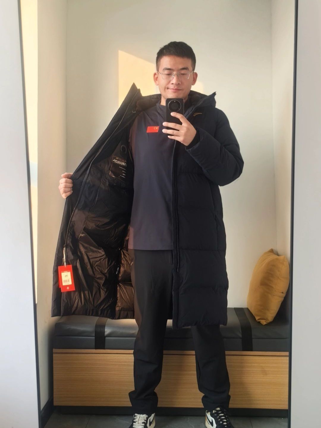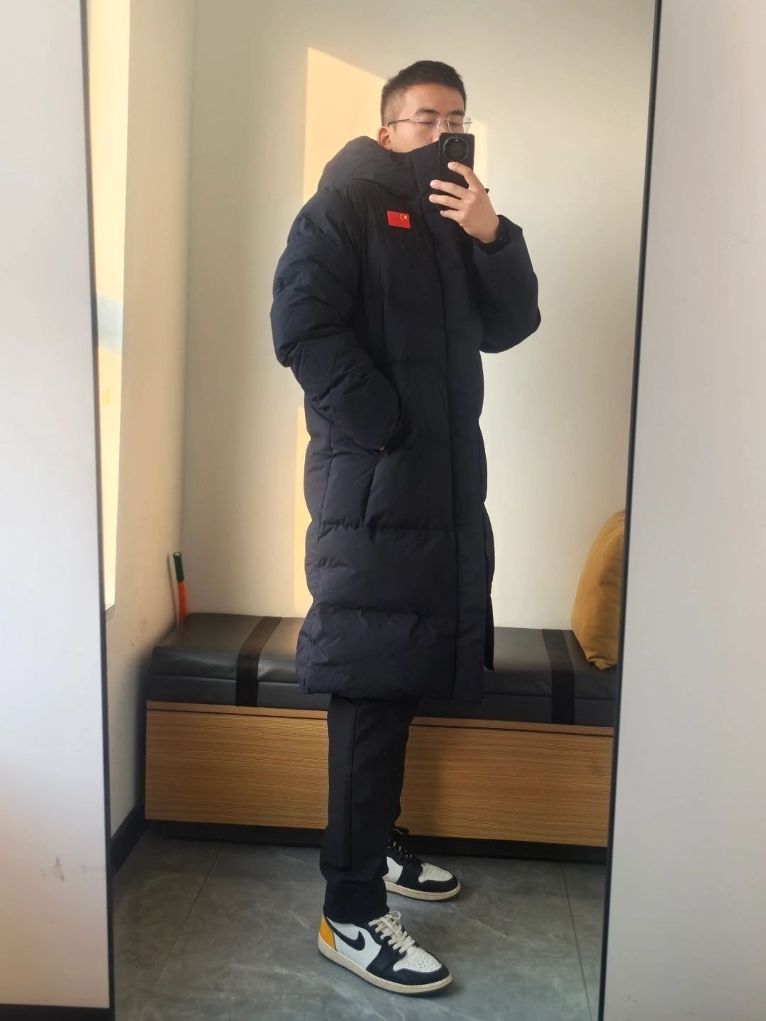 天气骤降,兄弟们注意添衣 冬天穿搭简单保暖就好 95%的充绒量,保暖舒适 优质白鸭绒,上身很轻,日常通勤无压力 胸前那一抹红,祛除一身班味 加绒商务休闲裤,既保暖又挺括 个人188/90,尺码2XL,大小正正好 关于尺码任何问题,都可以问我哦 (图源网络侵删)