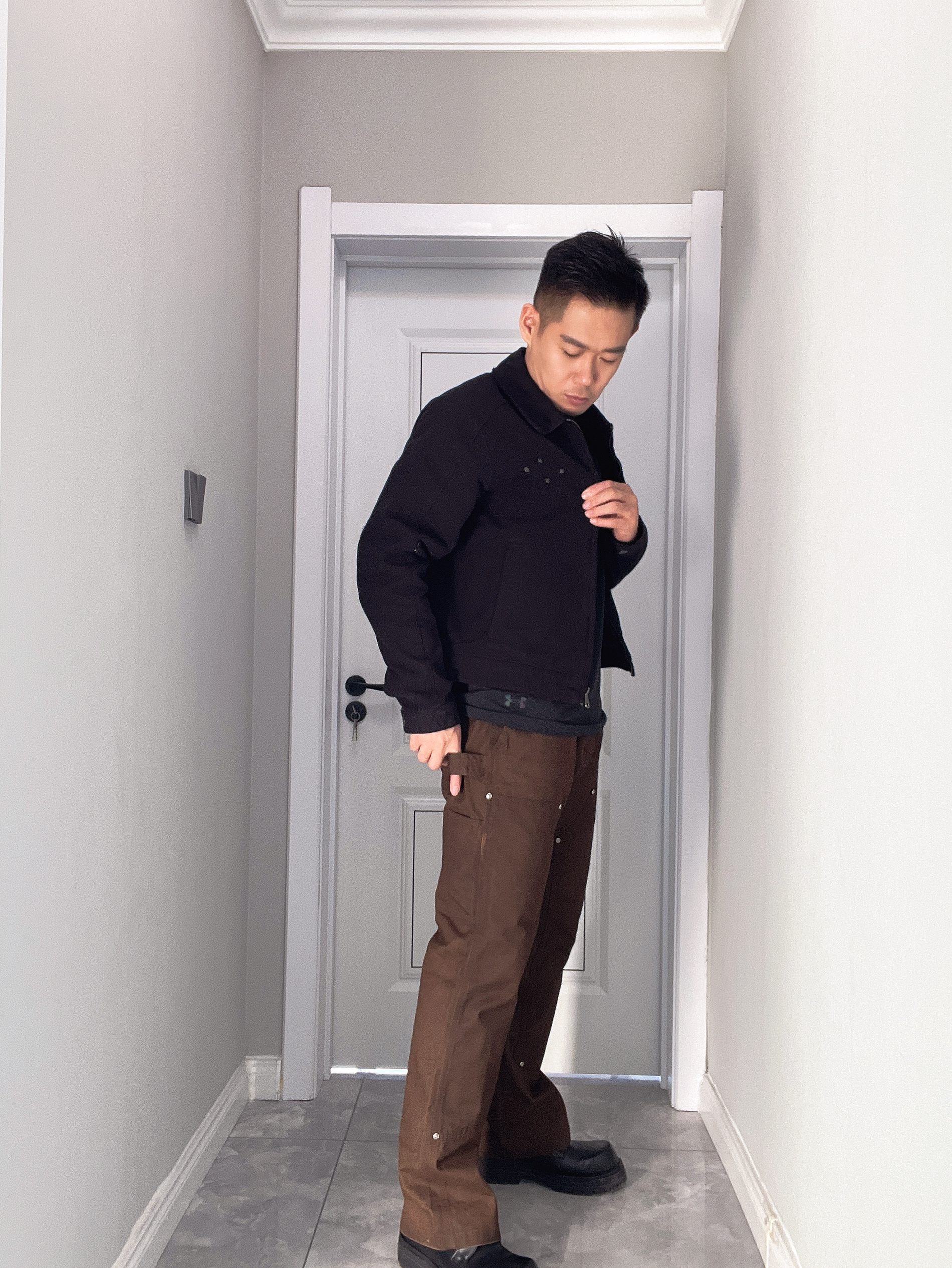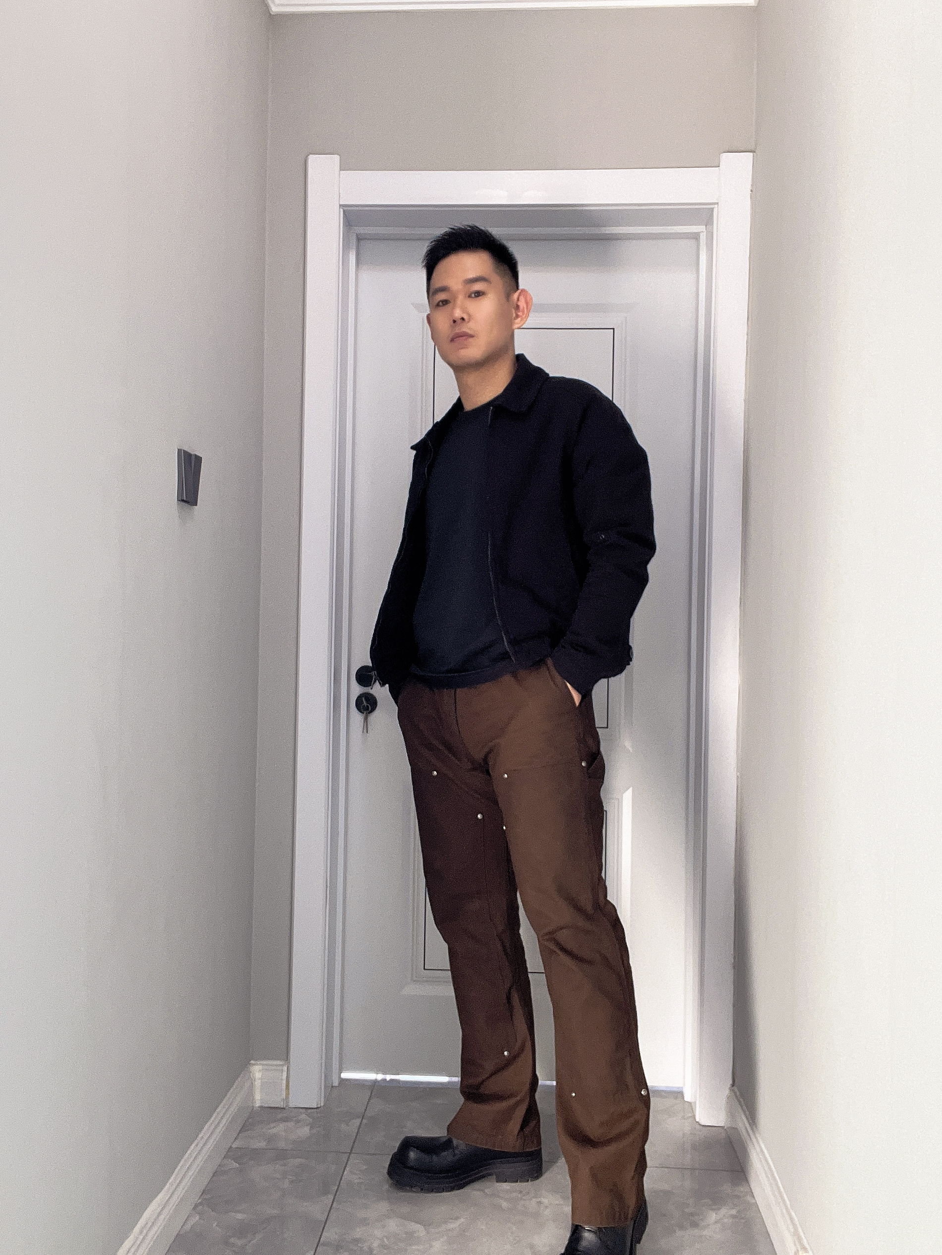 双十二入手一件小众伐木裤 上身很舒服,不像其他品牌硬邦邦的感觉 纯棉面料、做旧效果,上身很多合身 不属于宽松肥大的款式,非常显瘦 最大的亮点是搭配厚底鞋,非常显高