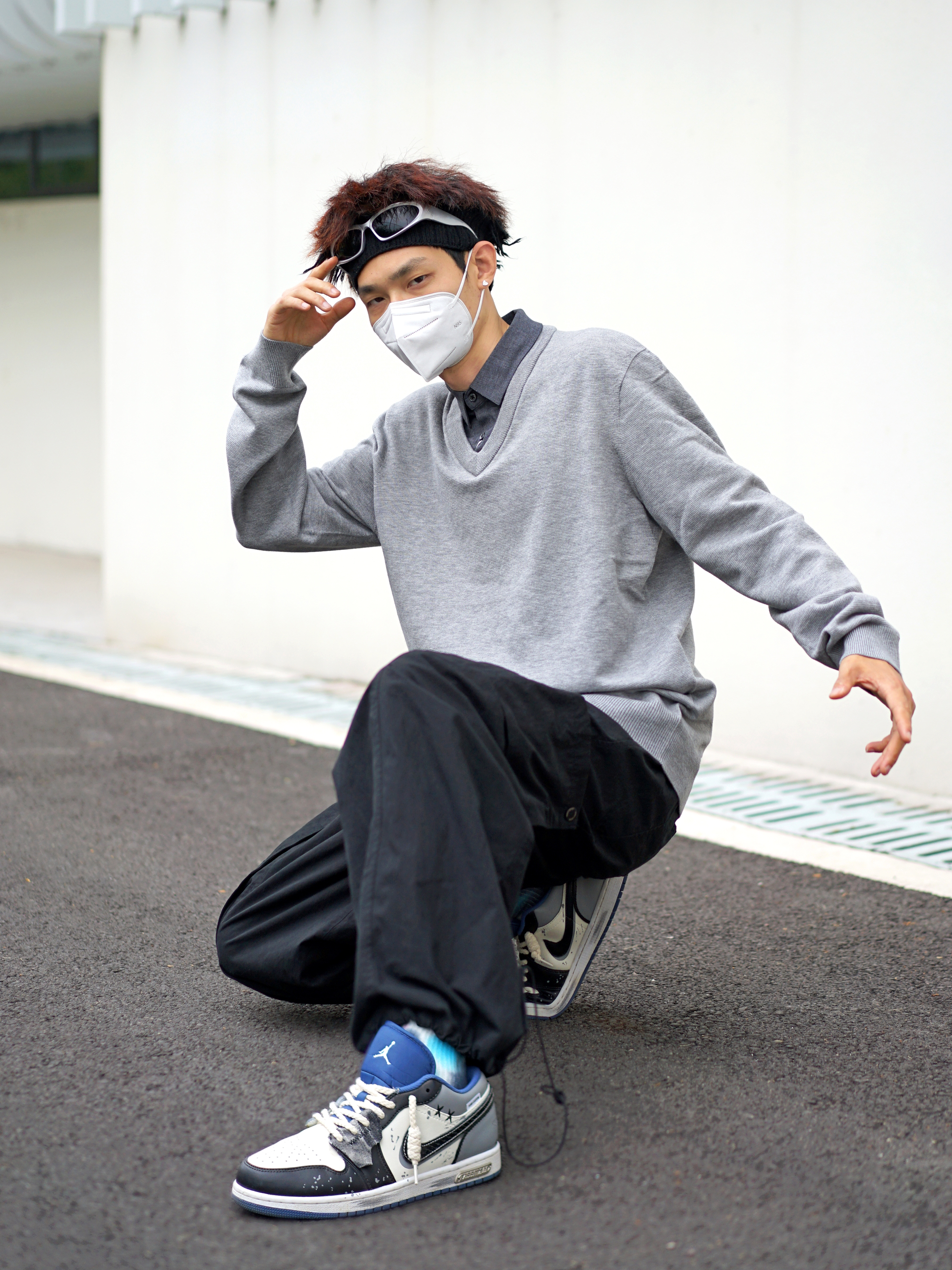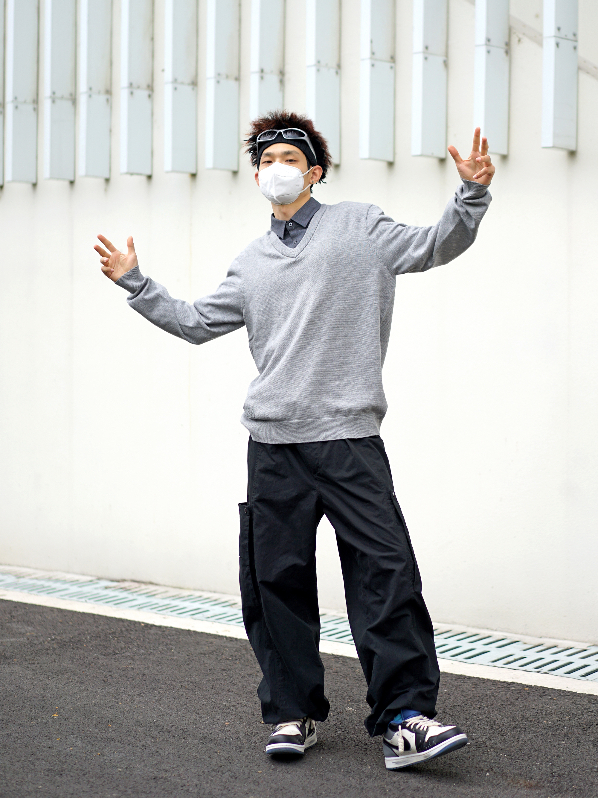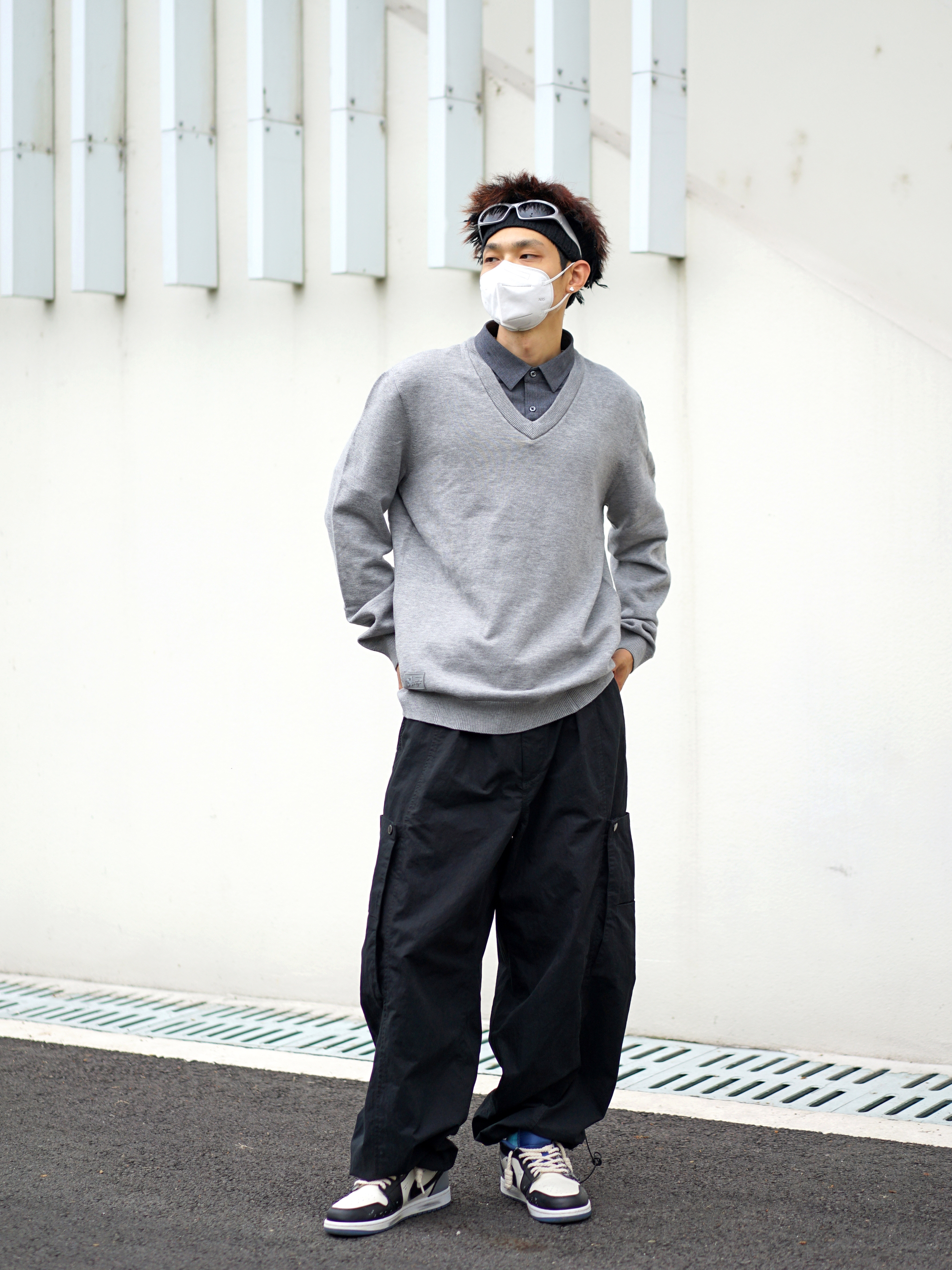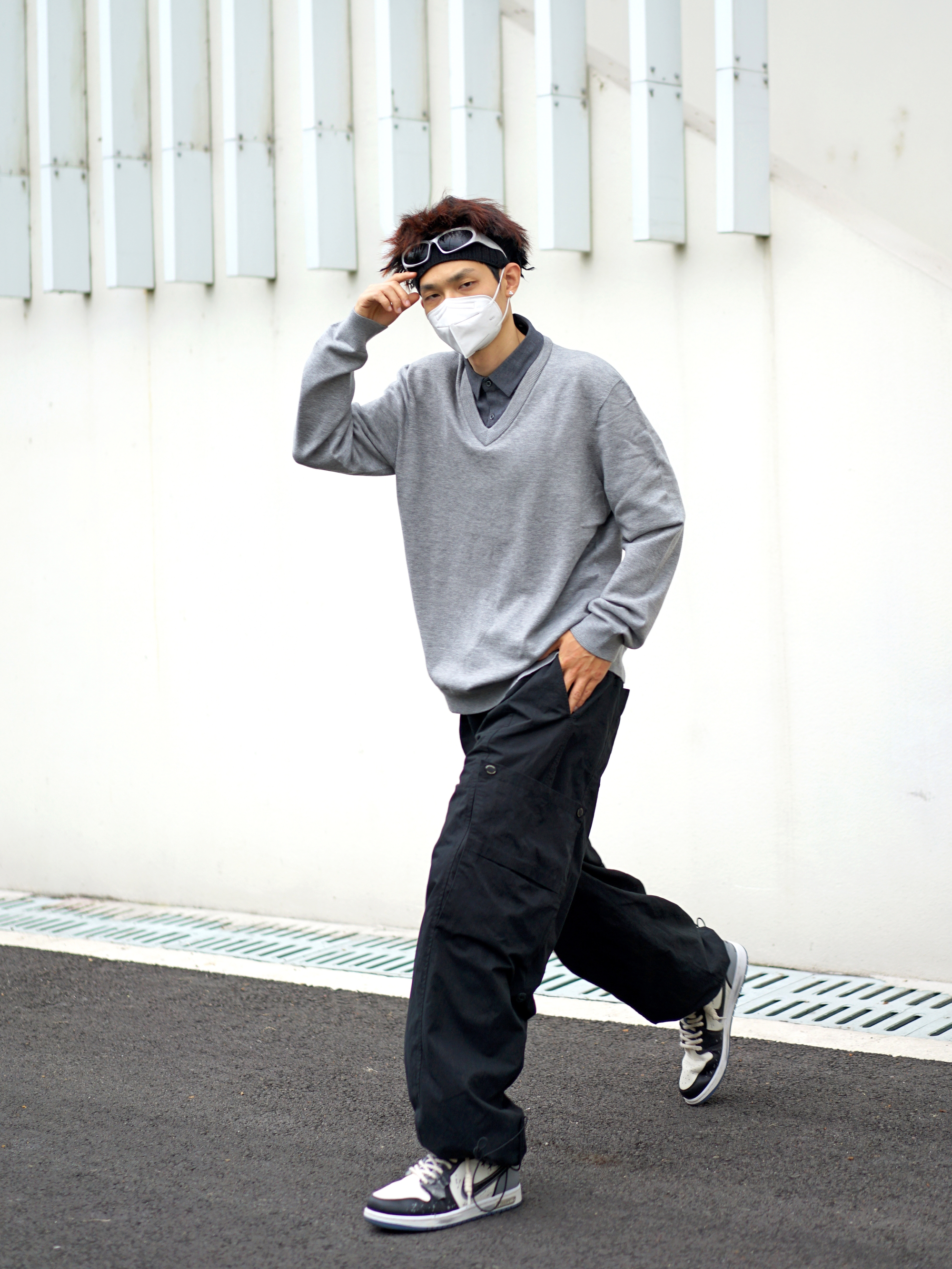都说针织衫配衬衫会有班味 咱今天就试试打破常规✨ - 假两件的针织衫自带层次感 搭配一条黑色的工装裤 不拘泥于传统的西裤 🎨简单干净也偏cleanfit 脚上一双涂鸦风的低帮AJ1 再戴上咱的银色墨镜 早八通勤没在怕的🎈