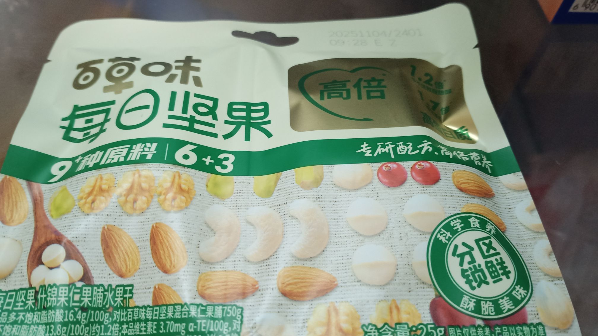 它的包装特别精美,里面的坚果和果干都很新鲜,没有一颗坏果。坚果颗粒饱满,吃起来香脆可口,果干酸酸甜甜,搭配得恰到好处,每天一包,营养又美味,已经回购啦!