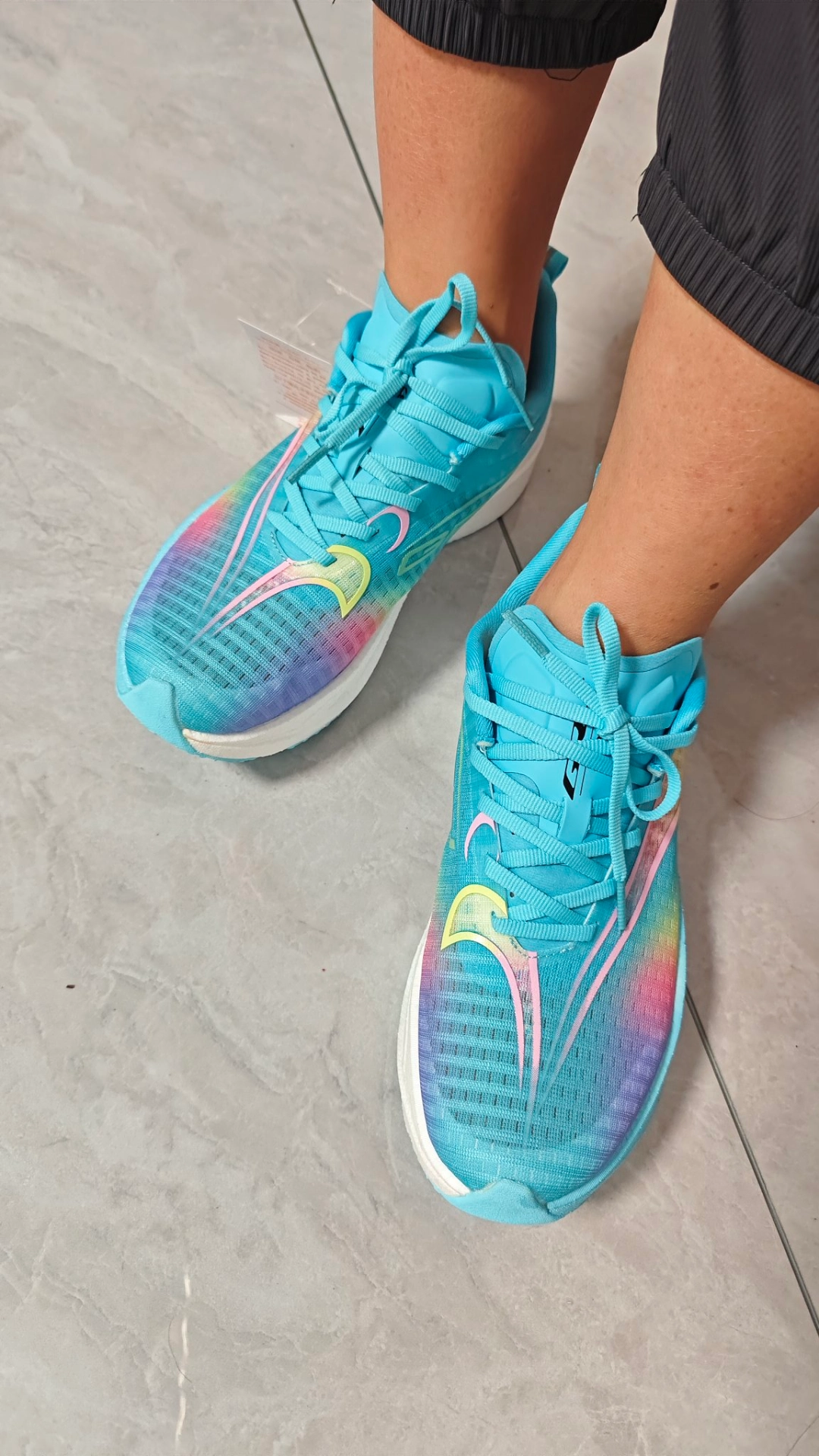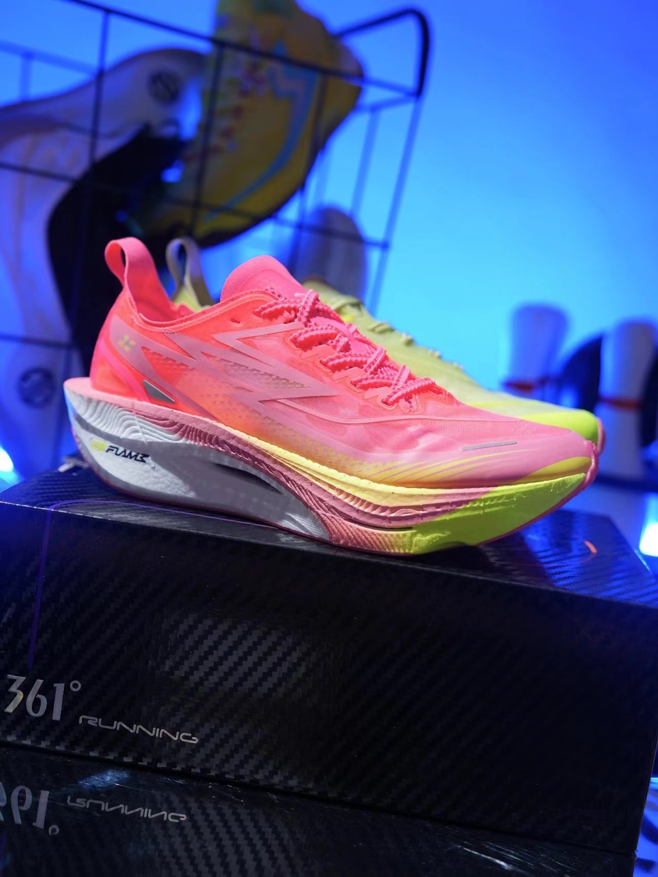 361飞燃3.5反转鸳鸯配色,上脚的第一感觉,就是轻盈!仿佛脚底装了弹簧,每一步都充满了动力。全掌碳板的设计,让鞋子在奔跑时更加稳定,无论是直线冲刺还是弯道加速,都能感受到它的助力👍🏻 舒适感也是满分哦!鞋垫采用了高级缓震材料,踩上去软绵绵的,就像踩在云朵上一样。而且,鞋子的透气性也非常好,即使在炎炎夏日,也能保持双脚干爽,不会感到闷热。 💞配色方面,这双鞋的鸳鸯设计简约而不失时尚。经典的红黄配色...