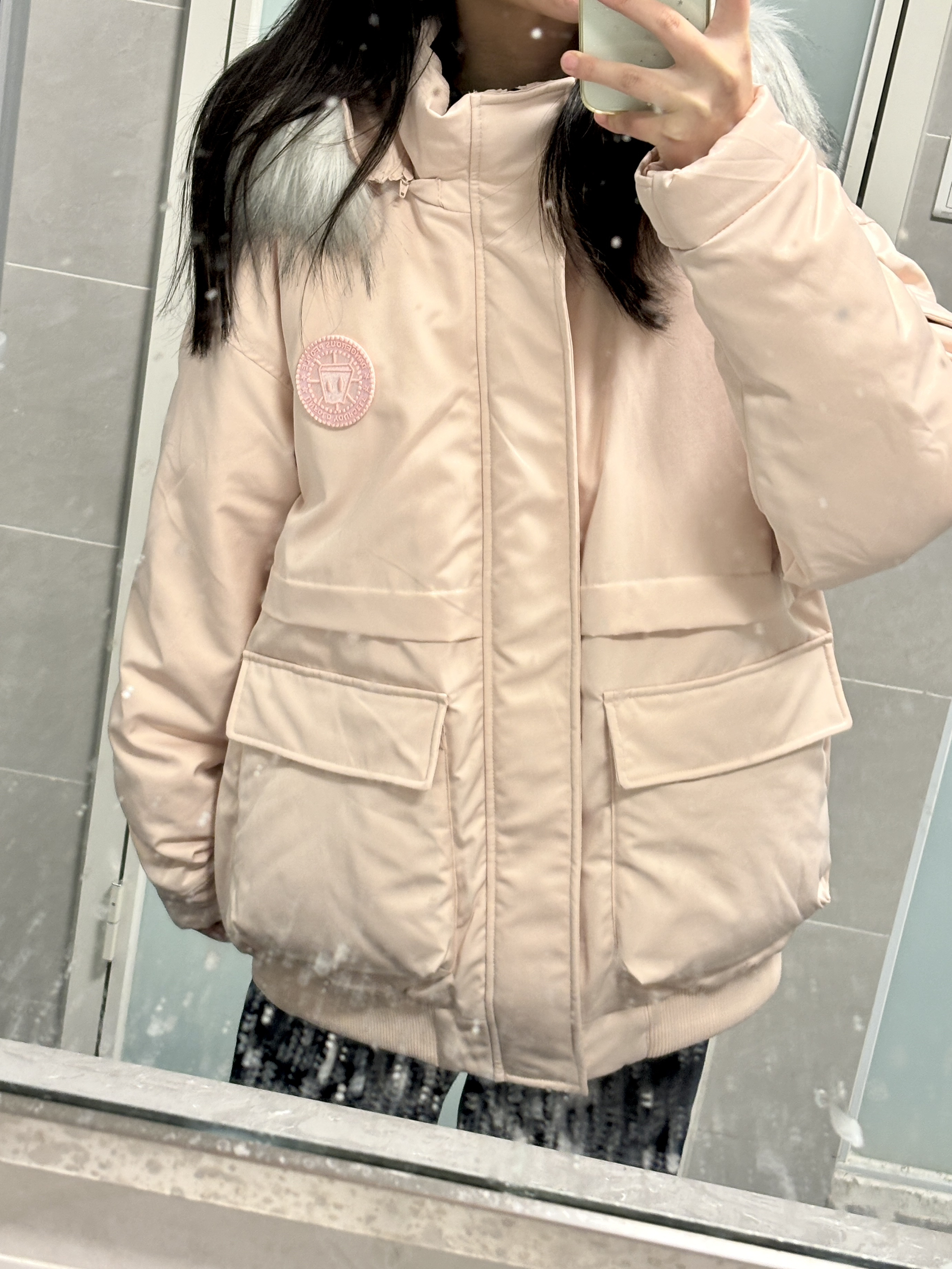 本来以为会臃肿,结果完全不会!🥹 充绒量也还不错,暖暖的很安心~ 粉色调的很好看,感觉能搭很多单品~🥰