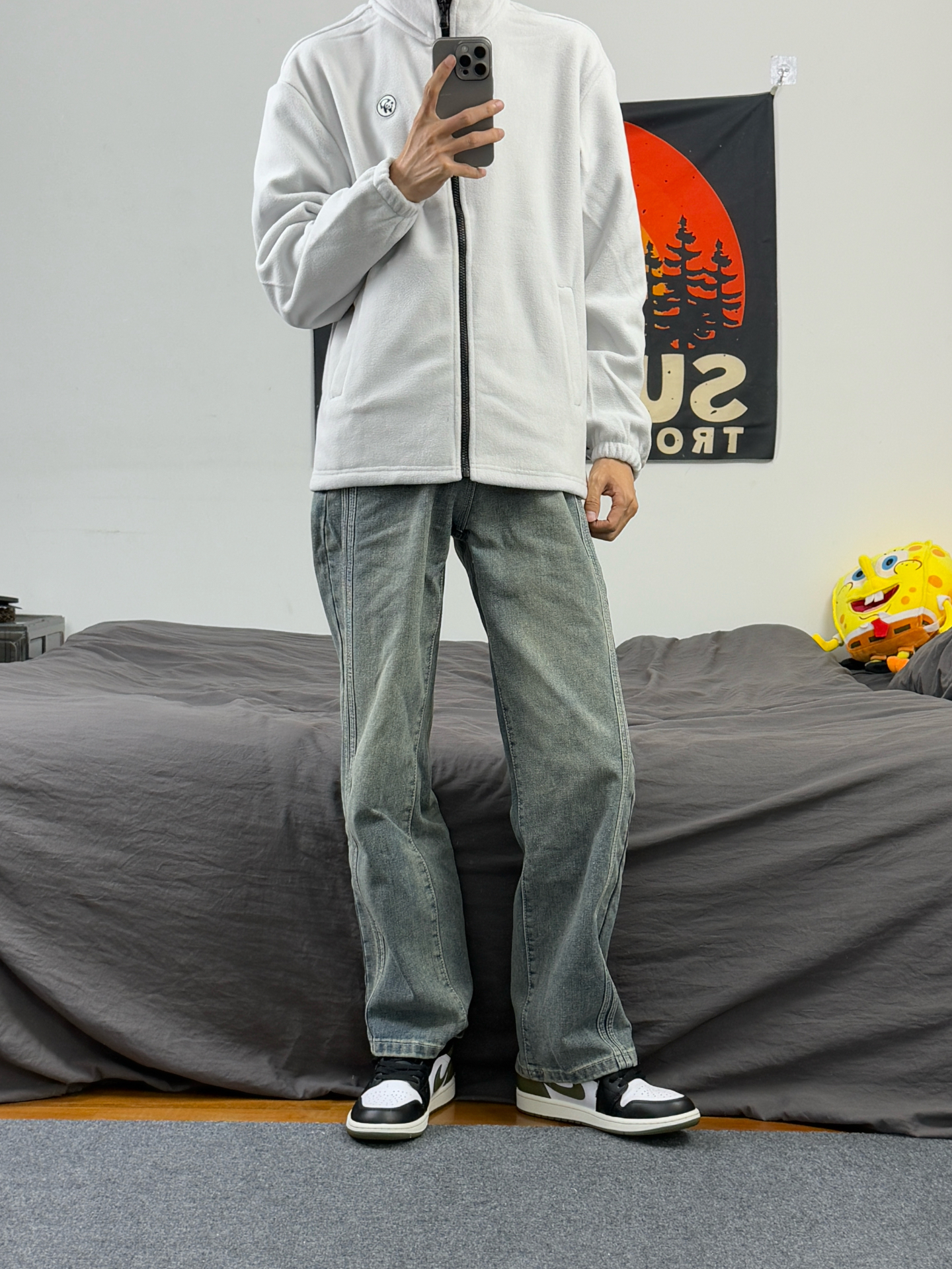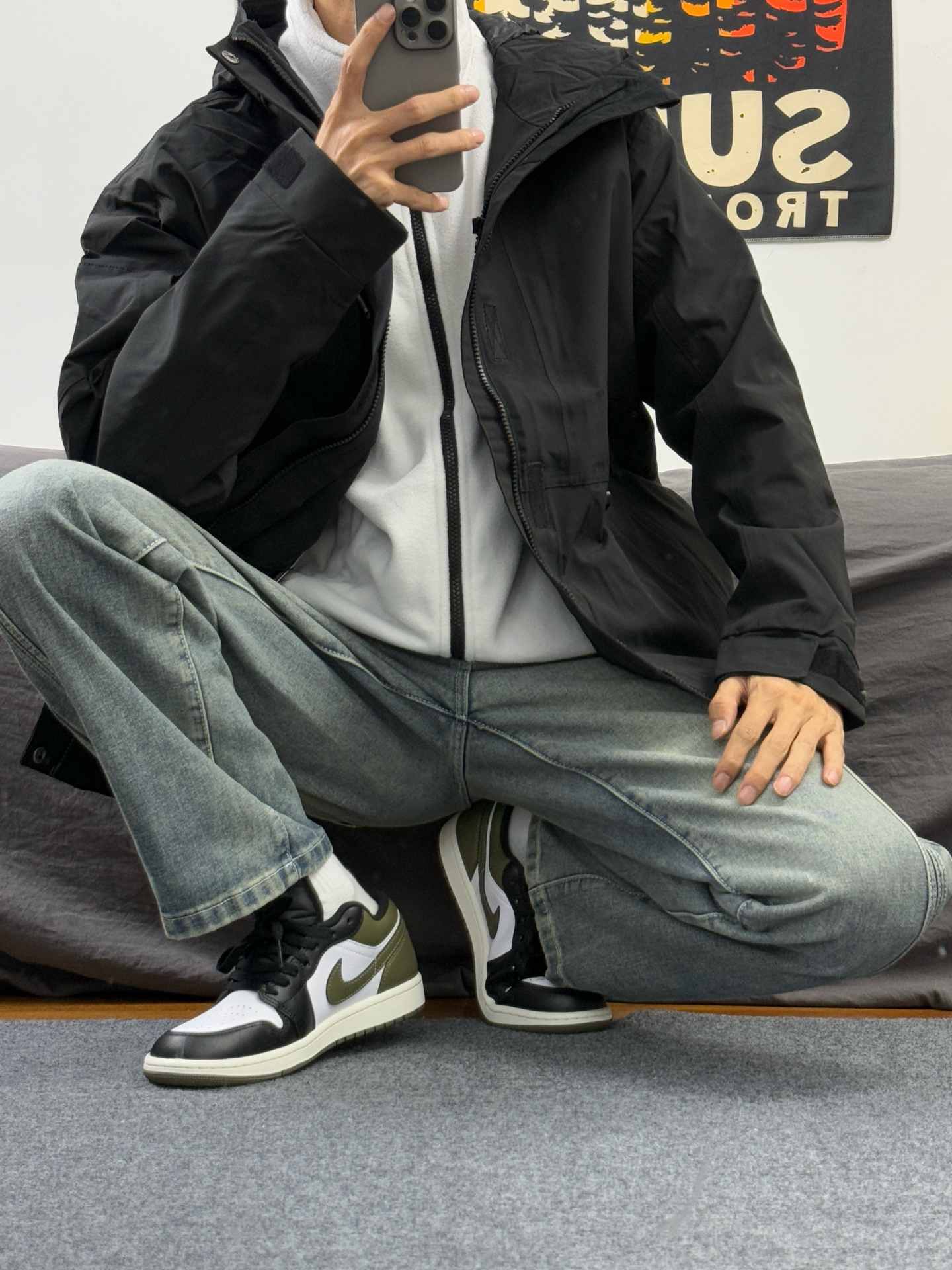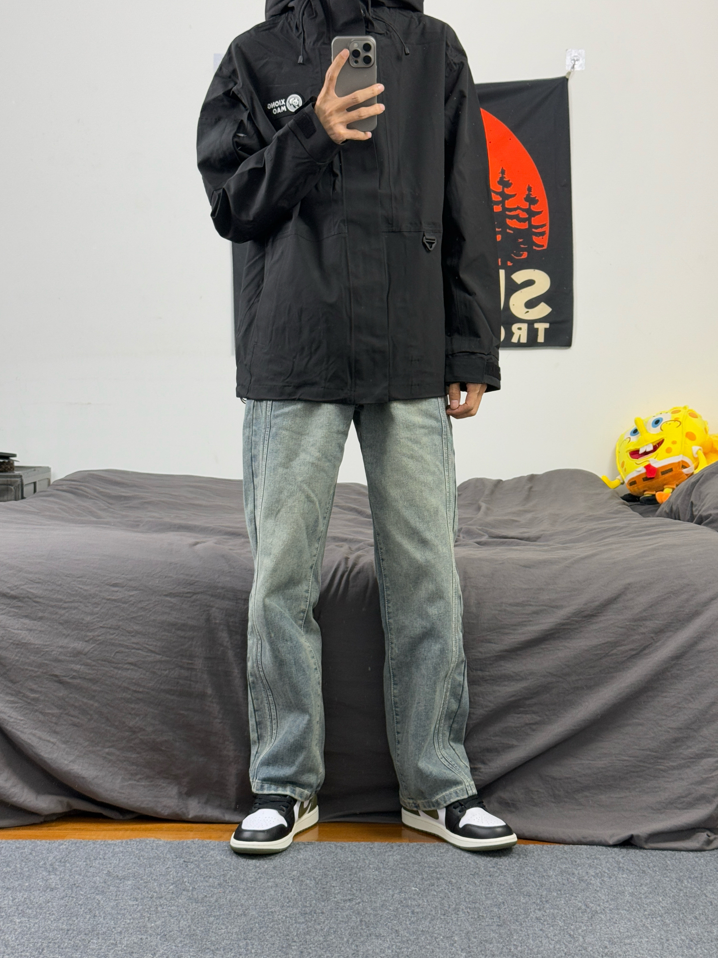 身高174体重48kg 今日上身 冲锋衣+牛仔裤+aj1黑白绿 👔是 #熊猫 家的黑色冲锋衣 三防的设计,冬日出行特别合适 防风防泼水的设计 又比较耐脏 内搭白色抓绒还能保暖 不管日常穿还是户外出行都非常合适 上身m码刚好合身 👖搭配这种直筒牛仔裤 面料偏厚重 小细腿穿了也能很好修饰体型 上身显得腿长和腿直 👟是aj1海军蓝 1️⃣@熊猫XIONGMAO官方 👖kgk 👟Jordan #宝藏...