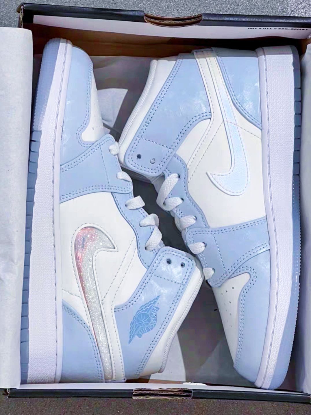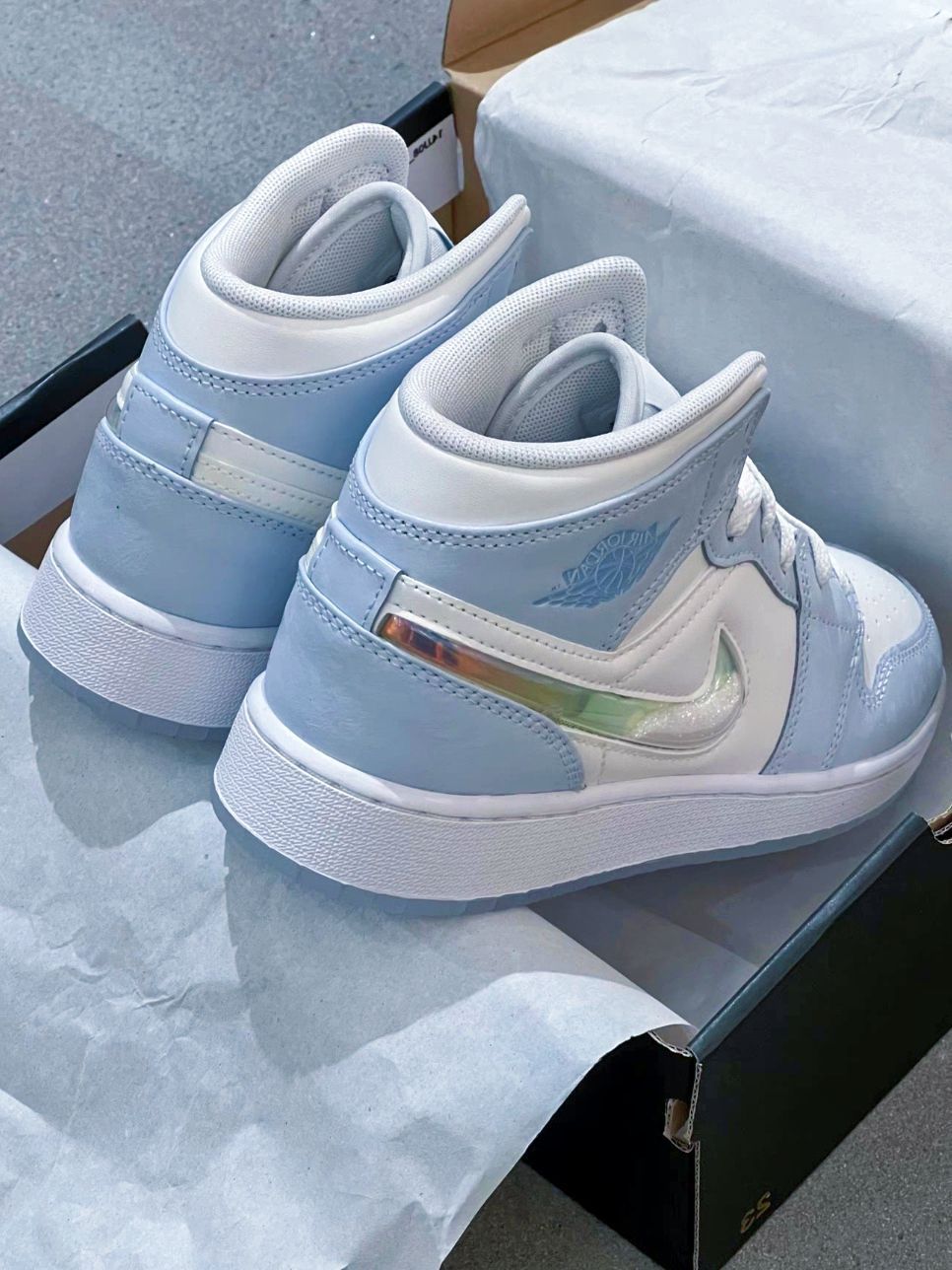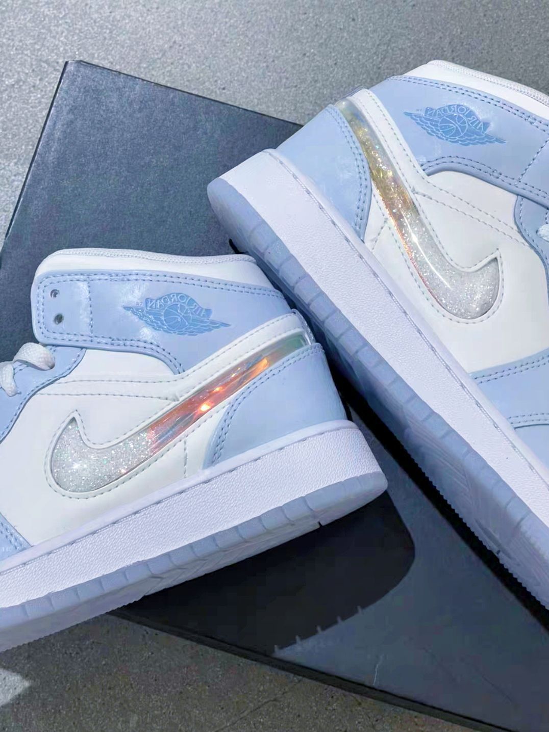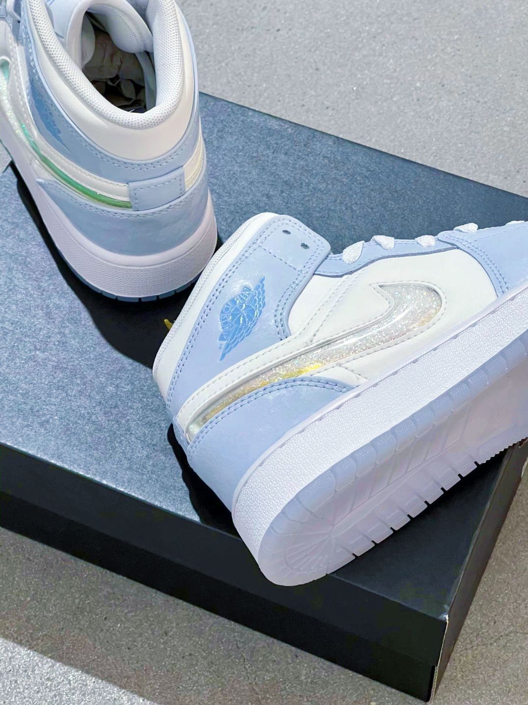 ⭐️当我第一次看到它静迷地躺在鞋盒里的时候,第一眼看到的那富有特色的Nike logo, 那镂空logo中的冰晶在灯光照耀下显得格外引人注目✨,再加上它那冰蓝色的氛围,令我脑海中浮现冰雪奇缘艾莎女王加冕的情景。 ⭐️这款AJ1冰雪奇缘高帮以及冰蓝色的设计,使得它对冬天格外友好✨!平时它的包裹感和稳定性也比较不错,它鞋底的纹路设计使得它的防滑性也在线😆,个人感觉它有一丢丢增高! ⭐️搭配衣服方面...