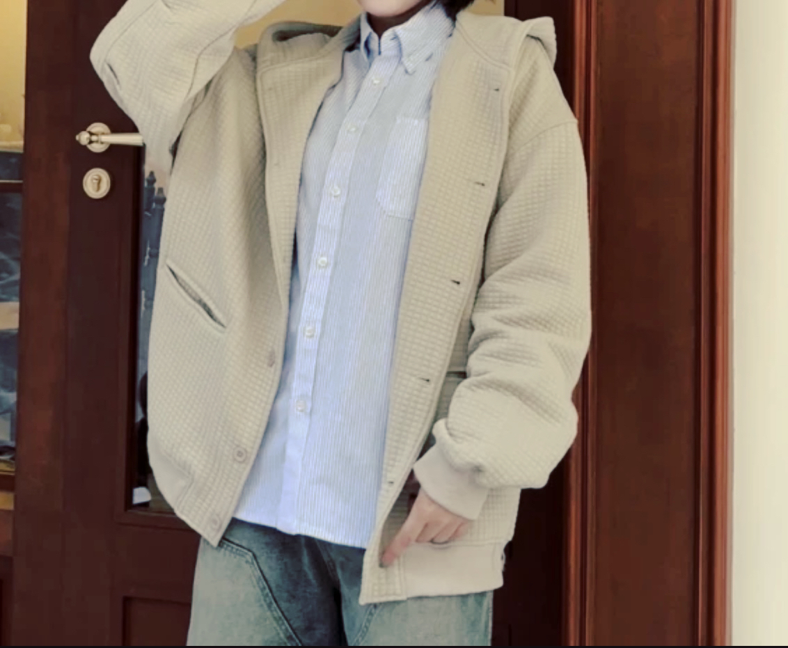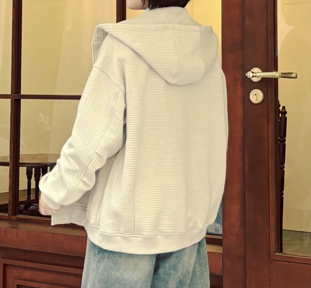 华夫格面料给人一种休闲且时尚的感觉,适合搭配各种风格的服装,无论是运动风还是日常休闲风都能轻松驾驭。 连帽设计增加了整体的时尚感,并且在天气较凉时可以提供额外的保暖。 材质舒适 华夫格面料通常由纯棉或棉混纺制成,透气性好,穿着舒适,适合日常穿着。 面料的纹理独特,增加了视觉上的层次感。
