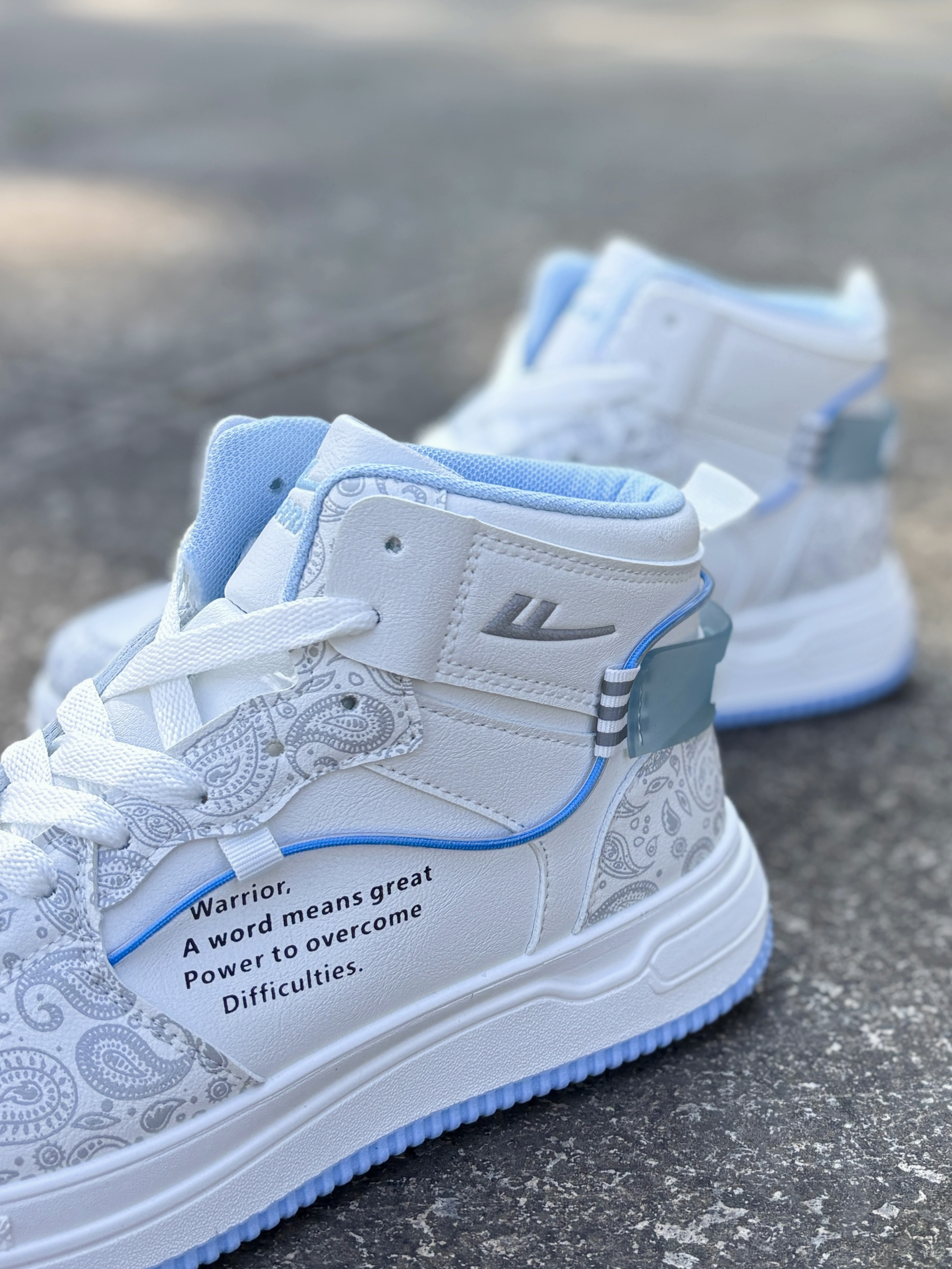 💁♂️:Hi~ 这里是大大纳mi~ 👟: Warrior/回力 保暖防滑高帮板鞋 秋冬季当然少不了一双高帮板鞋🫰 这双用的是白蓝色+腰果花图案 看着奶呼呼Hin清新,质感也不错! 百搭高帮鞋型配休闲裤牛仔裤都🉑 上脚软软的还显腿长,冷天也暖乎 适合日常通勤或者周末出街穿! 关键是不到100r,属于是无痛拥有🔝 尺码不偏码,正常选择就可以✅