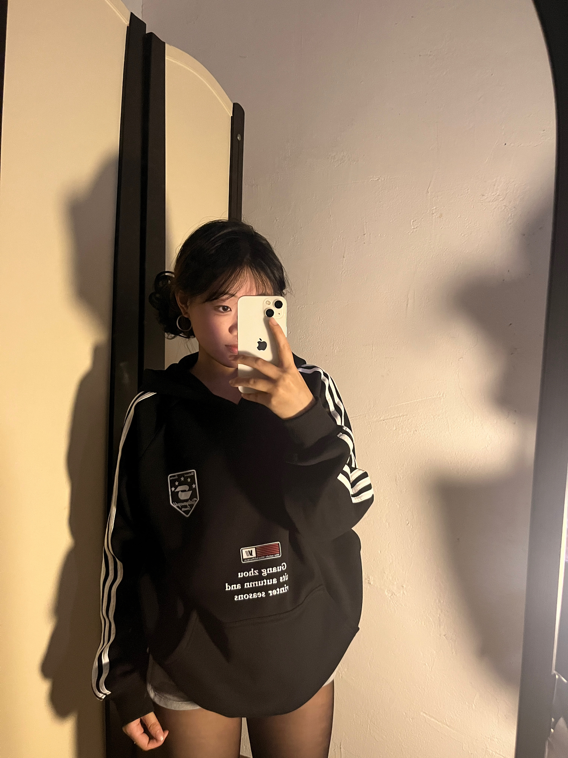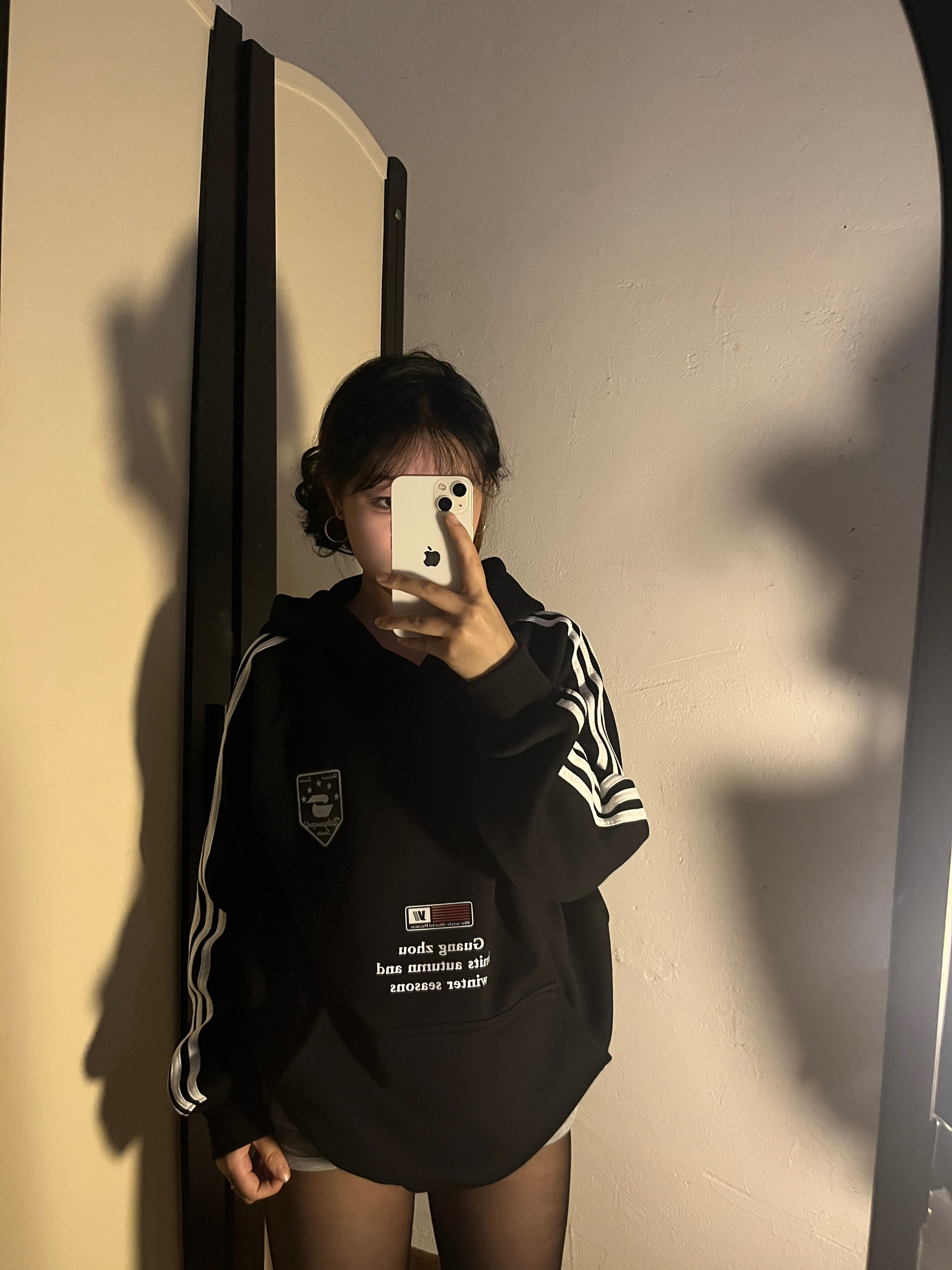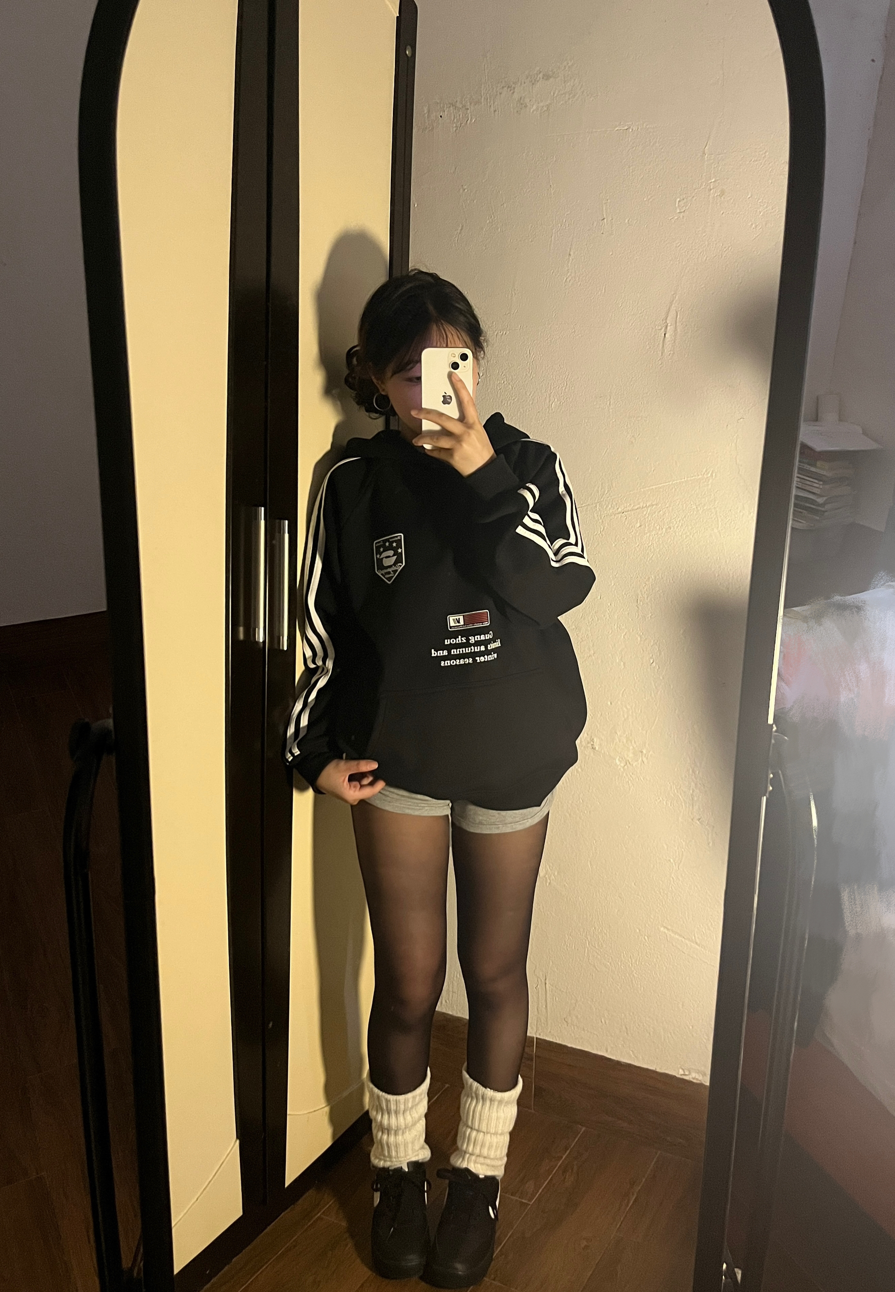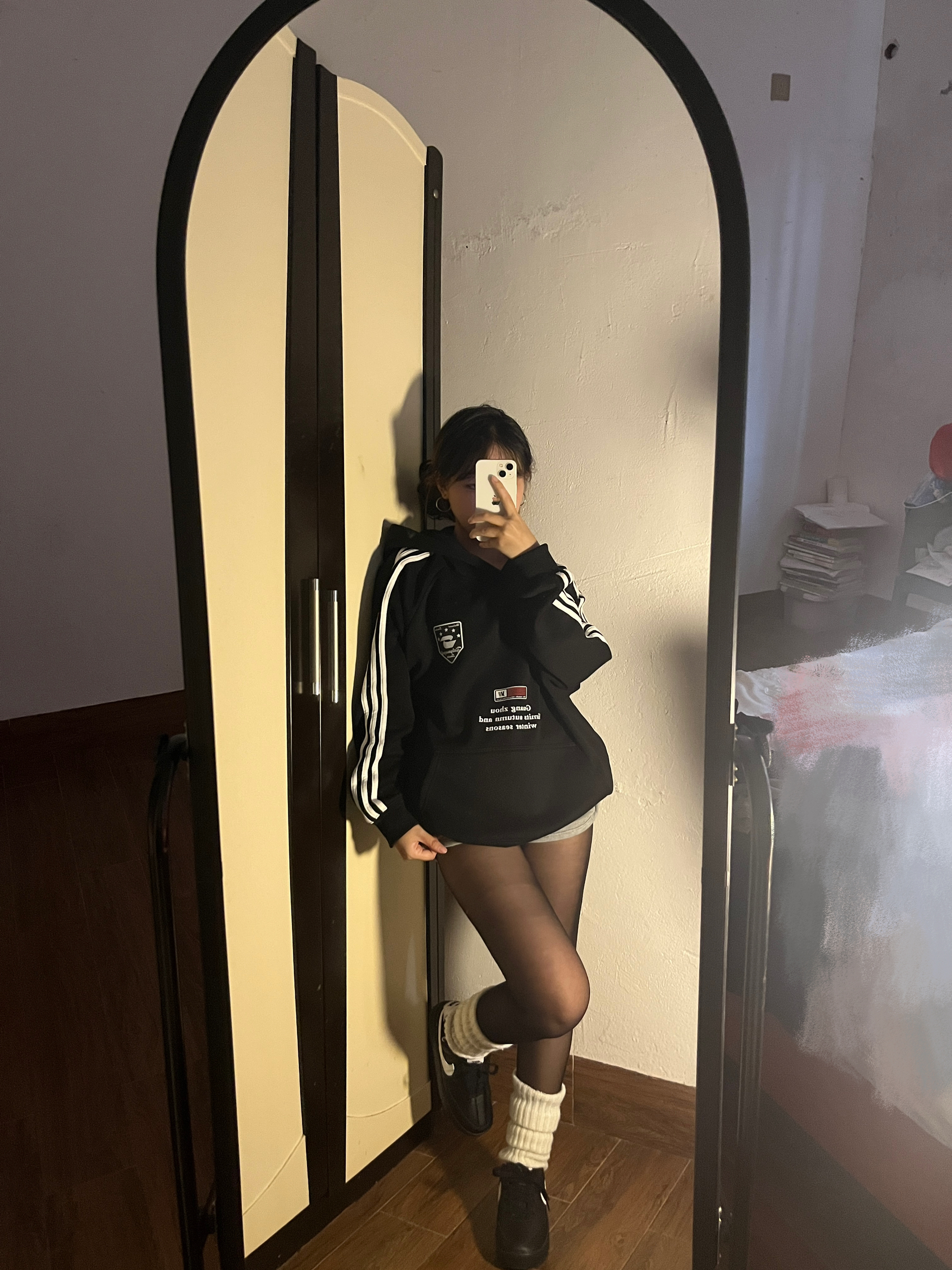 不负众望呀 非常显瘦sexy的一套~ 黑色卫衣也可以那么穿 自从尝试all black穿搭后就彻底爱上了!!!