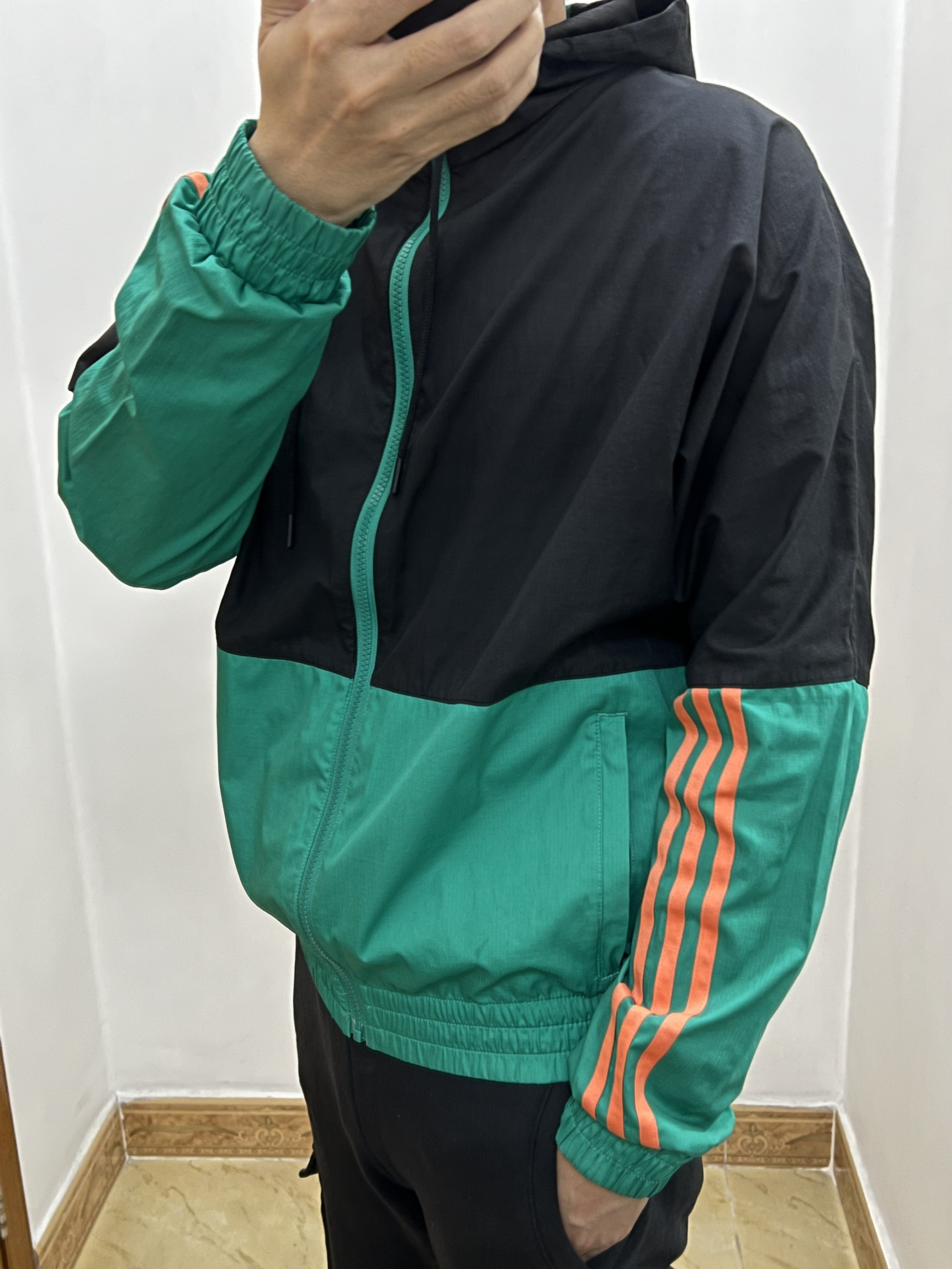 这件冲锋衣🌀做的挺不错,防风耐水的面料,重量轻薄,适合各种户外运动💪 衣服整体以黑跟绿的颜色并配设计,再搭上后背的荧光色大logo,在时尚方面也不逊色👍🏼 身高|体重:178/128 👔 上衣:adidas 冲锋衣