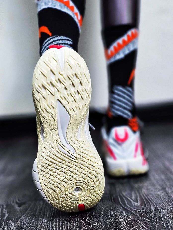 反伍游击1代~ 李宁反伍矩阵里的新系列~ 这款球鞋的超䨻中底是目前搭载该材质球鞋里最厚的一款,厚度达到1厘米,缓震脚感比起反伍追猎更软弹~ 所以说这款球鞋不是为了突破型球员设计,它是专门为跑位射手设计,适合频繁无球跑动接球投篮的打法~ 外底是专门为外场设计,在外场的耐磨和抓地力都很不错,但是在很干净的内场反而会出现抓地力不足的情况~ 外底很宽,稳定性很不错,但是不适合突破型速度型球员,会感觉拖沓不...