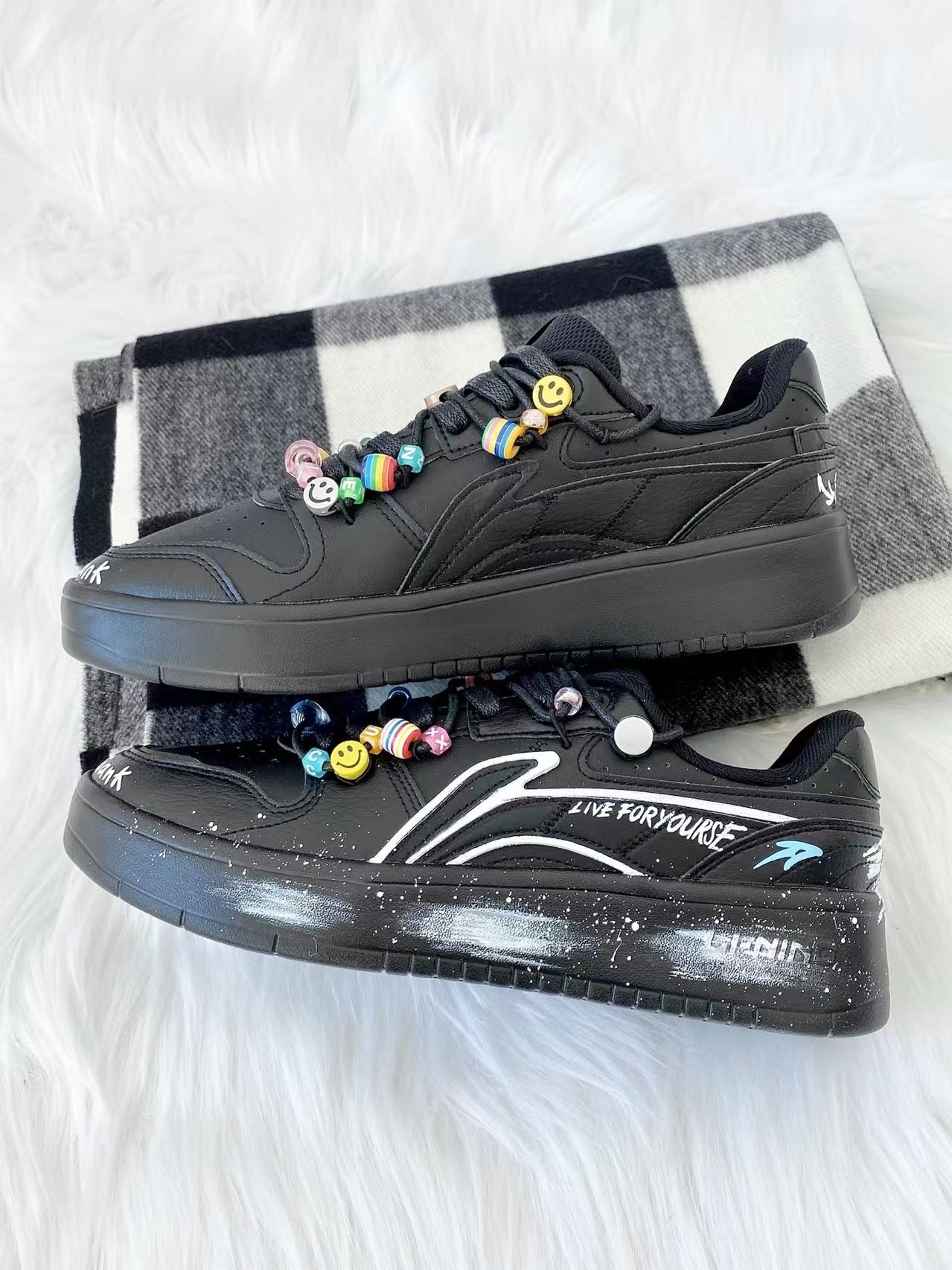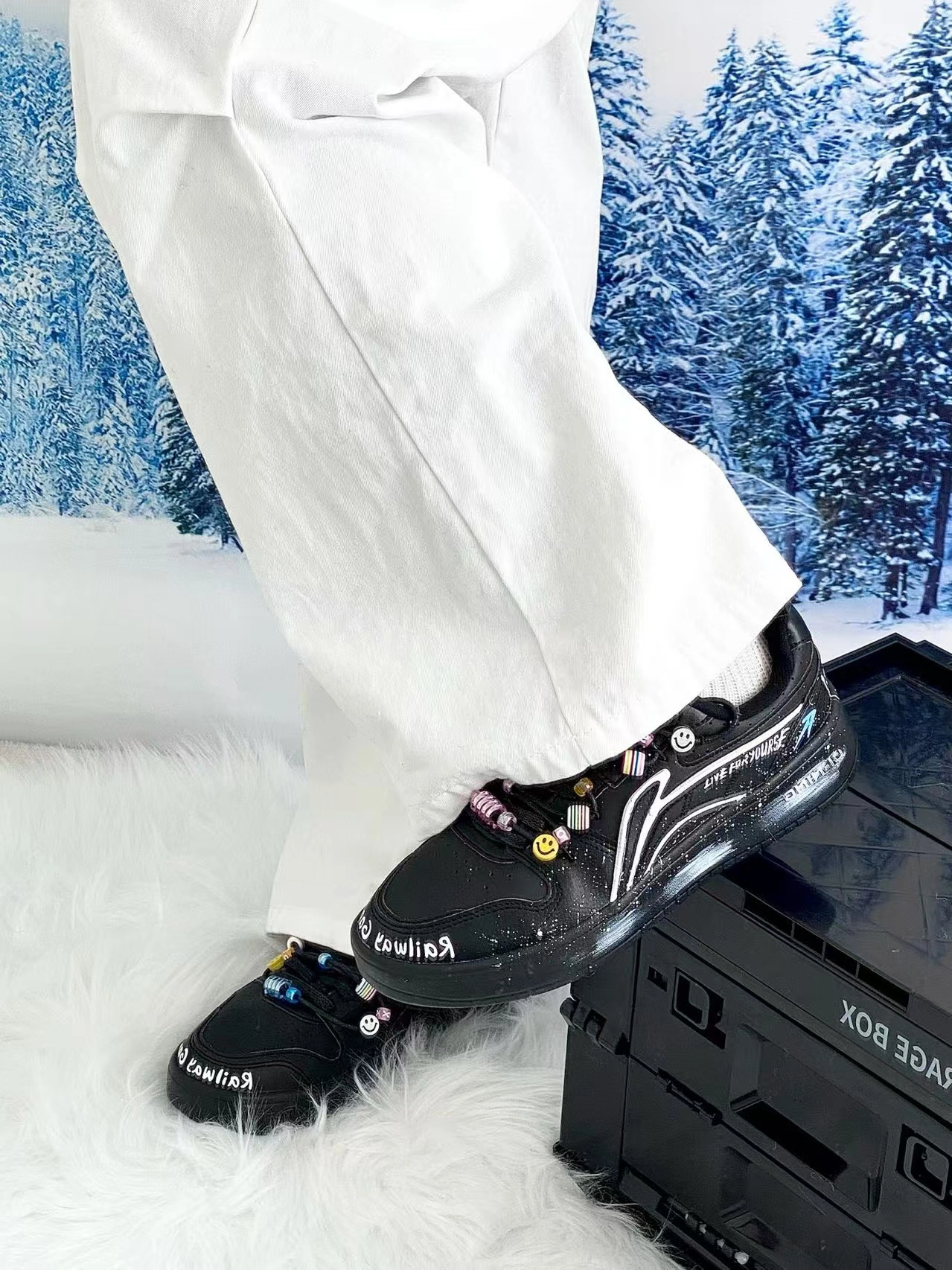 ❇️黑白经典配色真的非常耐看,‼️整双鞋子以黑色调为主,⚠️加上白色logo ,⭕️简洁又大气,✴️带有卡通元素的鞋带更加是一大特色,💖满满活力感。 (图源网络侵删)