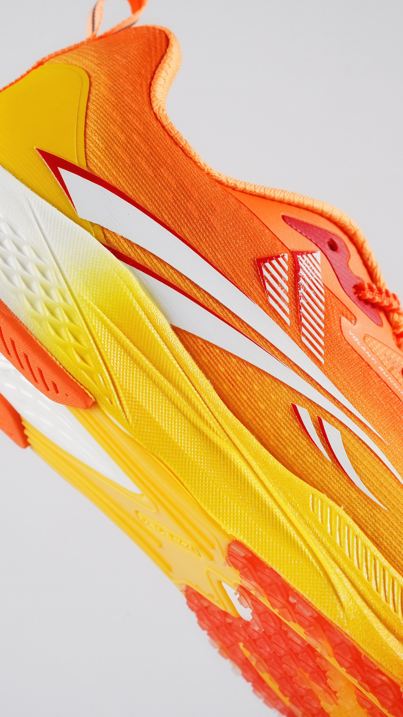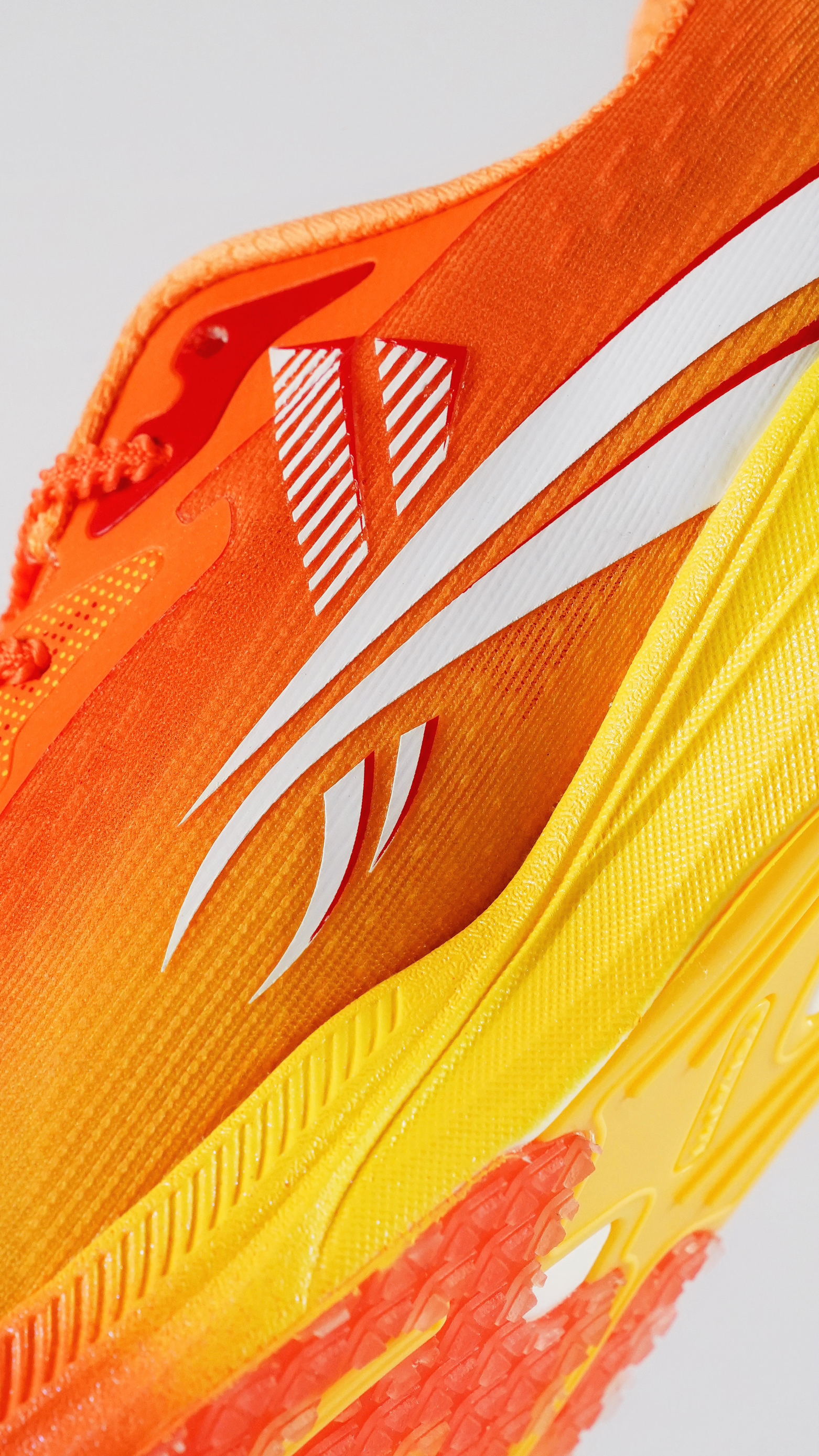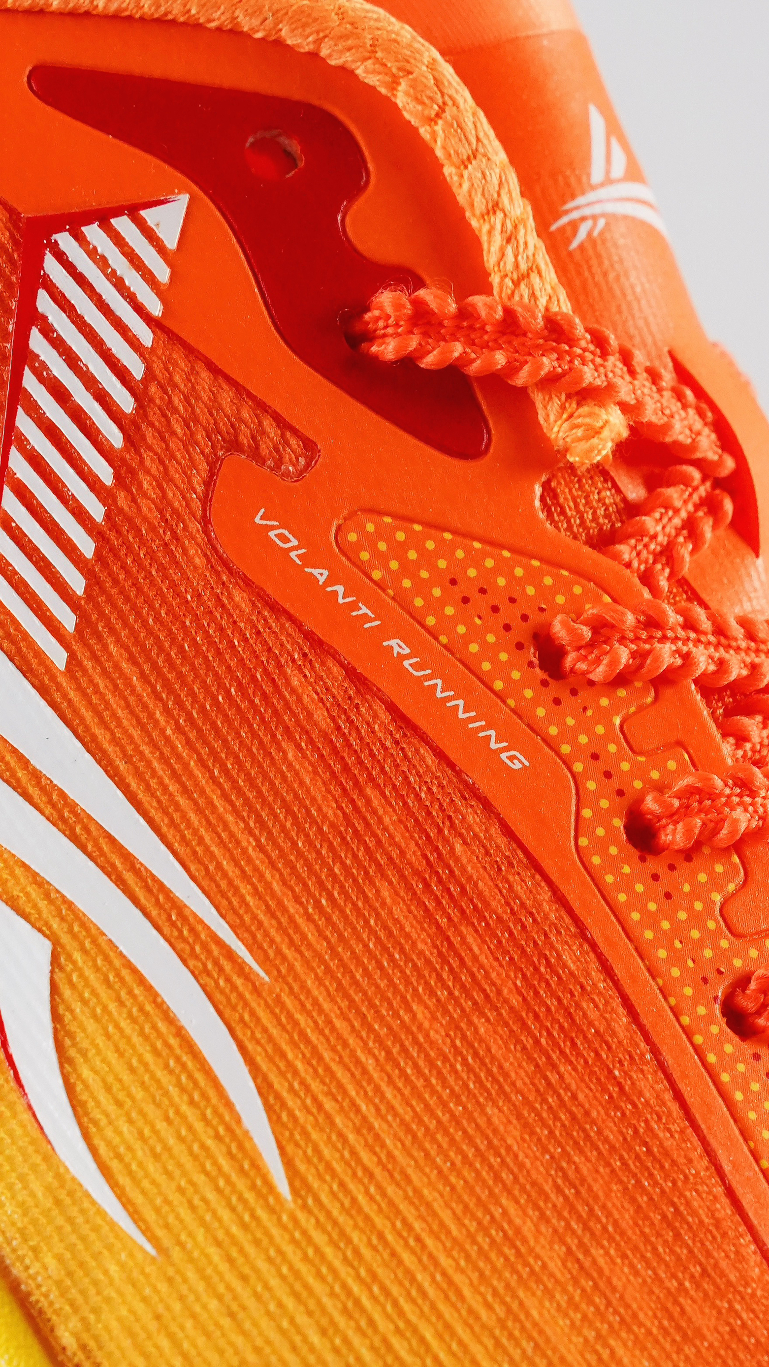 沃兰迪911梦幻闪电跑鞋上新配色咯,是我超喜欢橙色! 鞋款大面积的橙色,非常吸睛,而且整个鞋面包裹舒适度很好,有一定的支撑、保护性。 中底是橙色、黄色和白色的渐变效果。VTEC-EVA中底框架➕全掌V800纯碳板,鞋垫也是超临界材料,上脚软弹,但是不泄力 GCU止滑大底,配合碎钉设计,抓地效果非常出色。 3开的价格,性价比拉满,而且非人为损坏终身质保哦。冬季训练,适合这样一双“暖洋洋”的训...