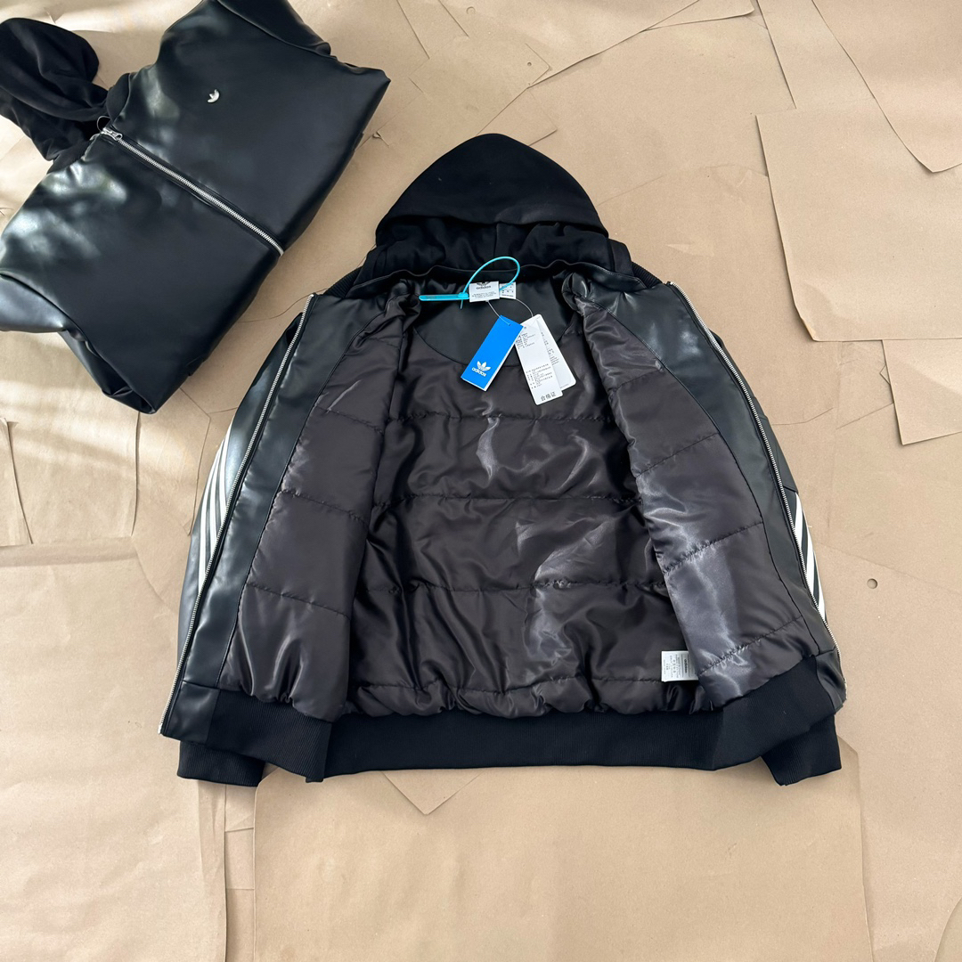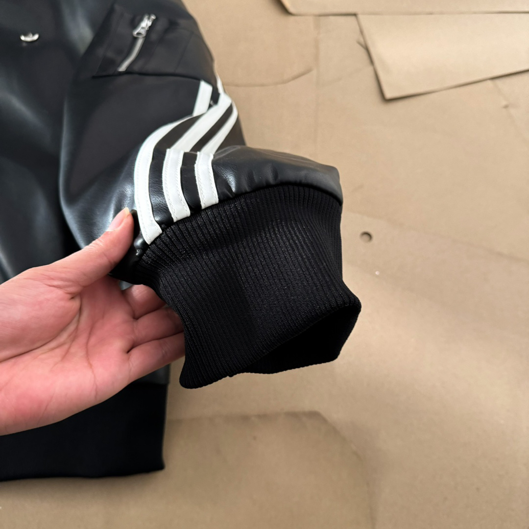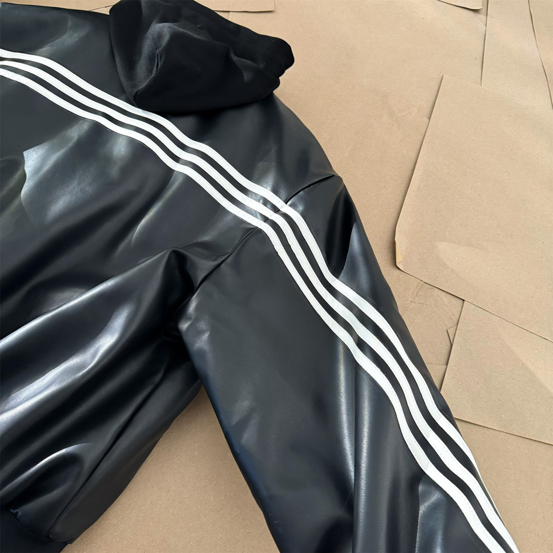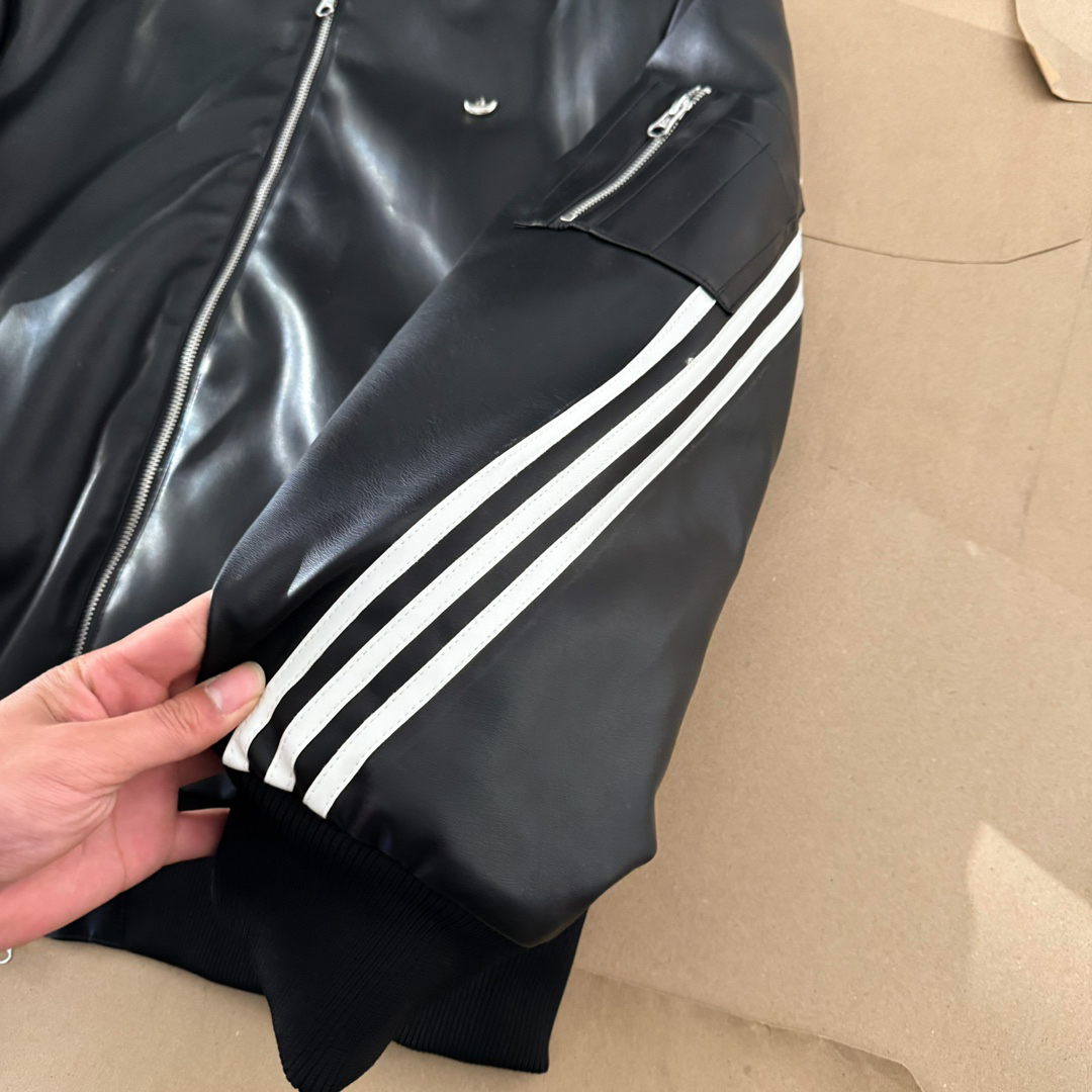 Adidas 阿迪达斯 originals FW24 PU皮金属logo时尚复古皮衣运动夹克连帽外套夹克 男女同款 整件衣服全皮工艺 订制进口仿绵羊皮材质 手感柔软细腻 高档感在线 原装双拉链 胸口三叶草金属标志 帽子可以脱卸 内里夹棉 这个季节正合适 #宝藏夹克外套推荐# 颜色:黑色 尺码:S M L XL (178 150穿M) 衣长 袖长 ...