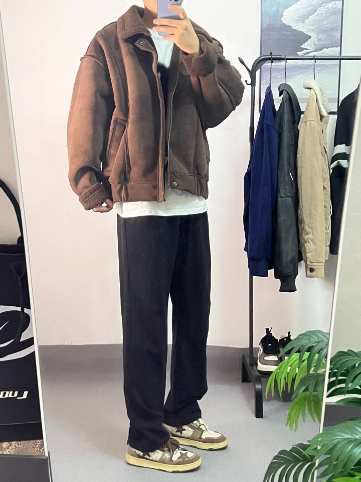 📸今日份穿搭来啦! 👔上身一件美式潮牌咖啡色羊羔绒外套 一看到它就爱上了 咖啡色超有秋冬氛围感 羊羔绒软乎乎的保暖性💯,宽松版型超酷 街头潮流感拉满,冬天穿它超暖和! 👖下身搭配黑色修身裤 真的很显高显腿长 简单搭配,轻松打造出时尚又保暖的冬日 look 无论是逛街还是和朋友聚会,都很合适。 这套穿搭,你们喜欢吗? 💕