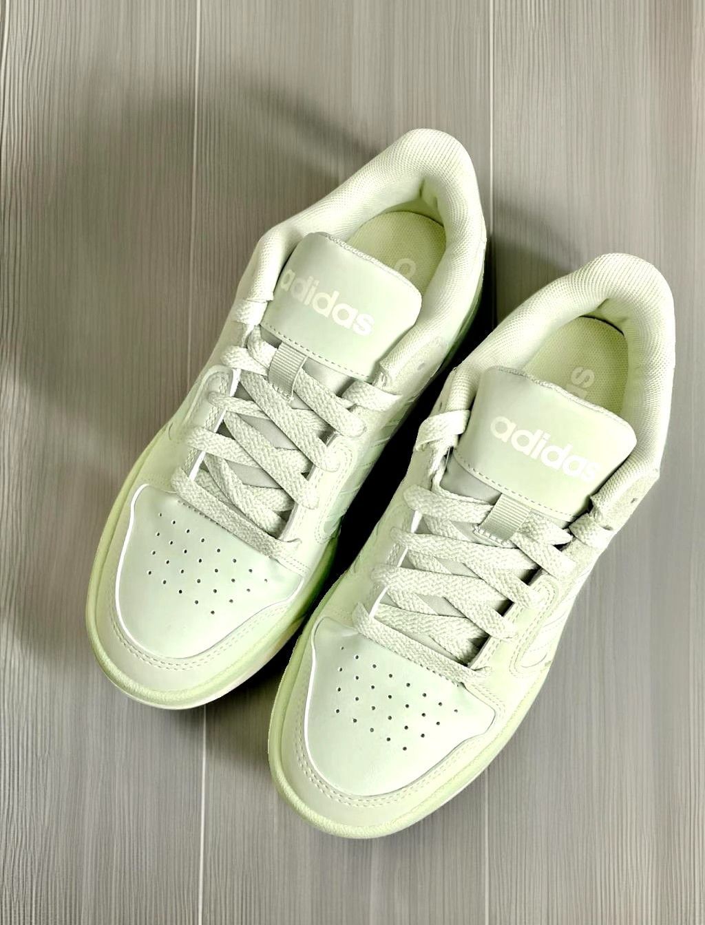 哇塞,薄荷绿的阿迪真的超绝 整天就是薄荷绿的配色,鞋侧的阿迪的标志,真的超级清爽,感觉到了春天! 脚感是舒服的,百搭超绝,喜欢扣1!