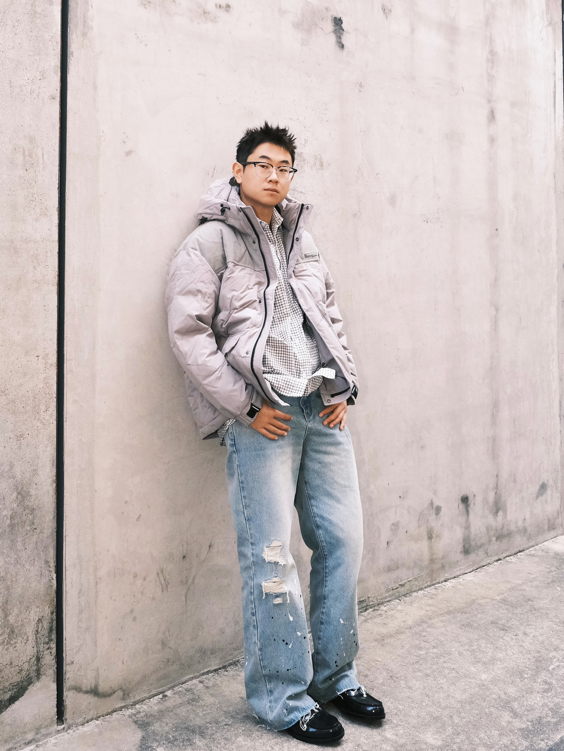 软软糯糯的浅灰色在冬日街头更有清新的感觉 连帽设计在寒风中更添一份温暖 羽绒服当然还得是选择大品牌 海澜之家HLA 百分90的鸭绒填充不开玩笑给我满满安全感 冬日街头穿这件就OK啦~