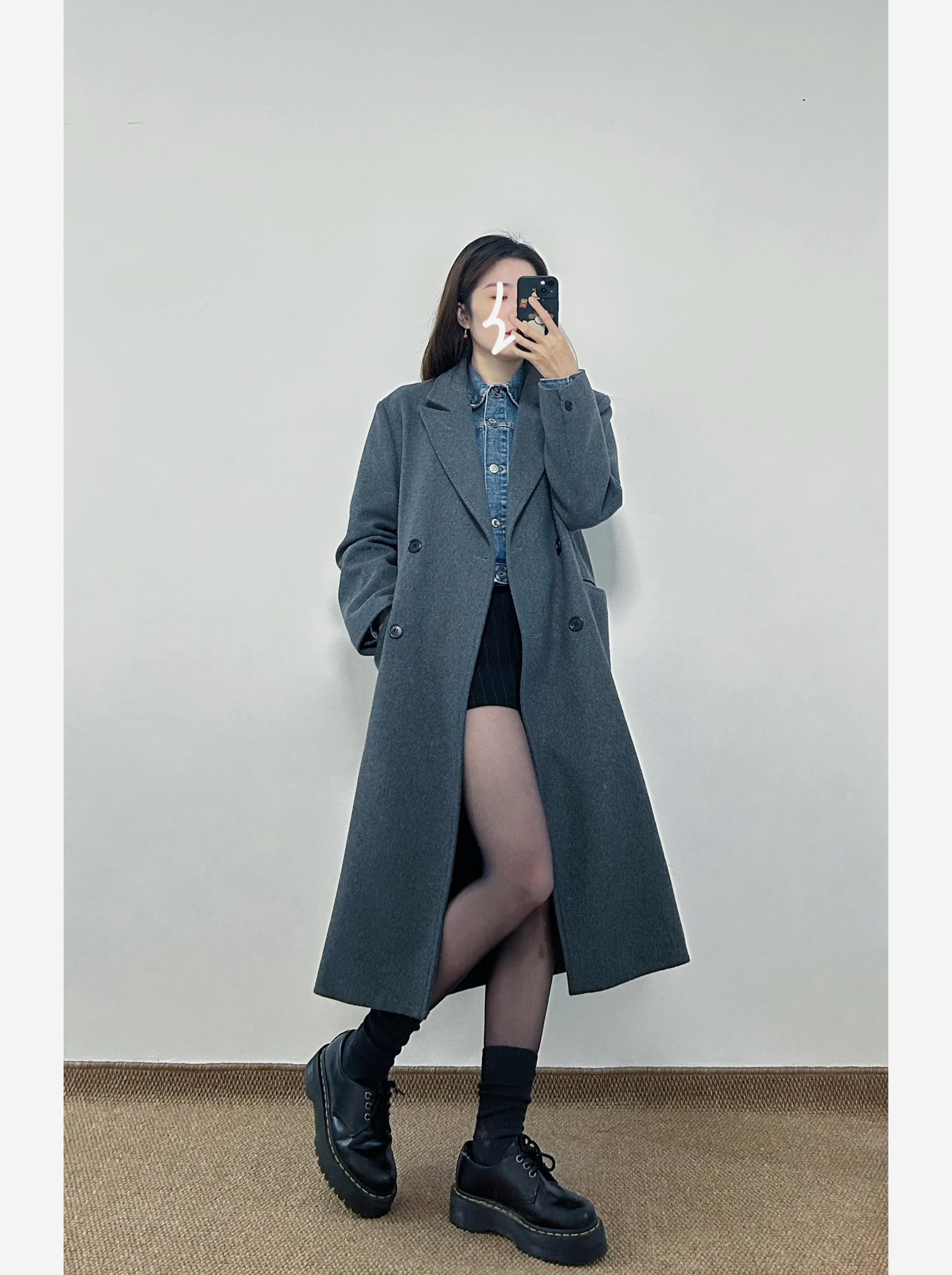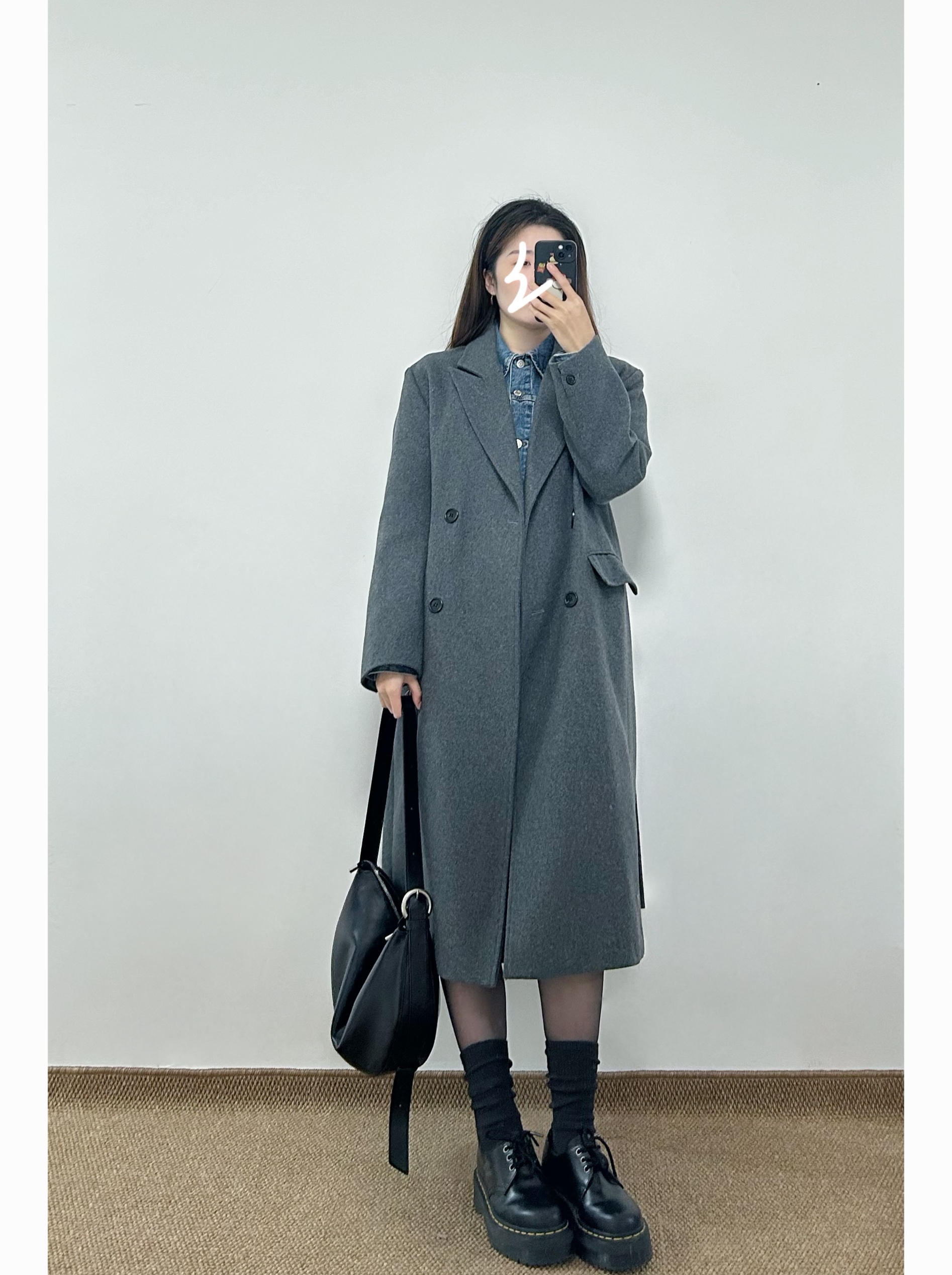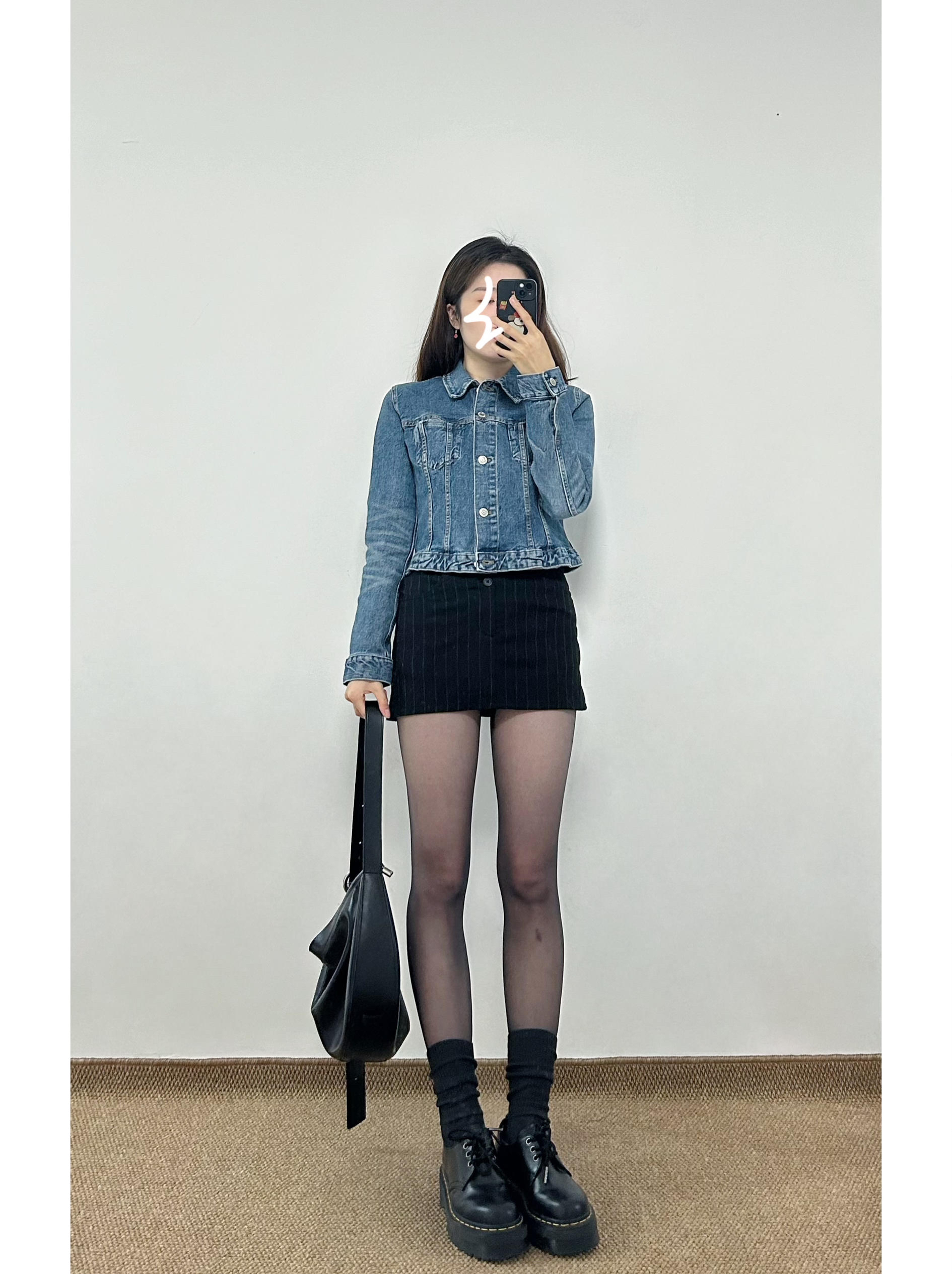 牛仔外套叠穿灰色大衣,这套保暖又时尚,黑丝和灰色大衣也很搭! 🧍♂️ 穿搭风格:简约时尚 🧥 大衣:范洛 👔 上衣:Zara 👗 裙子:brandy melville 👟 鞋子:靴子Zara旧款/马汀博士 🎒配饰:injoylife