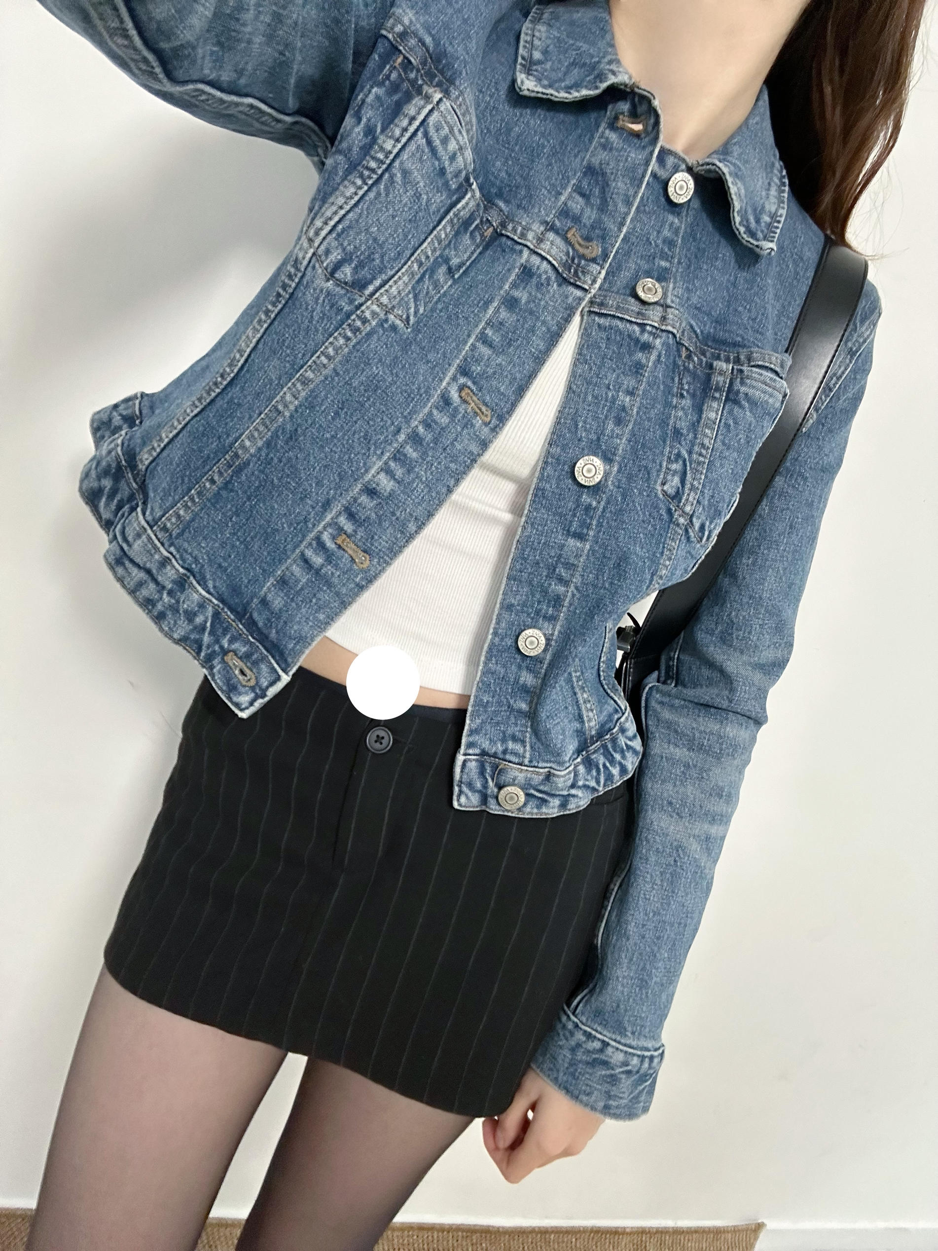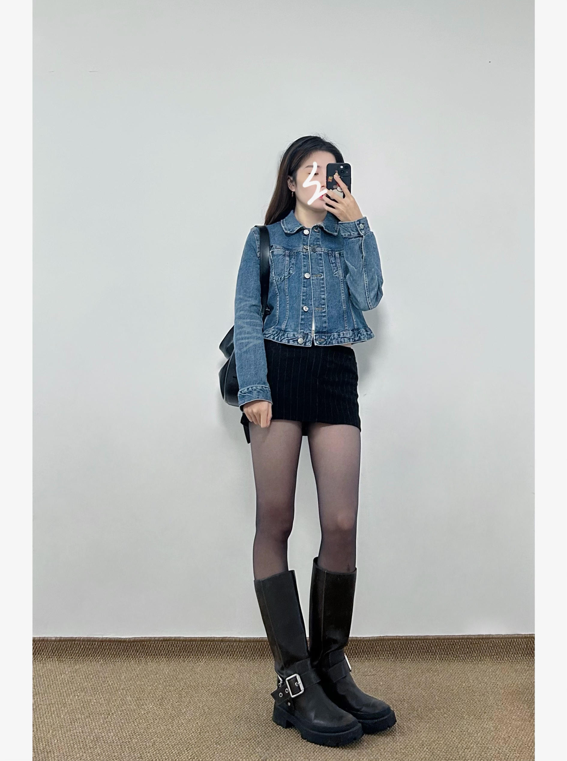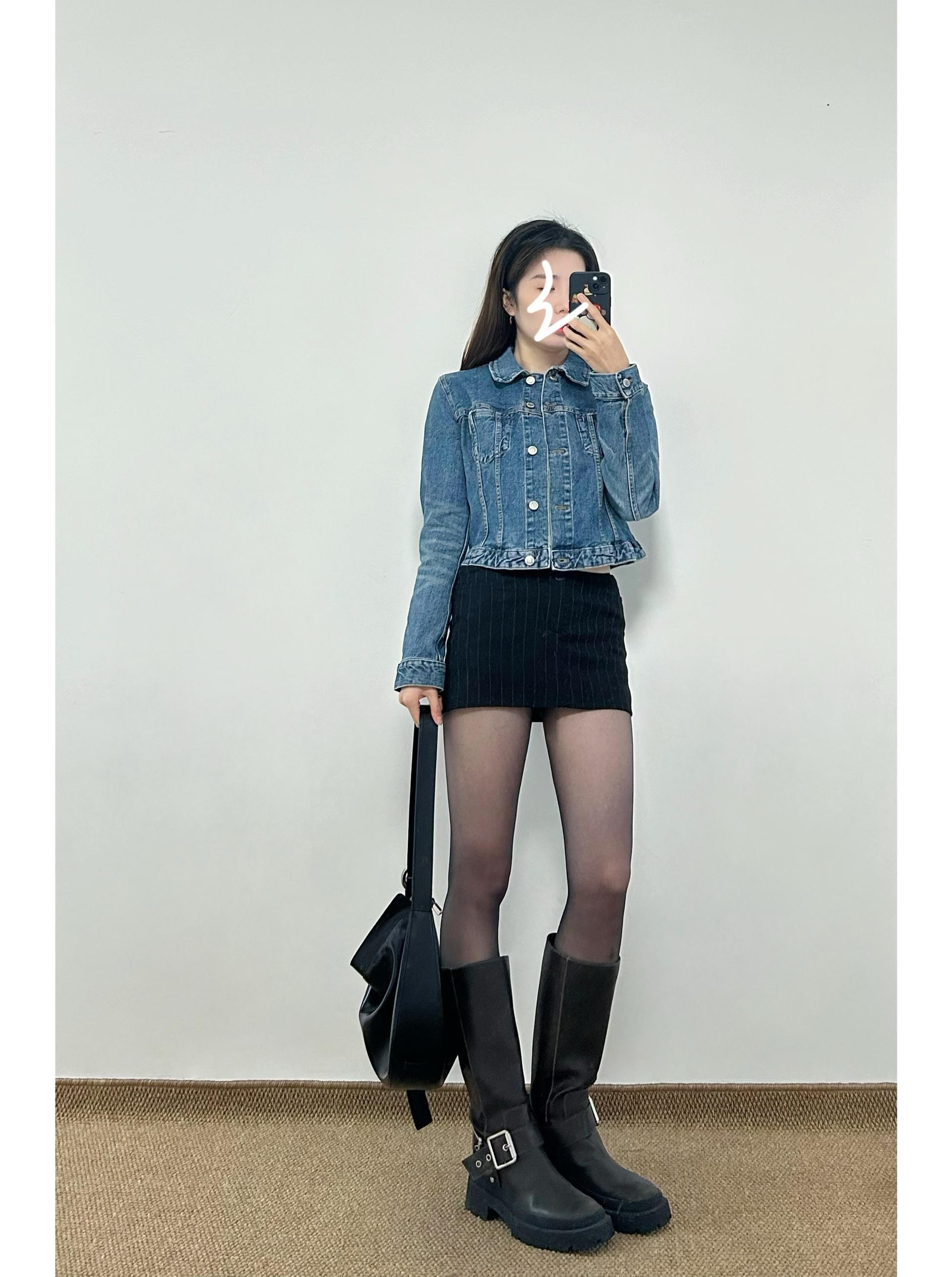 牛仔外套叠穿灰色大衣,这套保暖又时尚,黑丝和灰色大衣也很搭! 🧍♂️ 穿搭风格:简约时尚 🧥 大衣:范洛 👔 上衣:Zara 👗 裙子:brandy melville 👟 鞋子:靴子Zara旧款/马汀博士 🎒配饰:injoylife