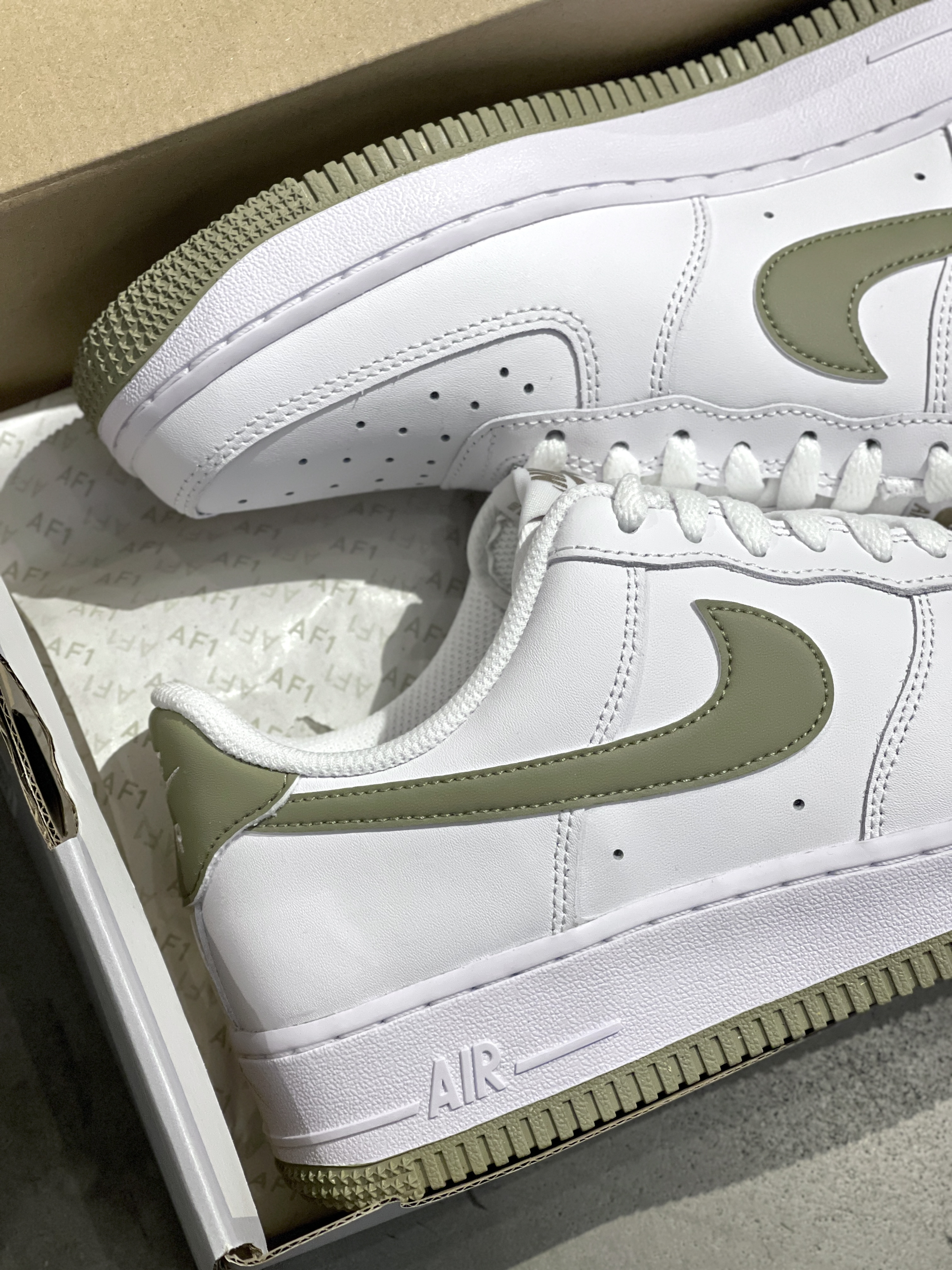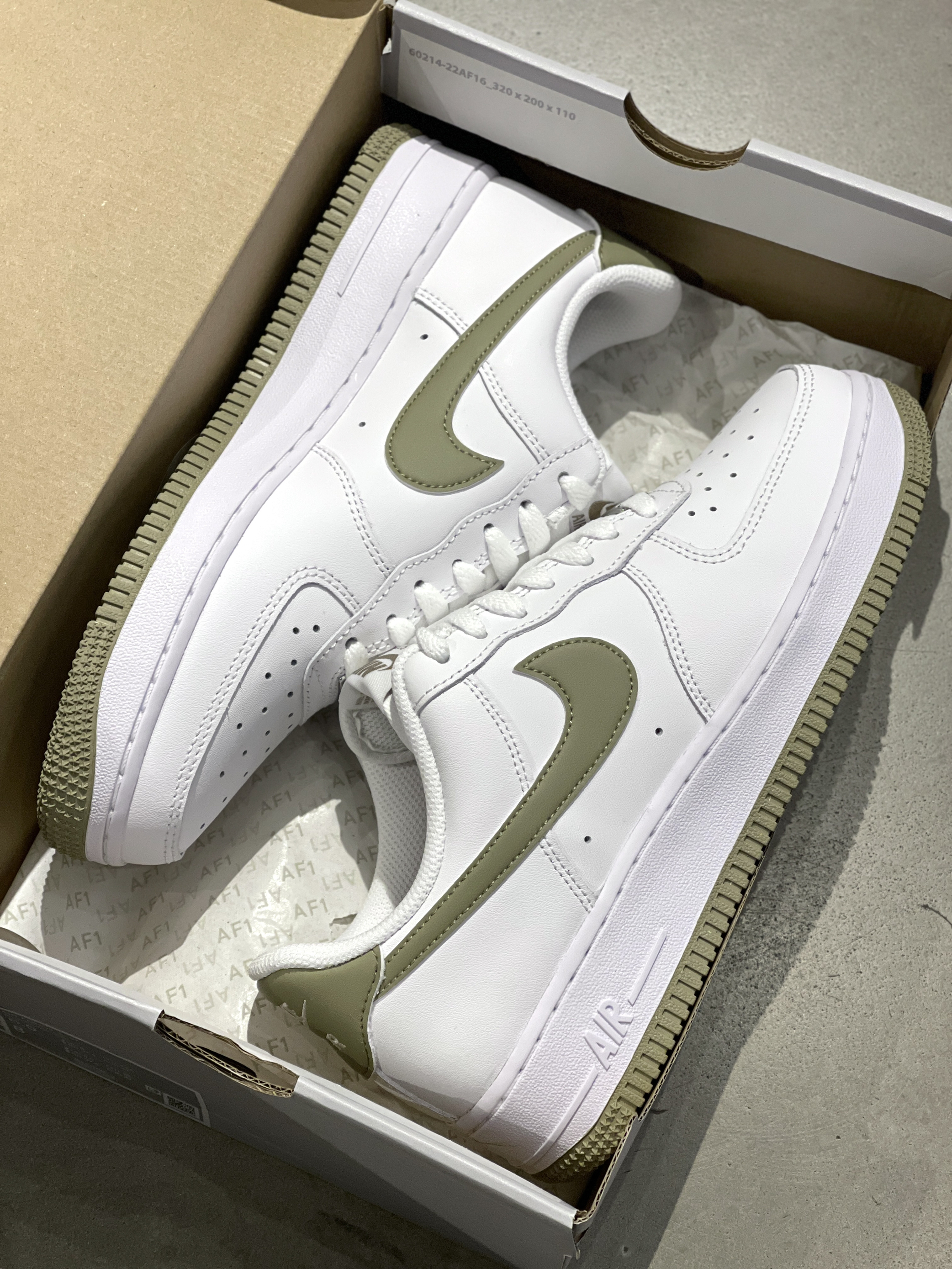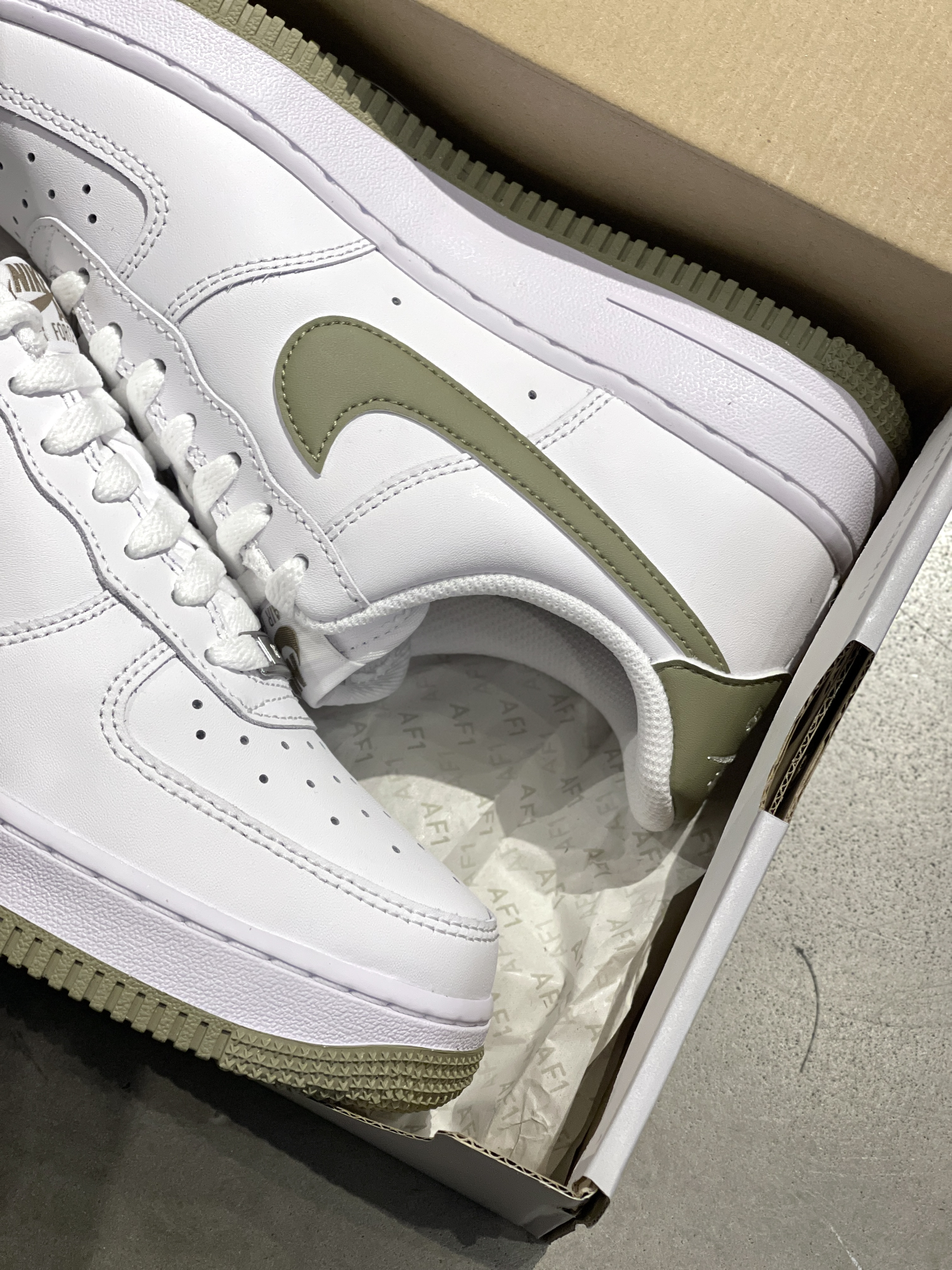 Nike少年感单品来咯,简简单单~ Nike|Air Force 1 Low “Neutral Olive”低帮板鞋🥬,经典的纯白AF1作为基础,橄榄绿Swoosh➕大底,整体层次感满满,上脚穿起来增高又百搭~