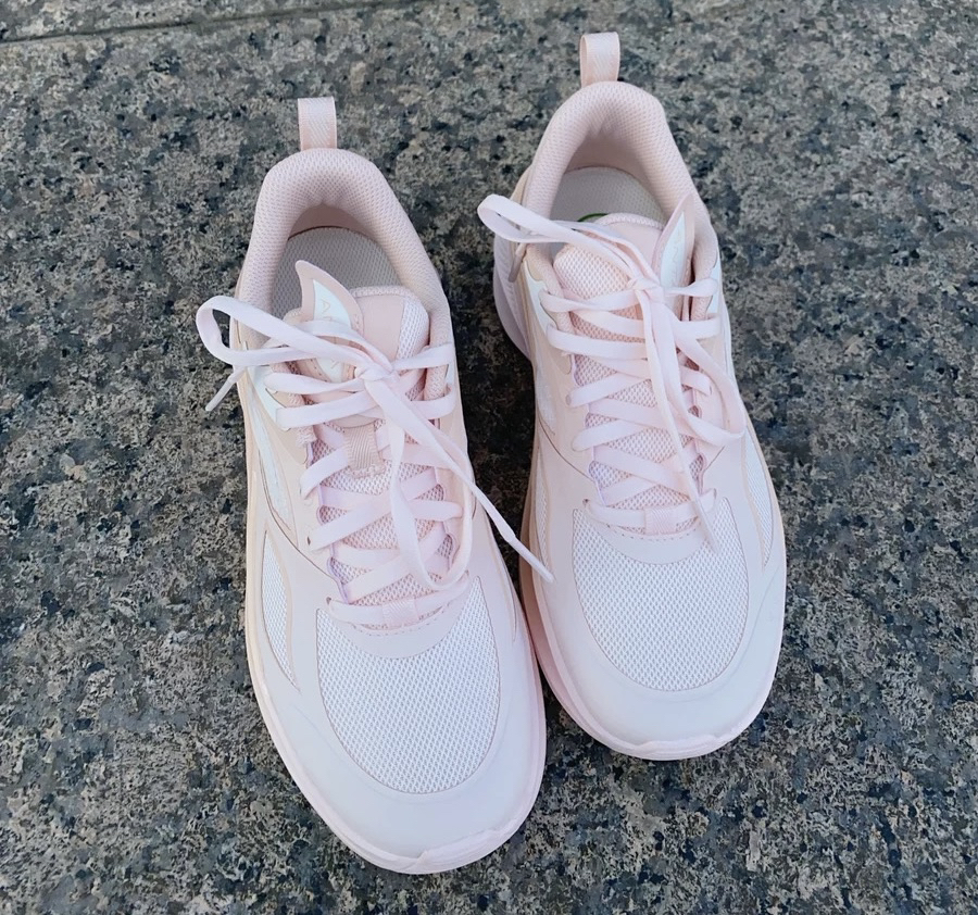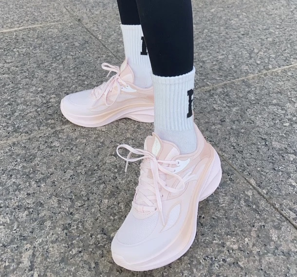 这双运动鞋的颜色是粉粉嫩嫩的很好看,鞋底厚实有增高效果,穿上软弹舒适,超级的百搭,穿着也不累脚,鞋子款式设计的非常的时尚,很适合运动健身穿,减震效果好,透气性也不错,而且脚感很舒服,安踏的鞋子是很不错的!