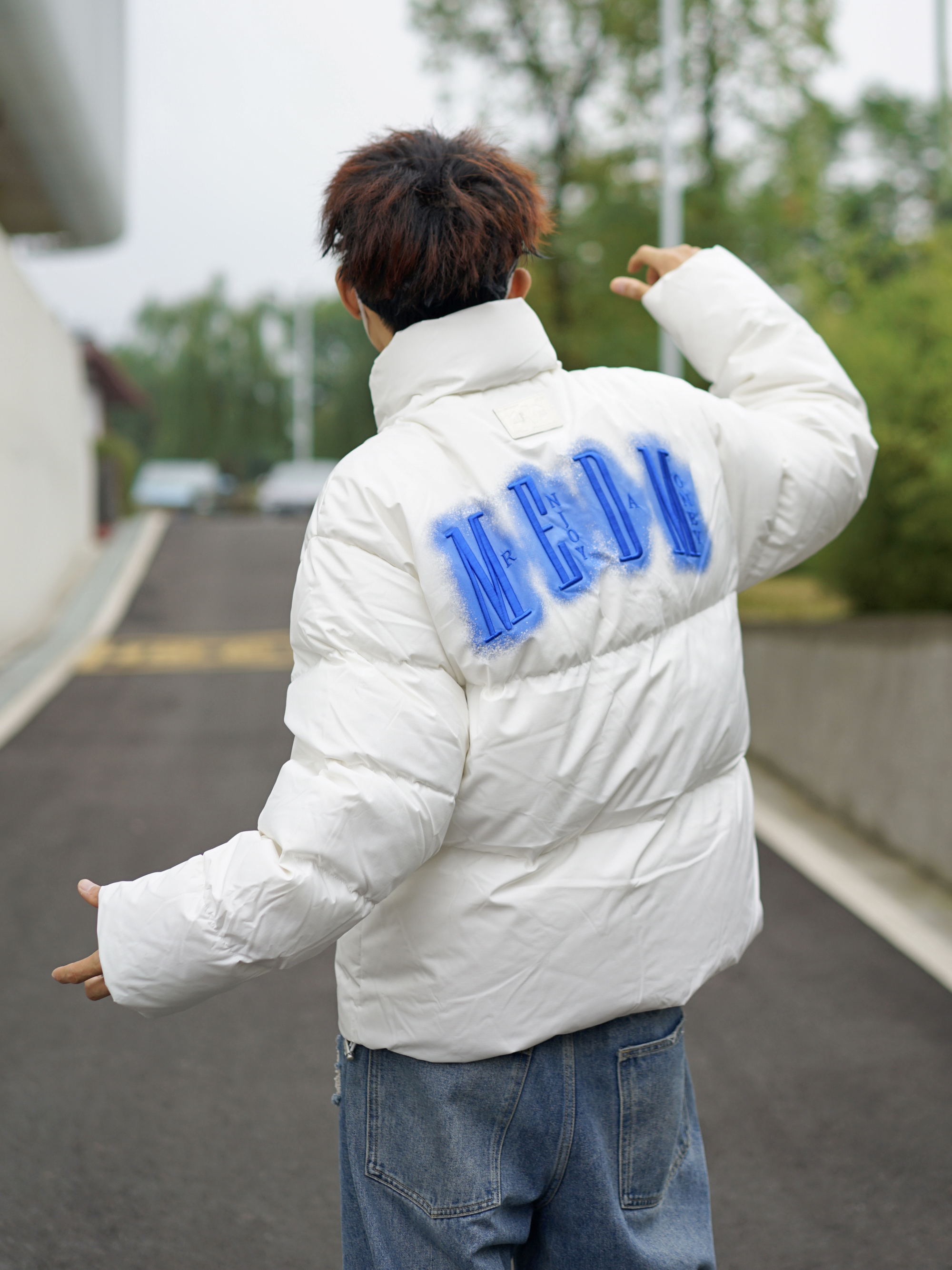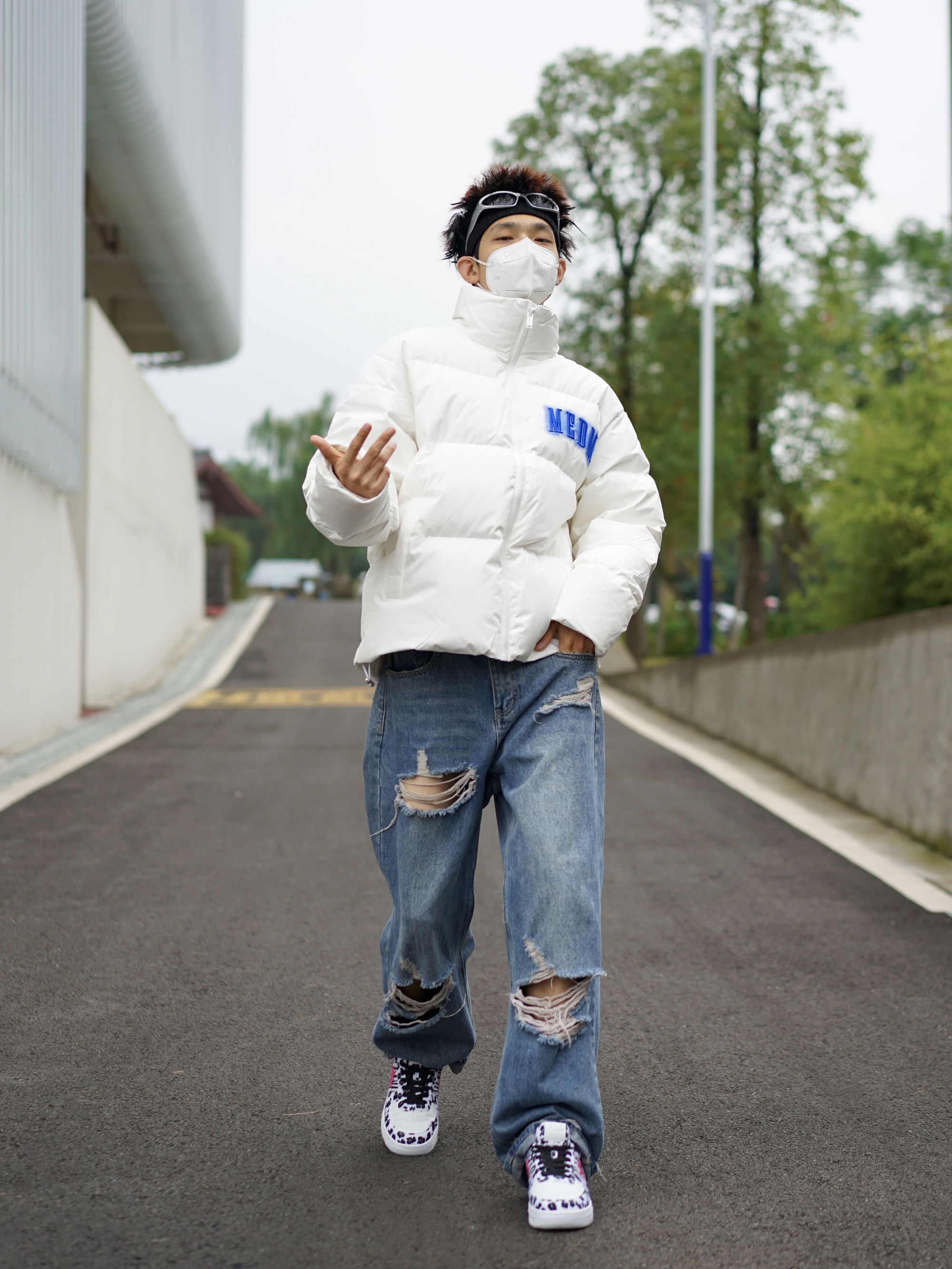 ❄️降温来的那么突然 我已经开始穿上羽绒服啦✨ 对于我这种瘦子来说 宽松的版型反而显得慵懒 白色显白,🔵霓虹字母刺绣就格外吸睛 搭配一条破洞牛仔裤就挺个性的 再来一双豹纹配色的板鞋⚡️ 轻松get潮酷感